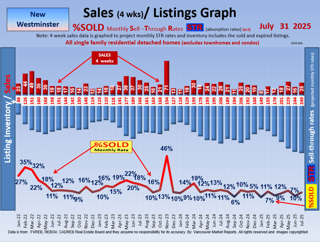 Current: New West & E. Burnaby's Residential Detached housing is in a Stable Market with 10 %SOLD rate.