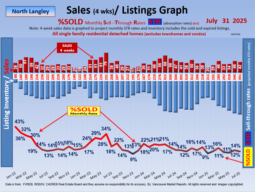 Current: North Langley is in a Stable Market with normal listing inventories, a 12 %SOLD rate and a 97% Sell/List Ratio.