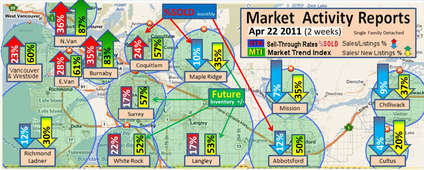 April 1 2011 buyer activity moving west. Record Absorption (STR in E.Van and Burnaby)