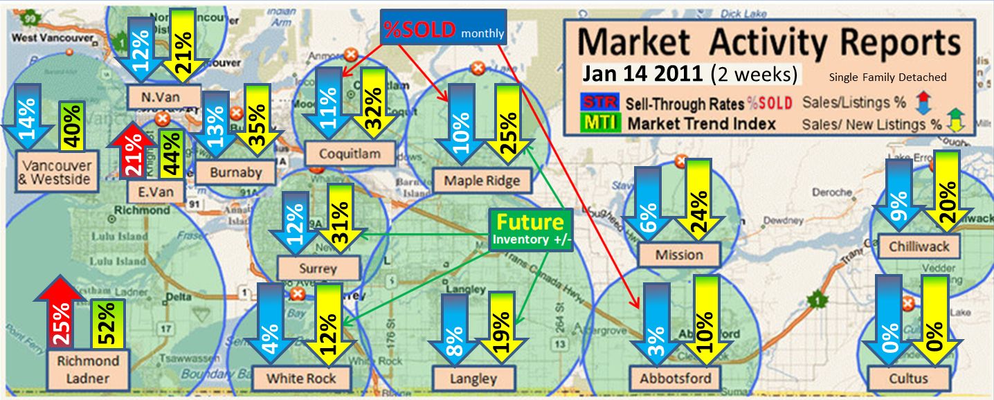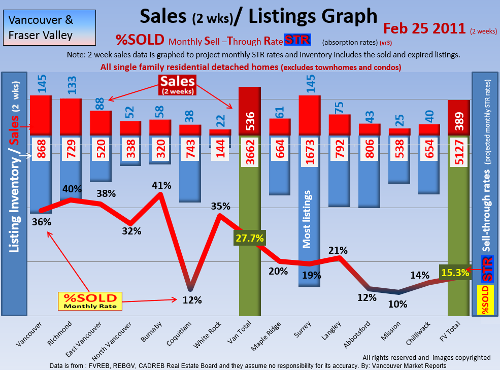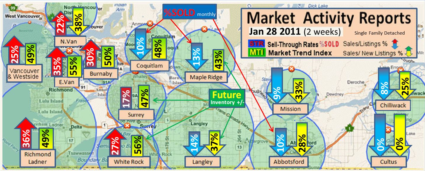 Our first STR and MTI study Feb 4th 2011 shows Richmond and White Rock with the first strong sell through but most of the other markets are very quite.
