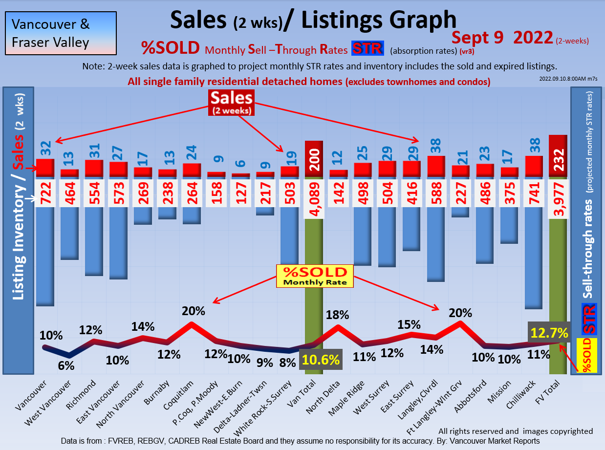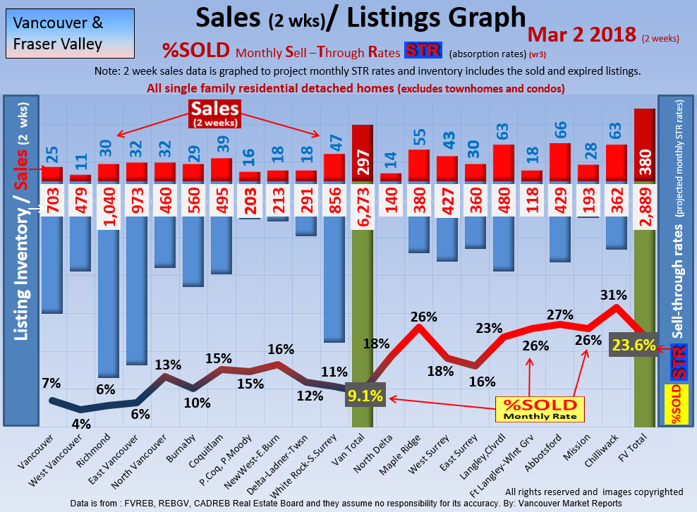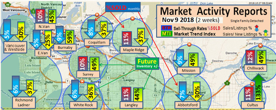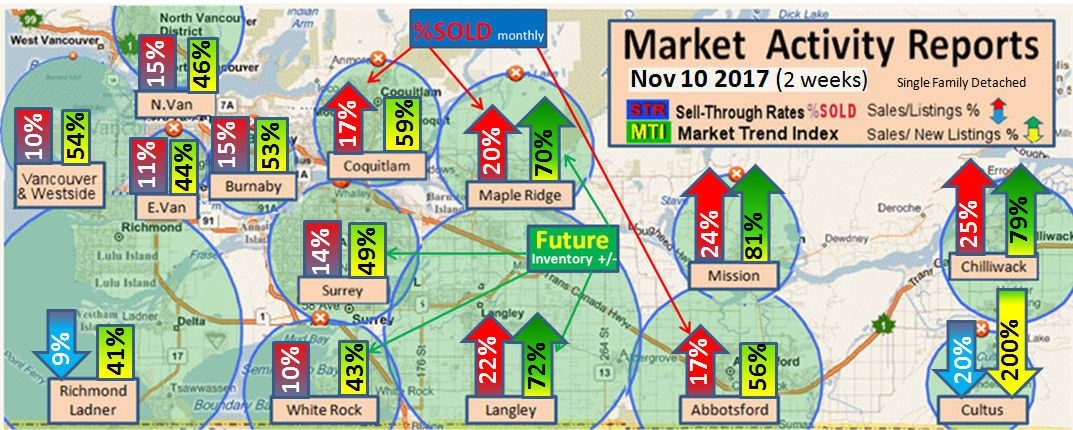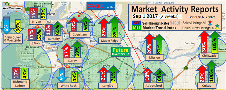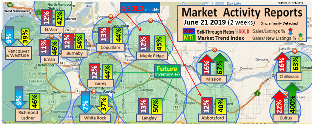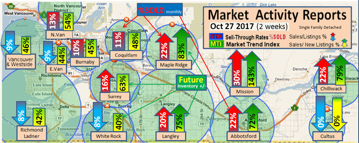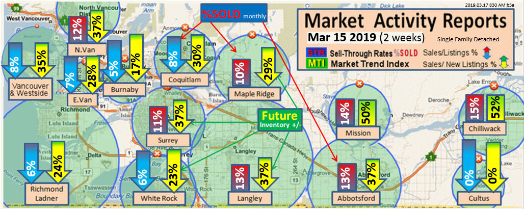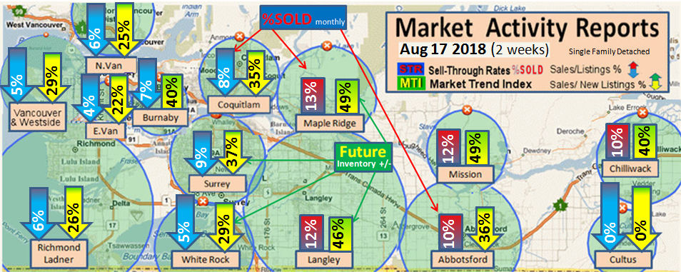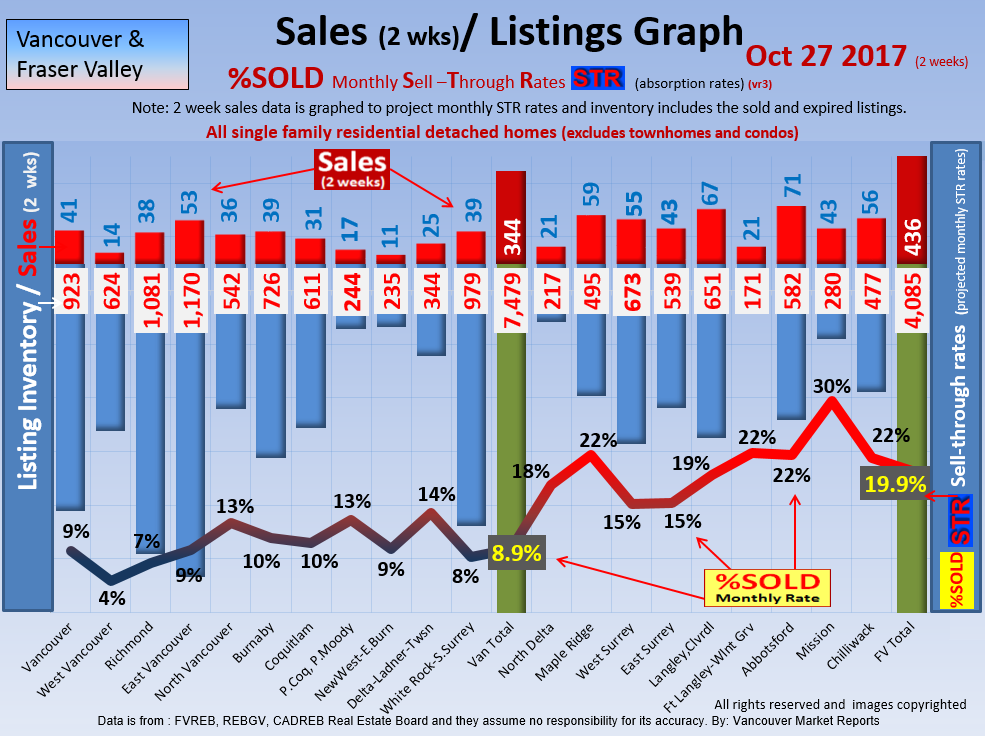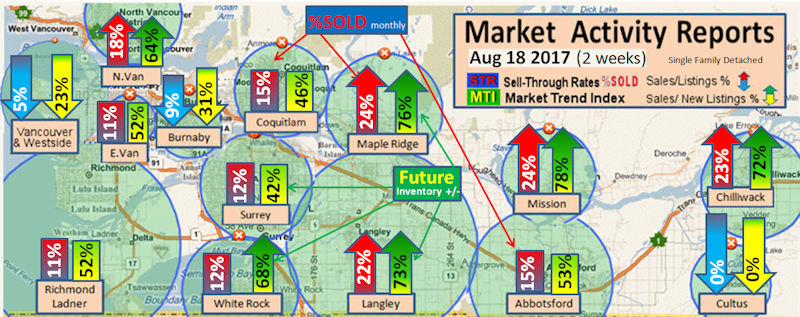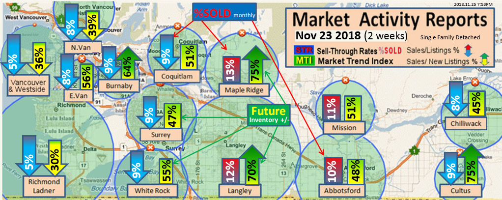 #2 The area east of it, namely of the Fraser Valley Real Estate Board: Surrey to Chilliwack. Here we see the first area has a 30% monthly listing sell-through and the area east of it is currently at a 9% monthly sell-through to read more ..click here