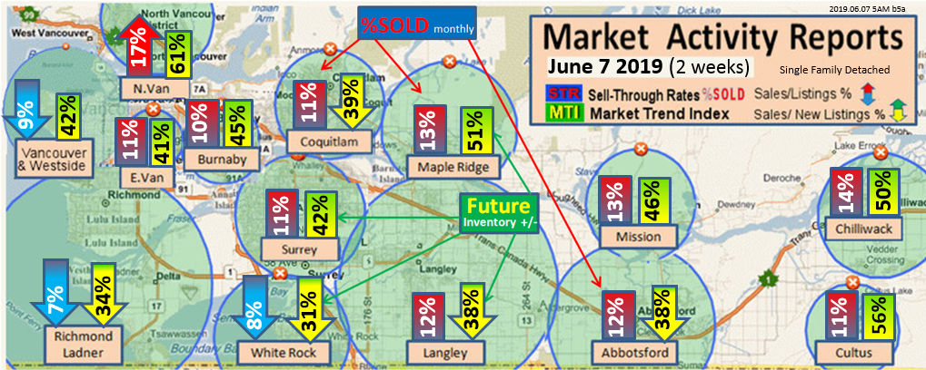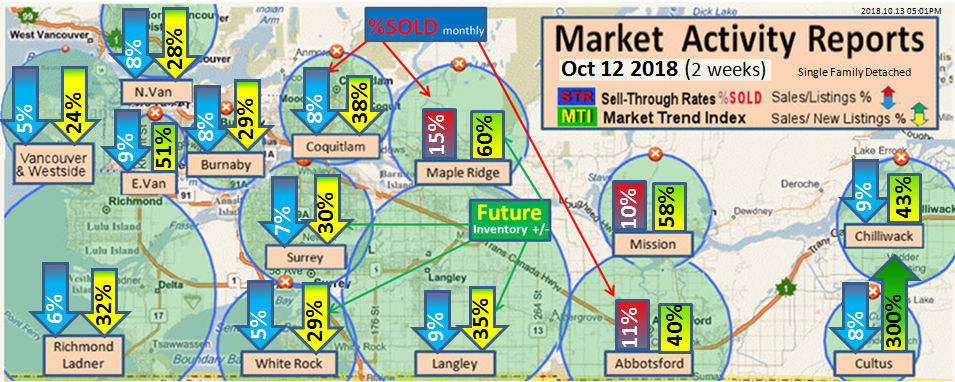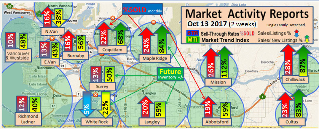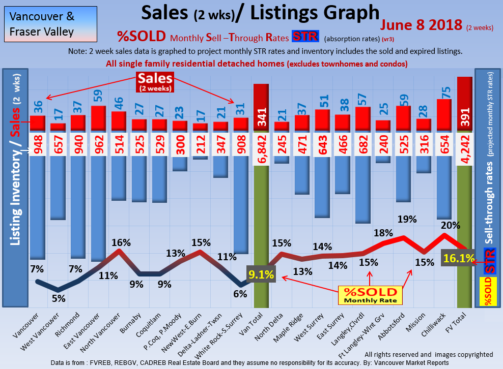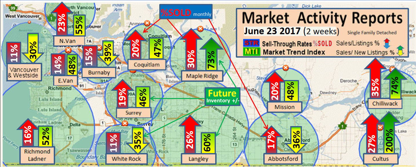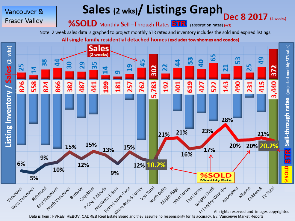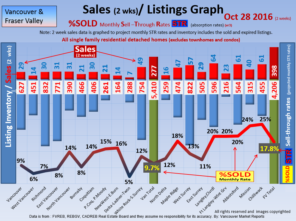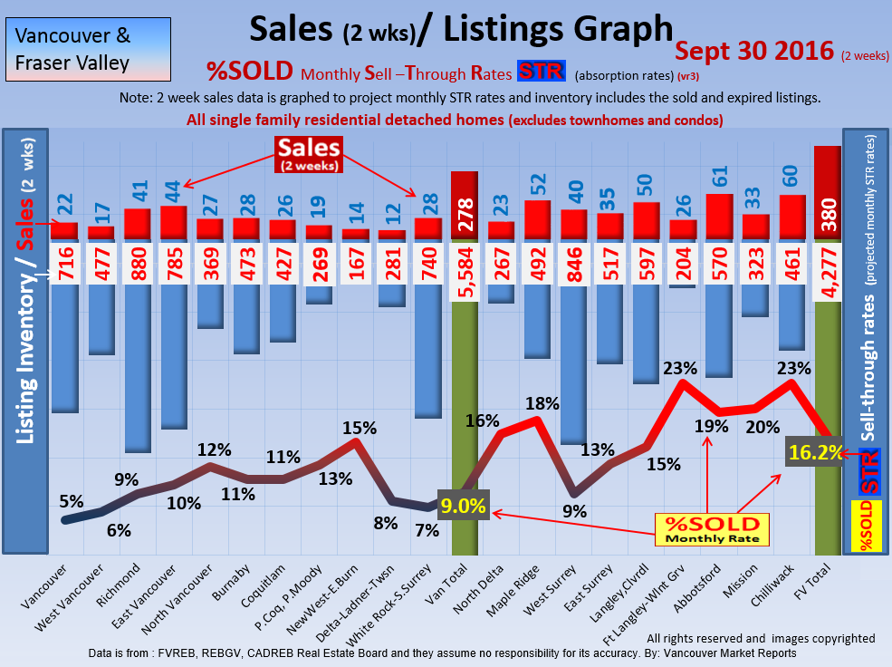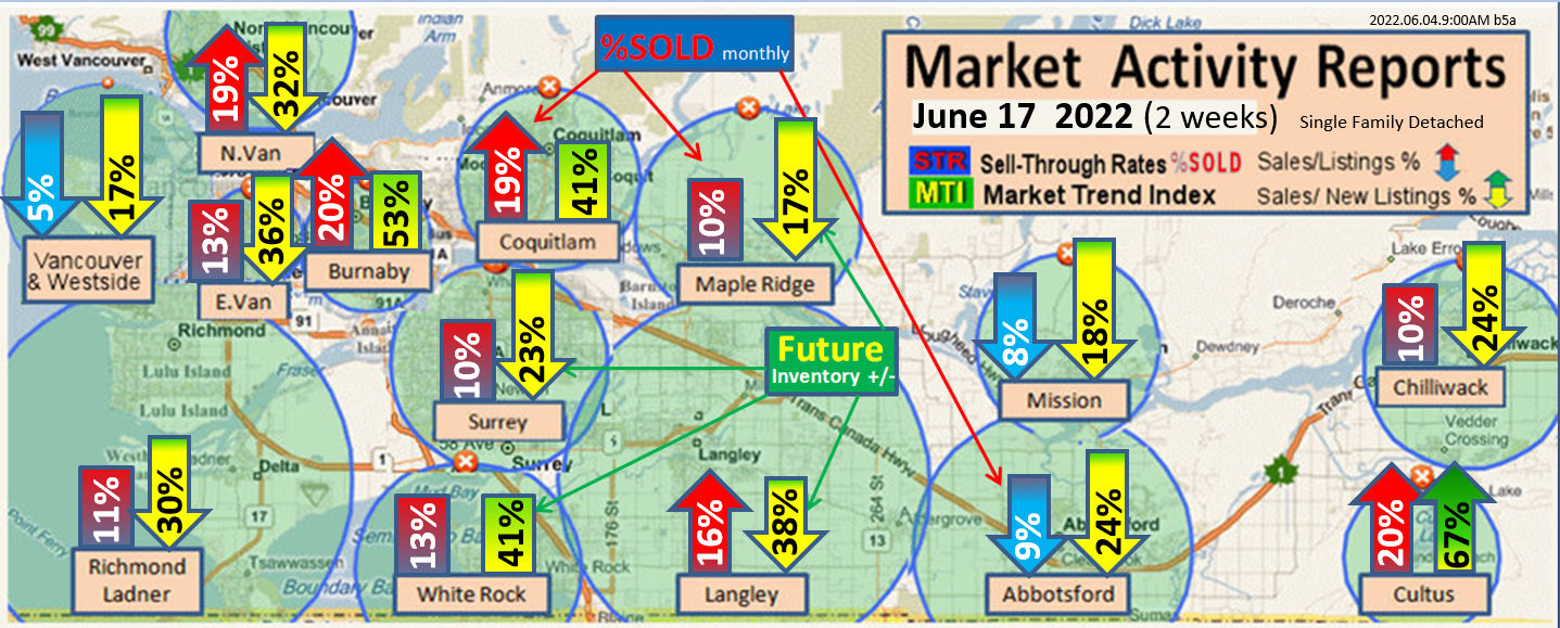 #2 The area east of it, namely of the Fraser Valley Real Estate Board: Surrey to Chilliwack. Here we see the first area has a 30% monthly listing sell-through and the area east of it is currently at a 9% monthly sell-through to read more ..click here