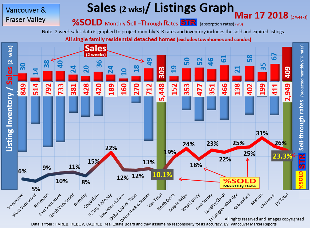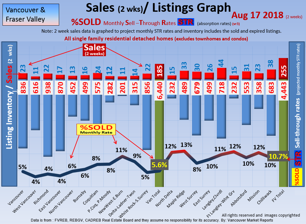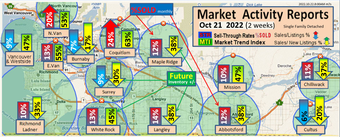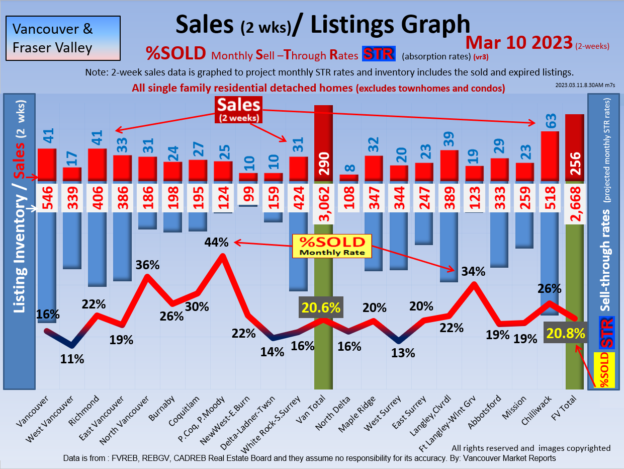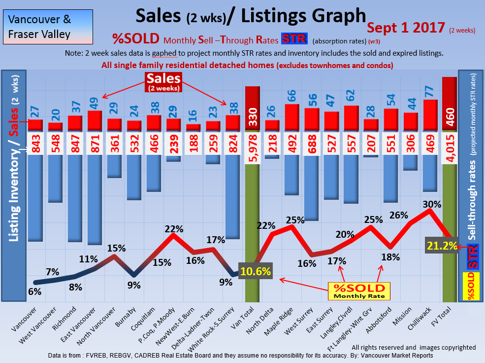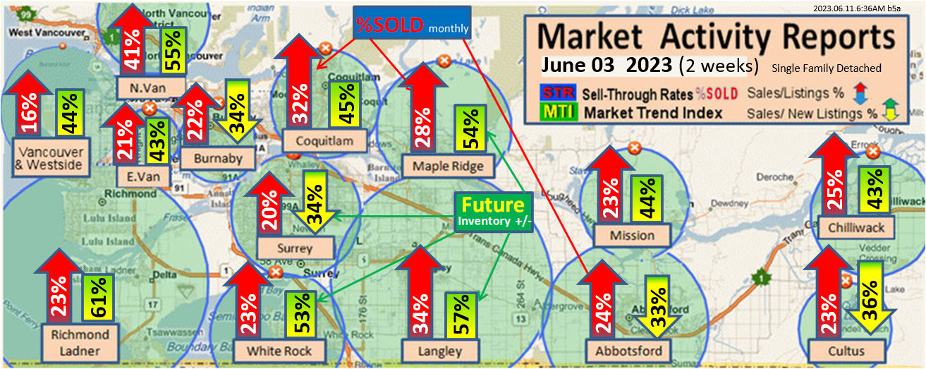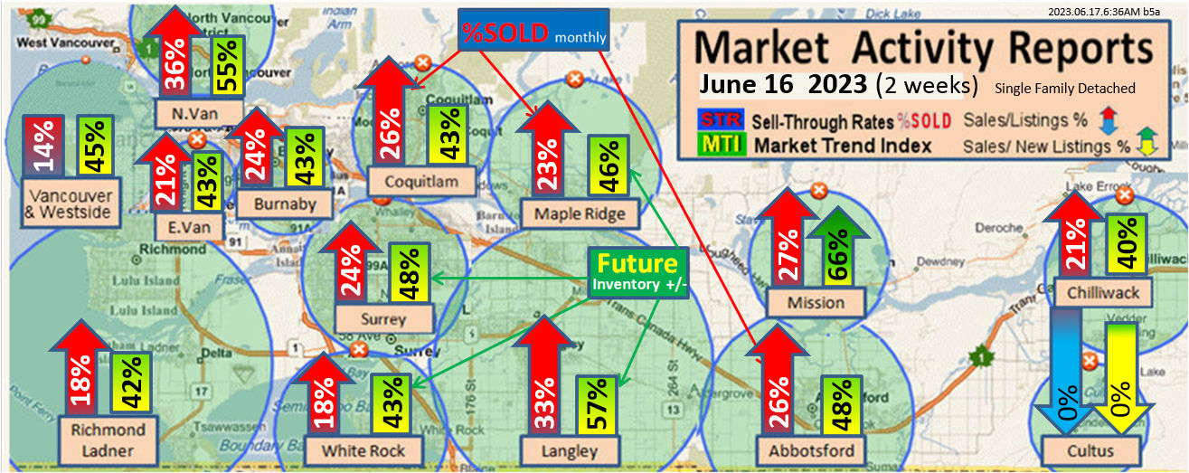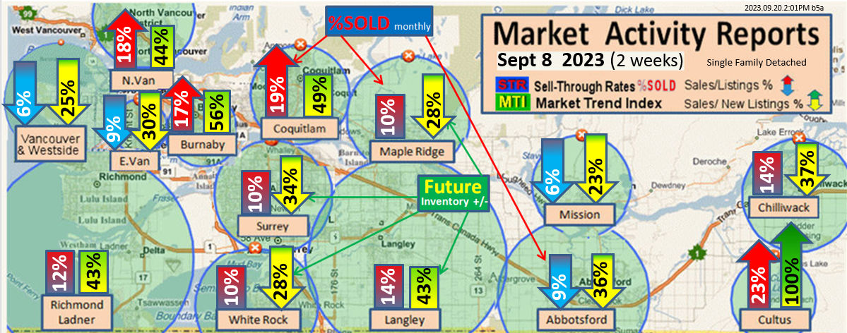 #2 The area east of it, namely of the Fraser Valley Real Estate Board: Surrey to Chilliwack. Here we see the first area has a 30% monthly listing sell-through and the area east of it is currently at a 9% monthly sell-through to read more ..click here