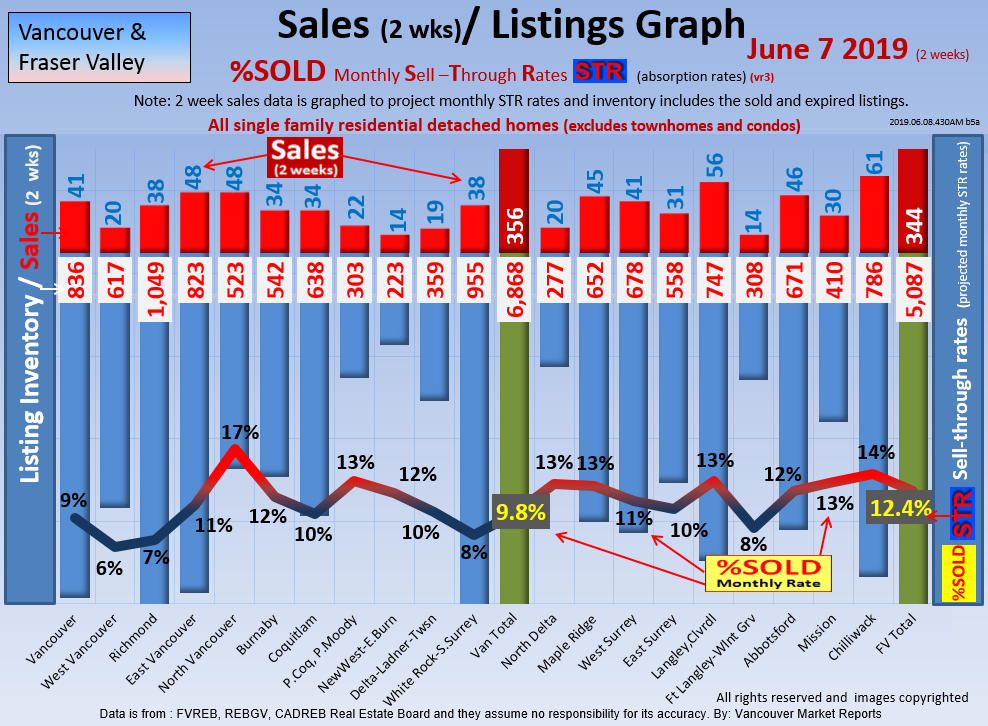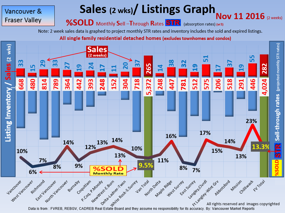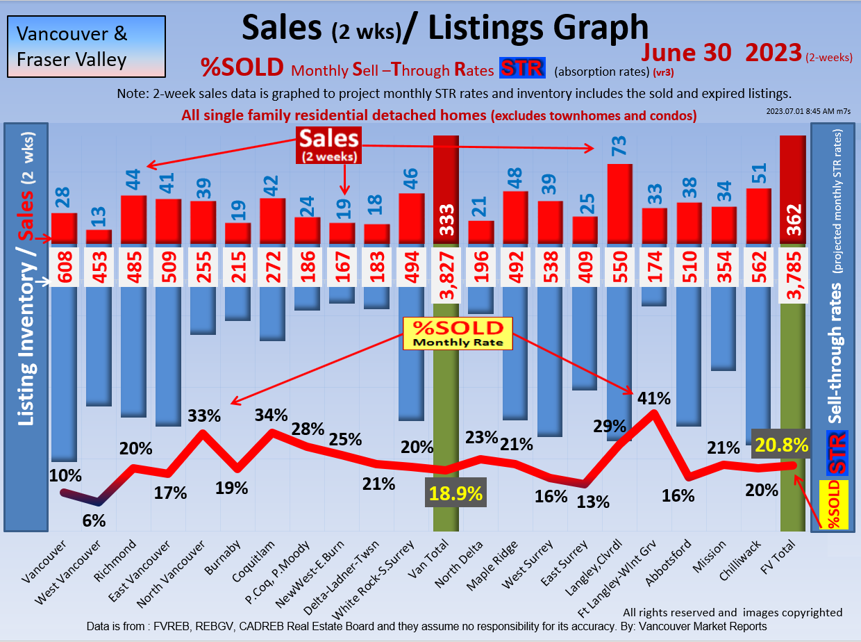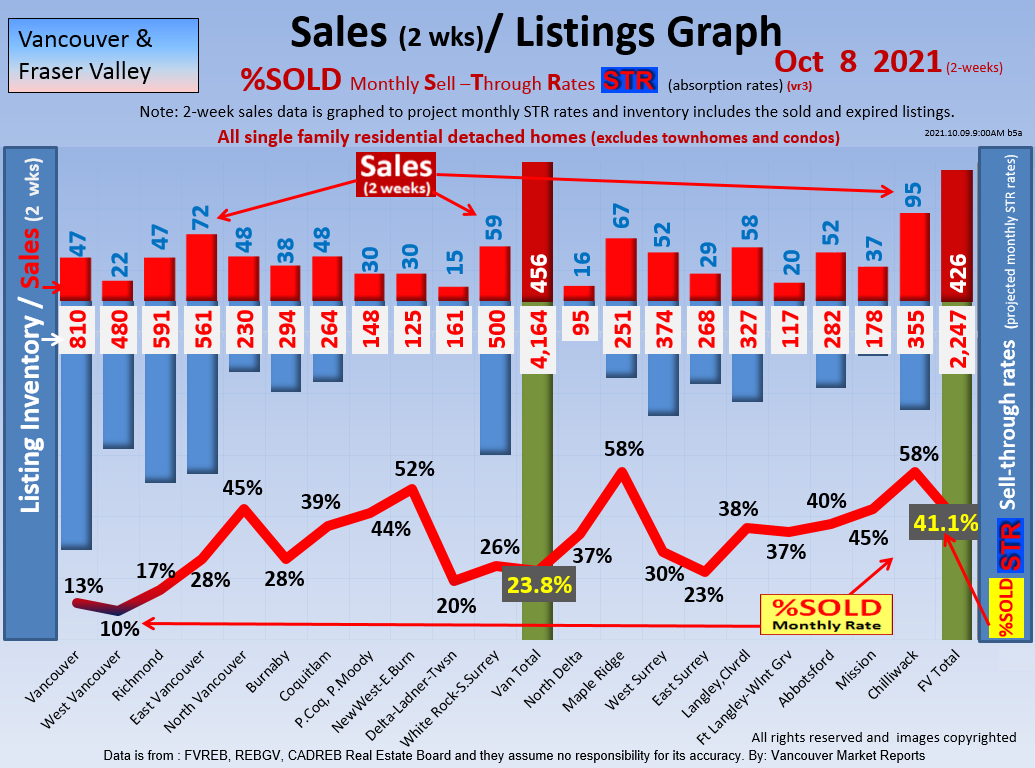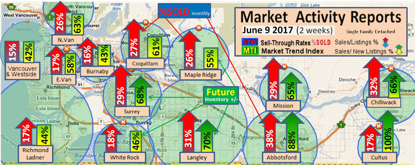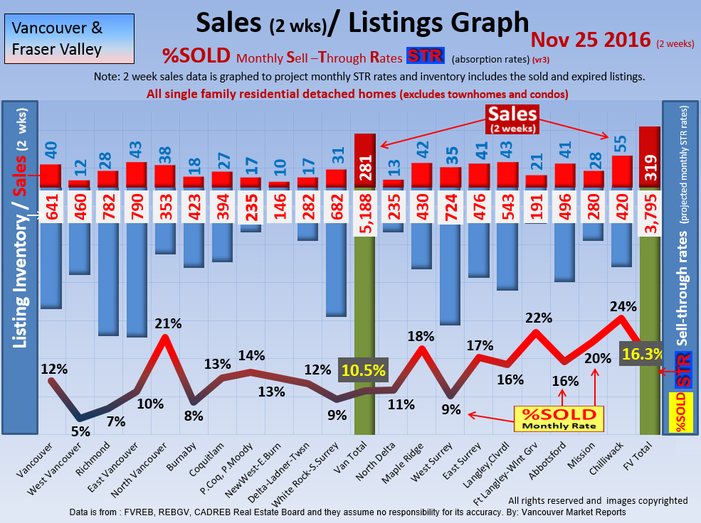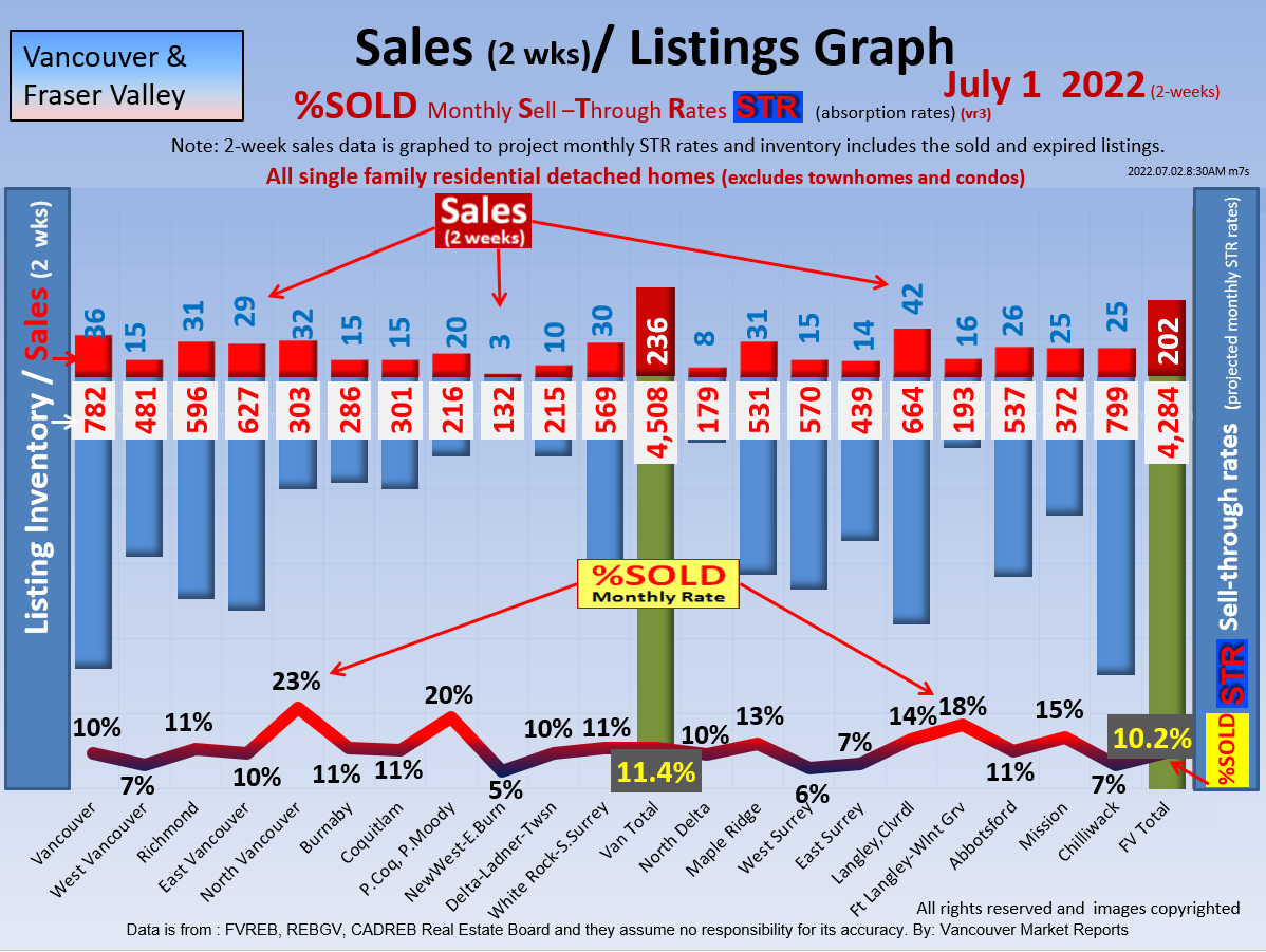 #2 The area east of it, namely of the Fraser Valley Real Estate Board: Surrey to Chilliwack. Here we see the first area has a 30% monthly listing sell-through and the area east of it is currently at a 9% monthly sell-through to read more ..click here