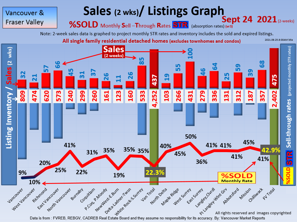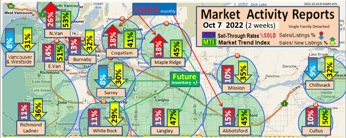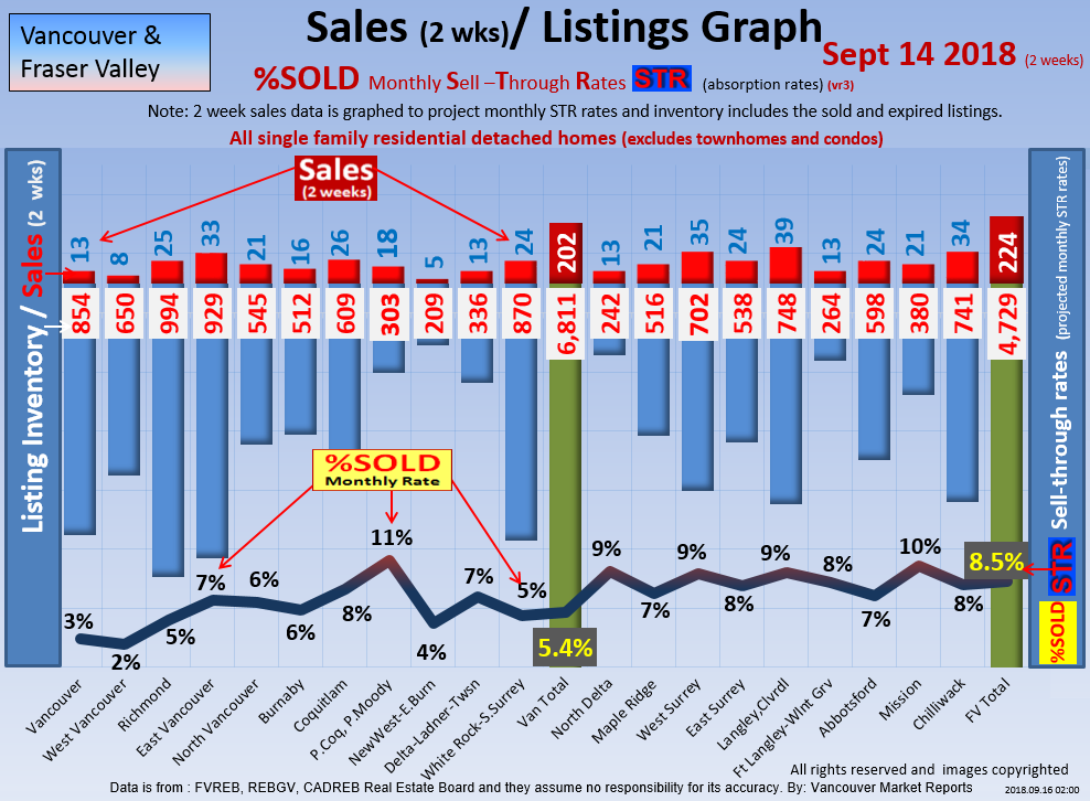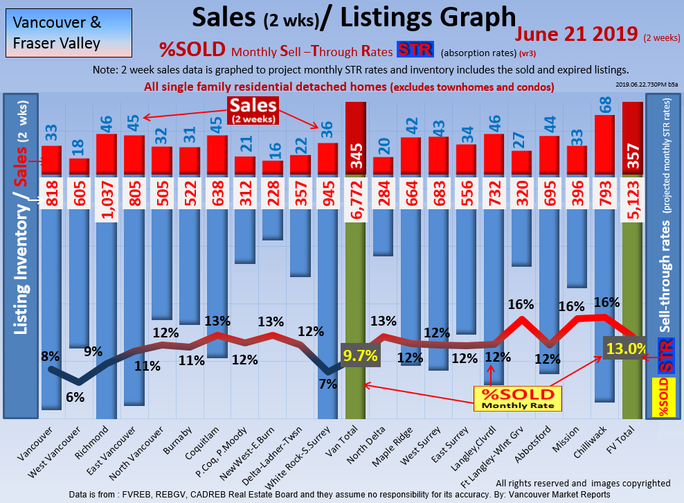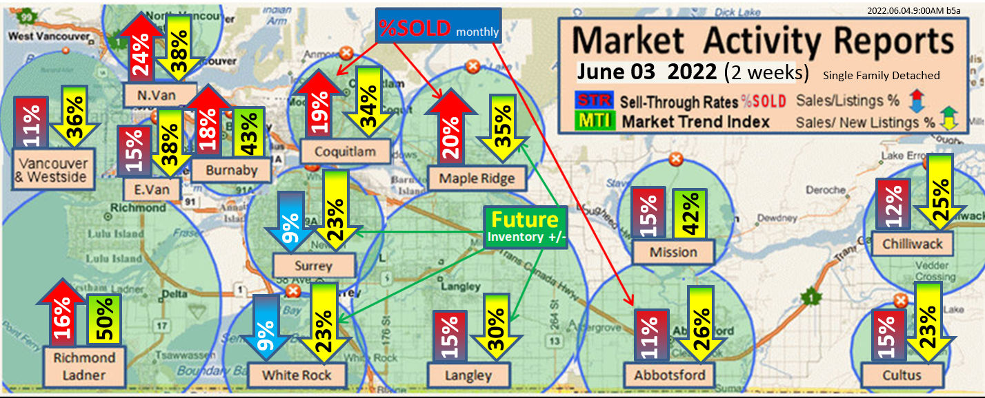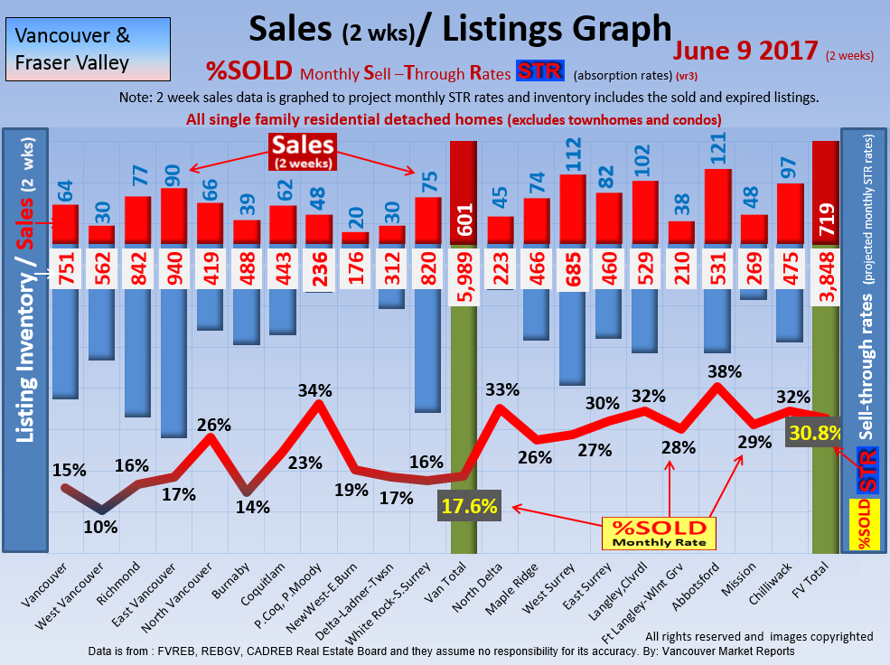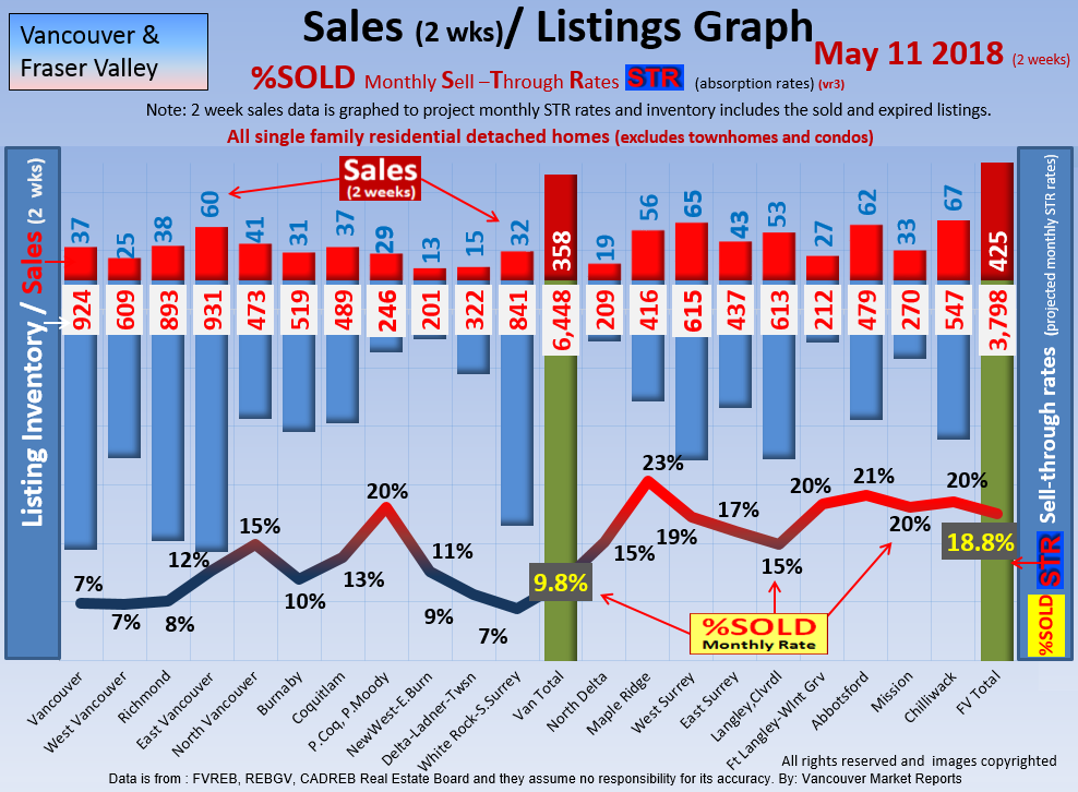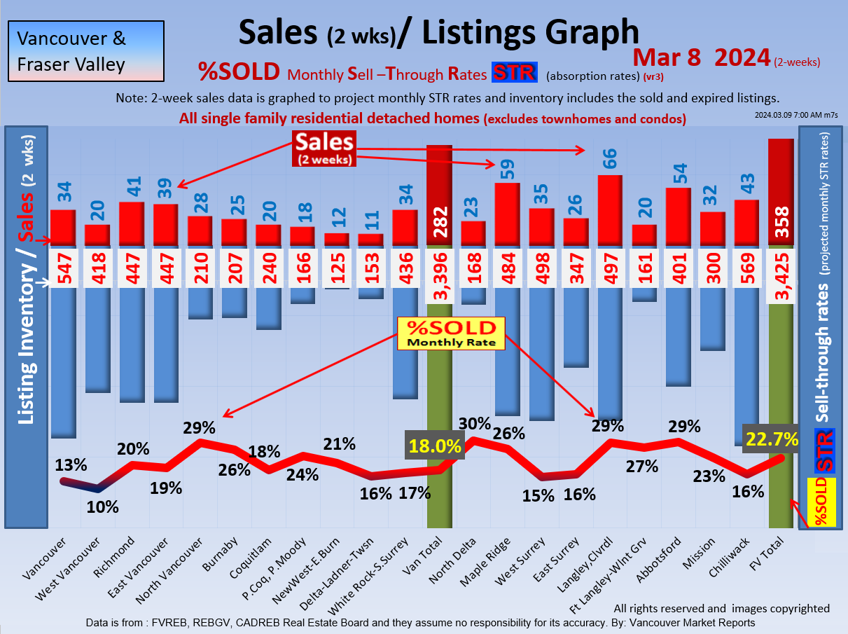 #2 The area east of it, namely of the Fraser Valley Real Estate Board: Surrey to Chilliwack. Here we see the first area has a 30% monthly listing sell-through and the area east of it is currently at a 9% monthly sell-through to read more ..click here