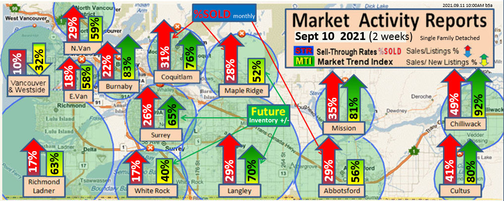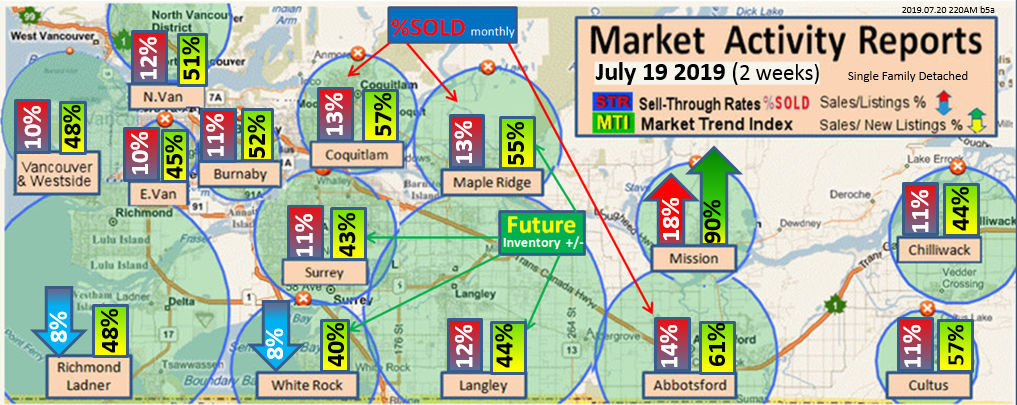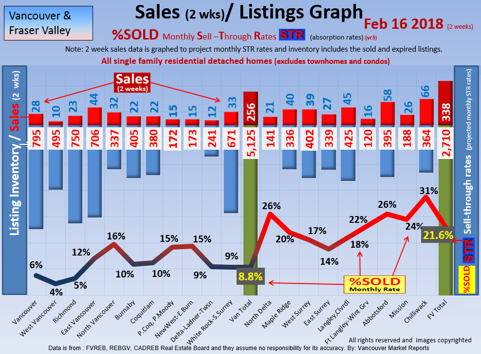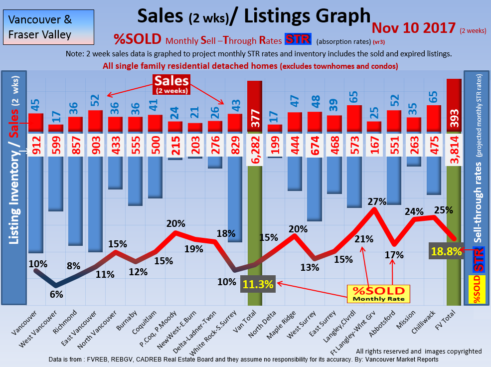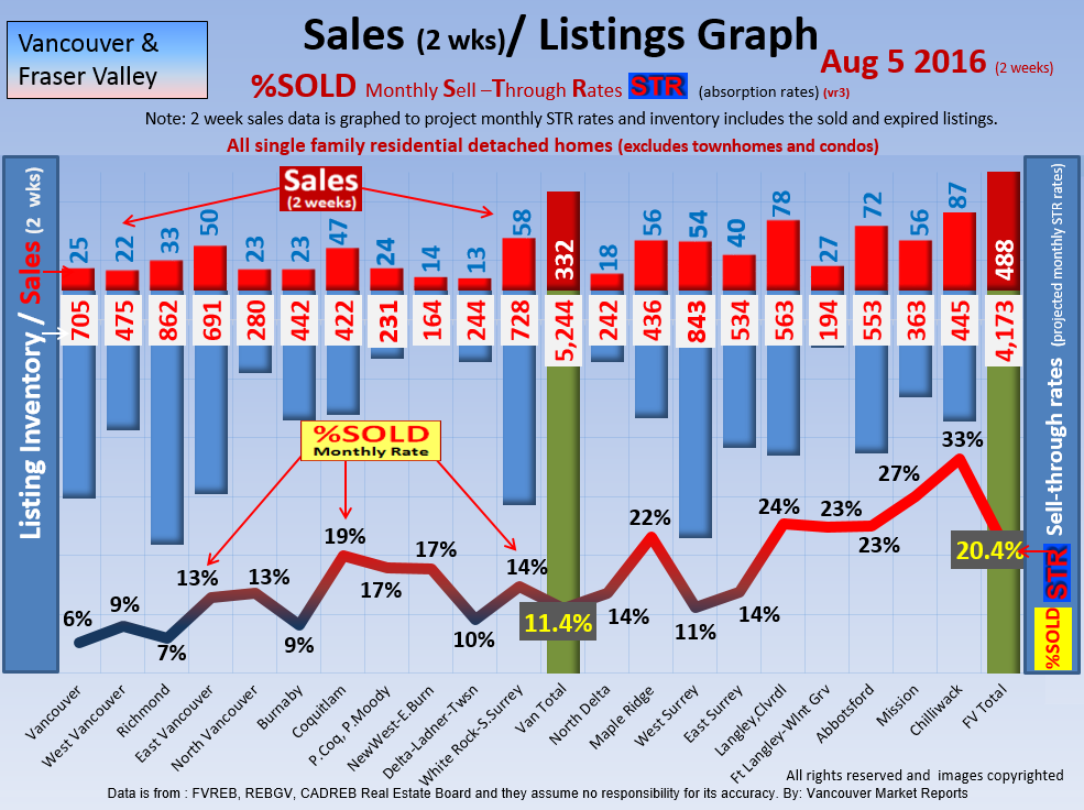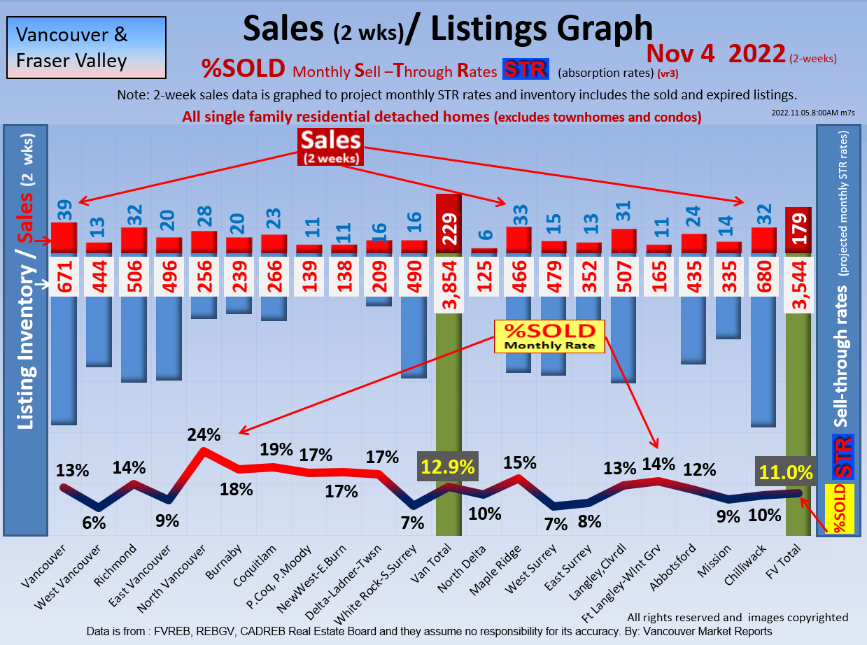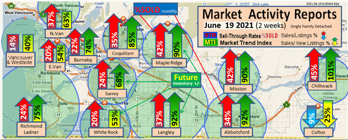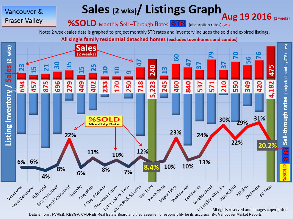 #2 The area east of it, namely of the Fraser Valley Real Estate Board: Surrey to Chilliwack. Here we see the first area has a 30% monthly listing sell-through and the area east of it is currently at a 9% monthly sell-through to read more ..click here