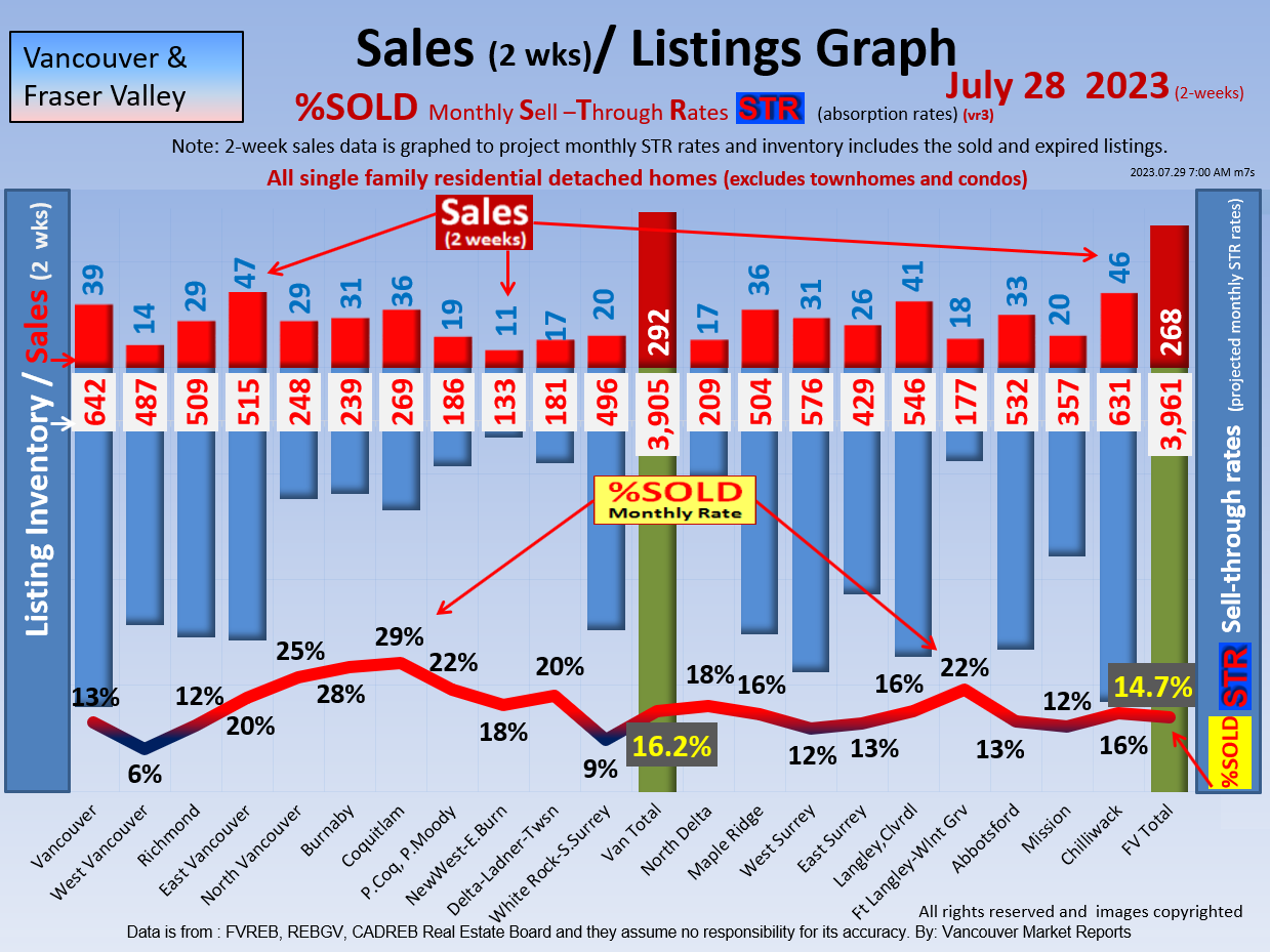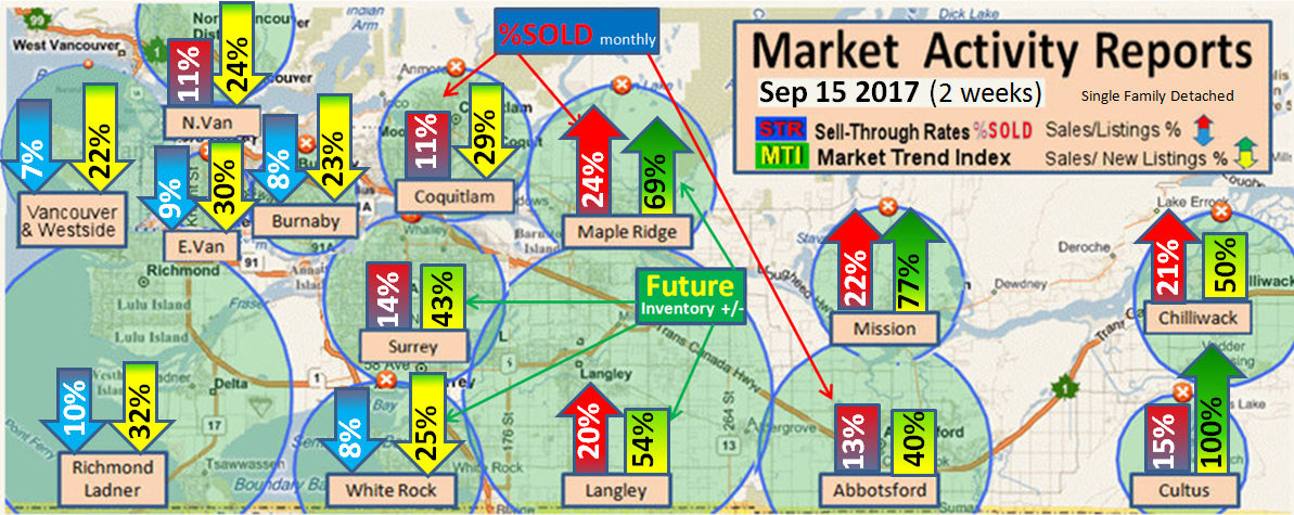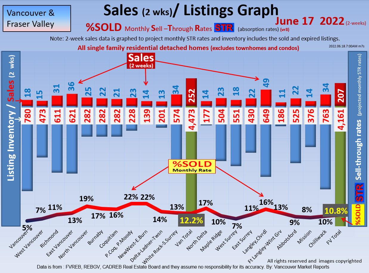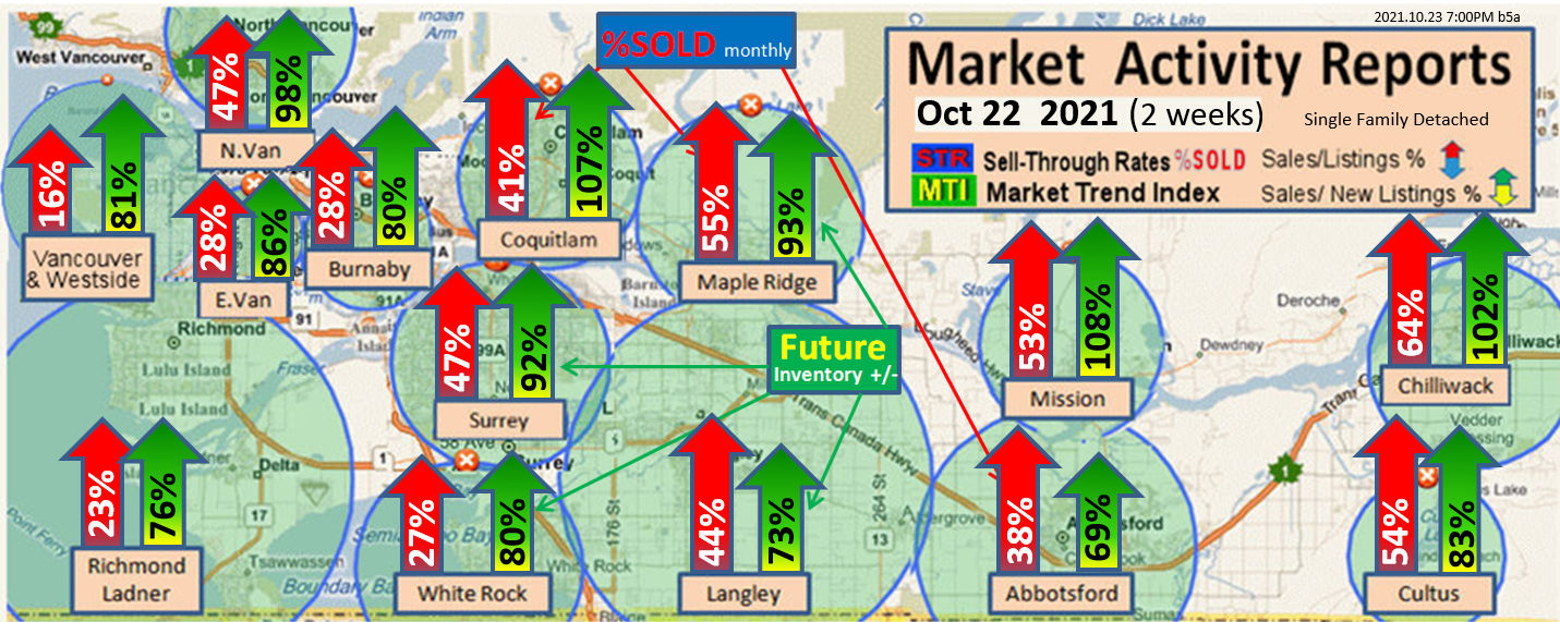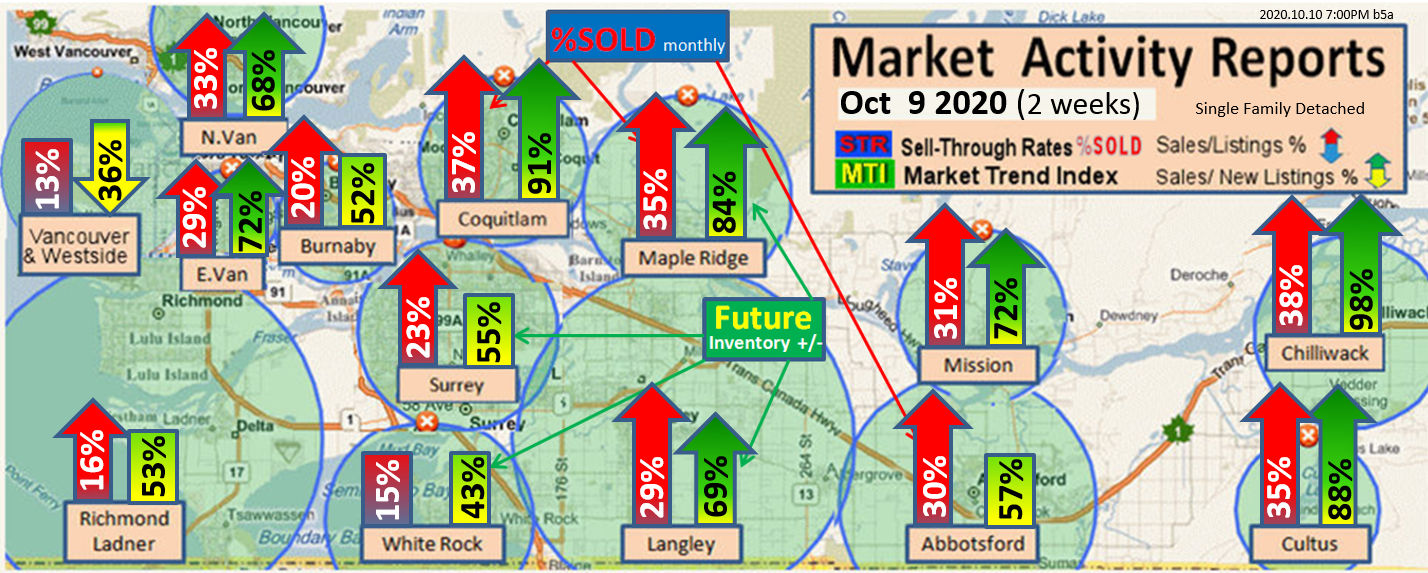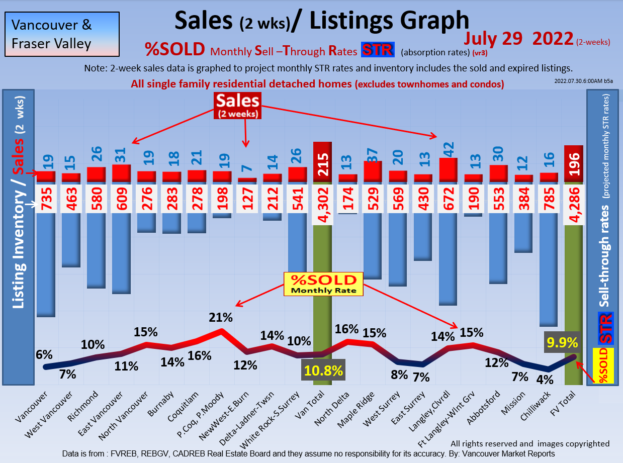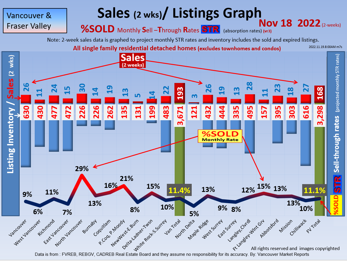 #2 The area east of it, namely of the Fraser Valley Real Estate Board: Surrey to Chilliwack. Here we see the first area has a 30% monthly listing sell-through and the area east of it is currently at a 9% monthly sell-through to read more ..click here