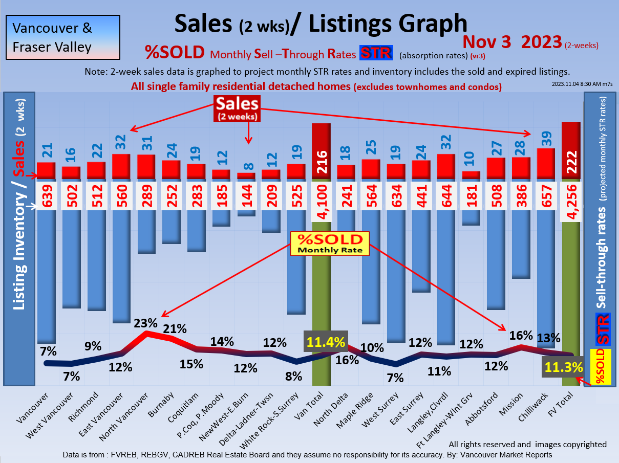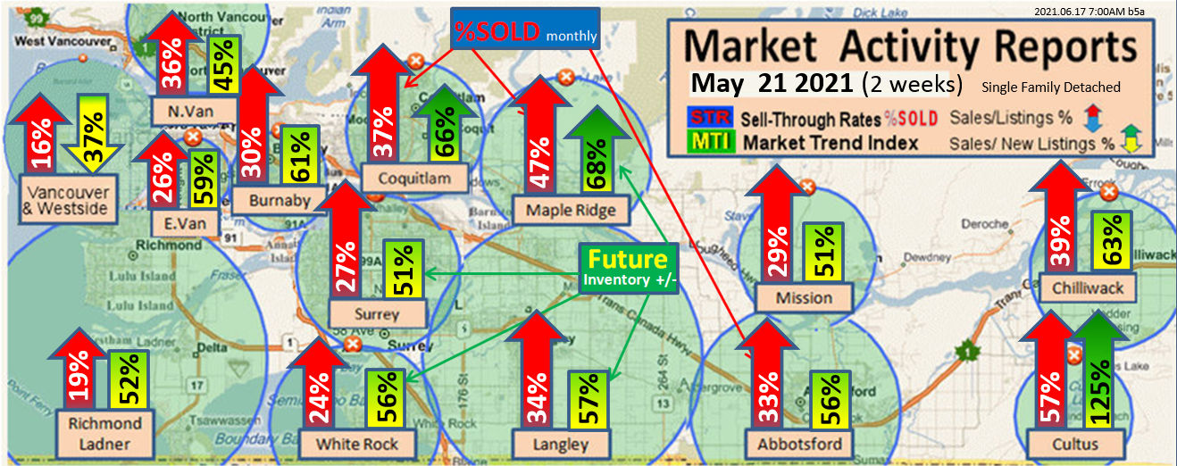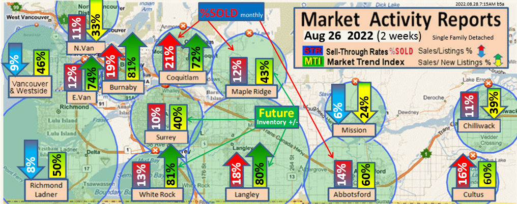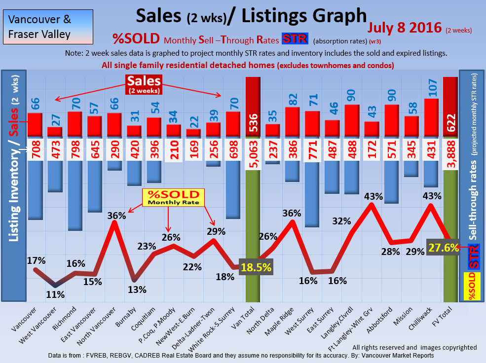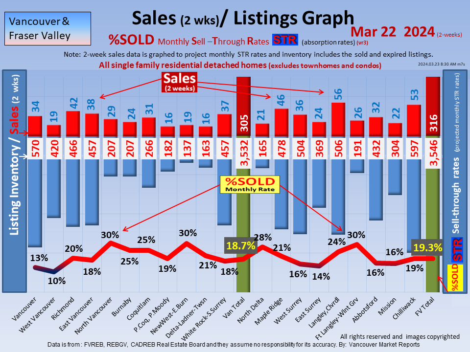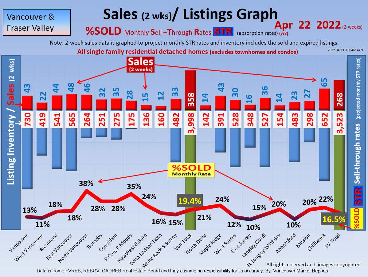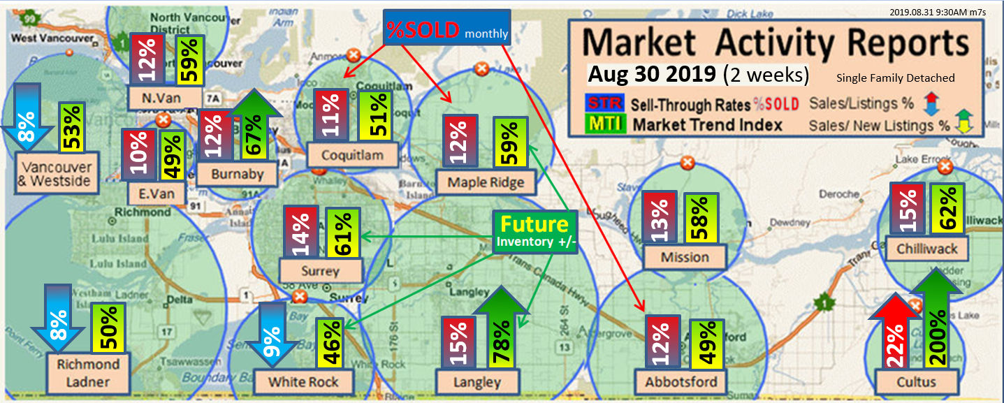 #2 The area east of it, namely of the Fraser Valley Real Estate Board: Surrey to Chilliwack. Here we see the first area has a 30% monthly listing sell-through and the area east of it is currently at a 9% monthly sell-through to read more ..click here