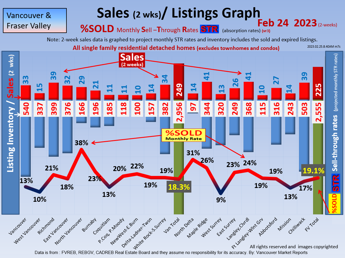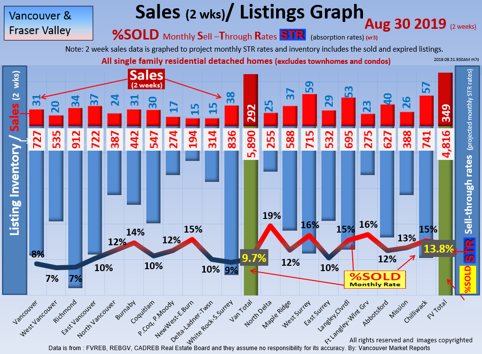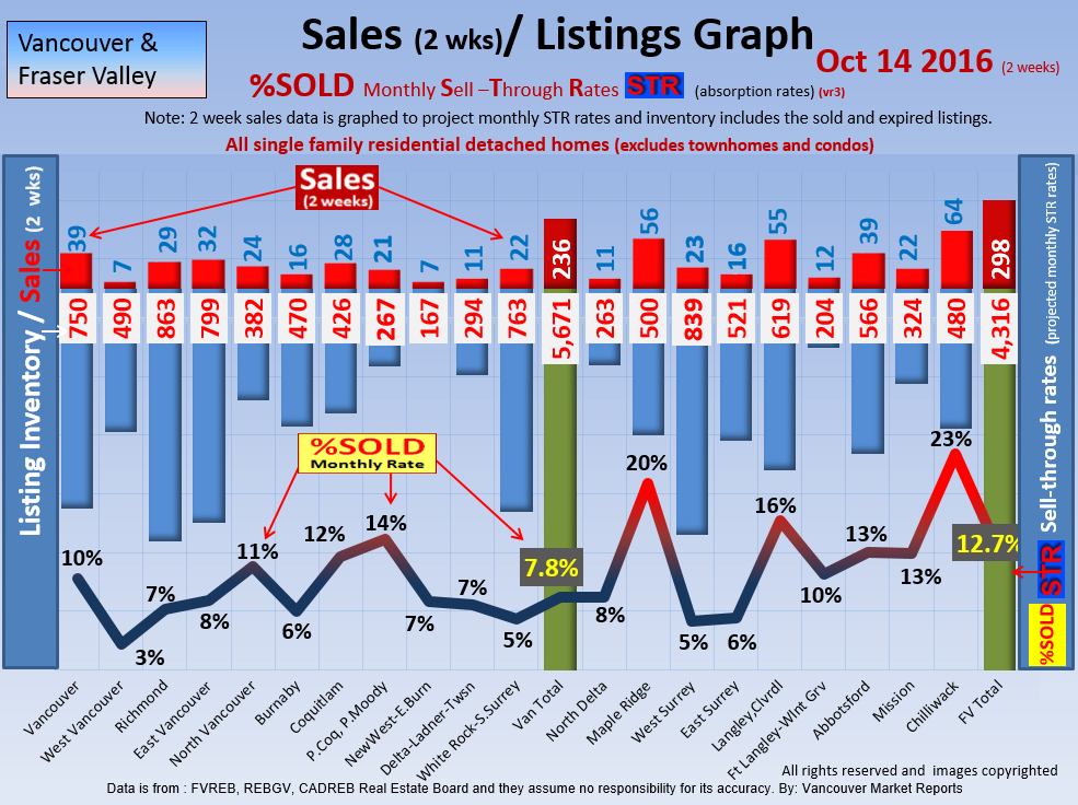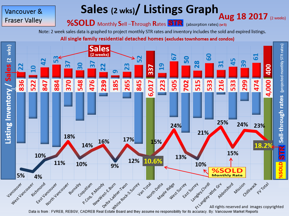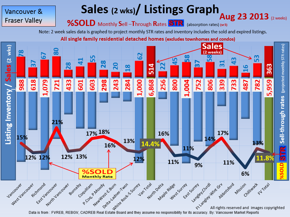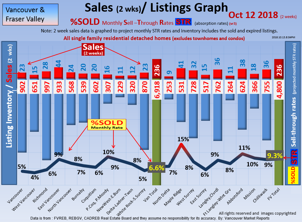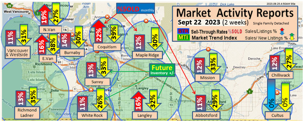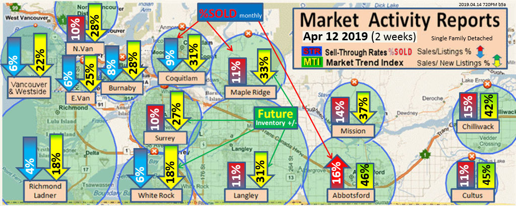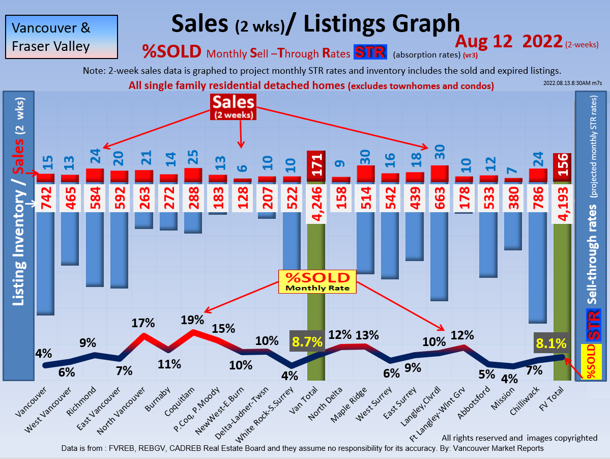 #2 The area east of it, namely of the Fraser Valley Real Estate Board: Surrey to Chilliwack. Here we see the first area has a 30% monthly listing sell-through and the area east of it is currently at a 9% monthly sell-through to read more ..click here