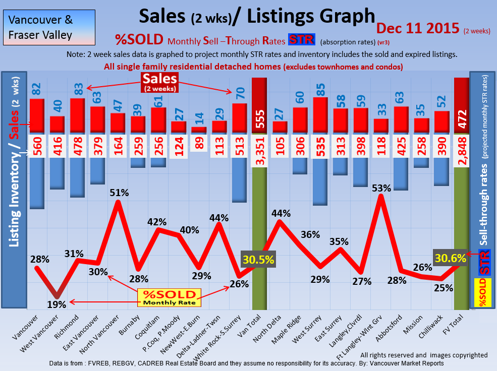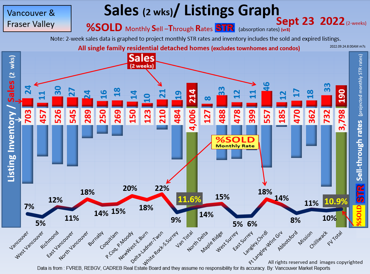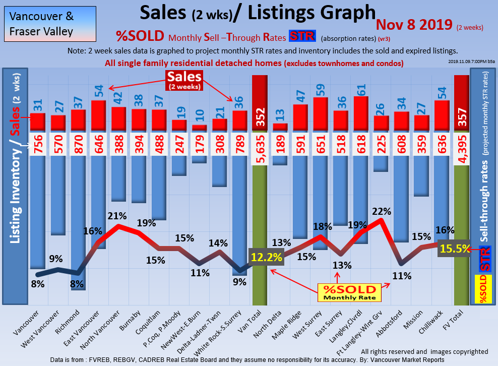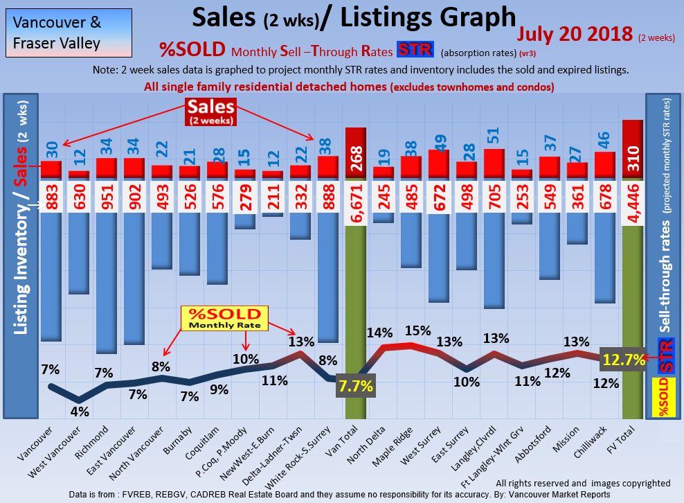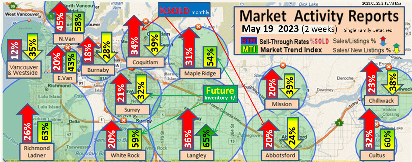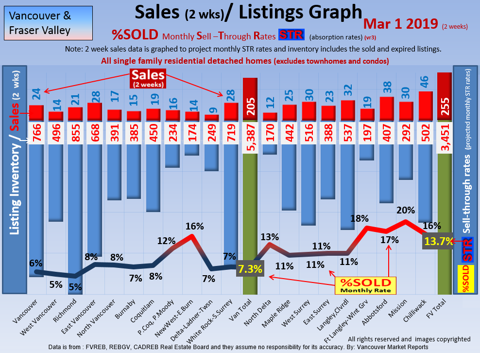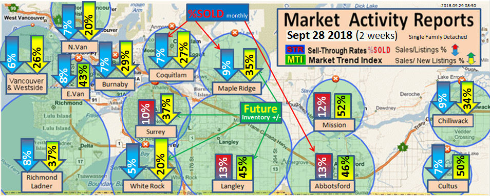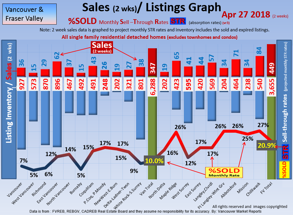 #2 The area east of it, namely of the Fraser Valley Real Estate Board: Surrey to Chilliwack. Here we see the first area has a 30% monthly listing sell-through and the area east of it is currently at a 9% monthly sell-through to read more ..click here