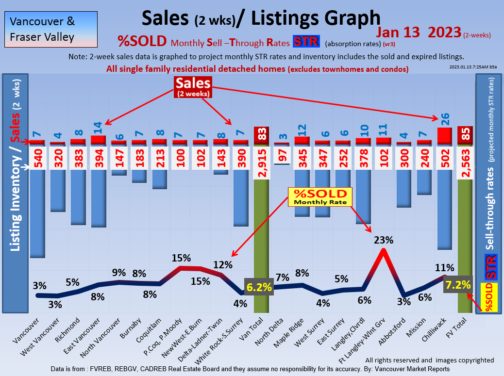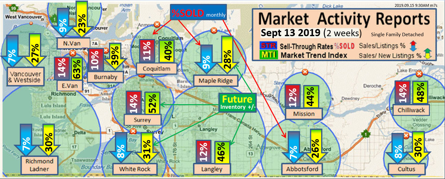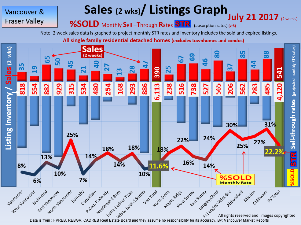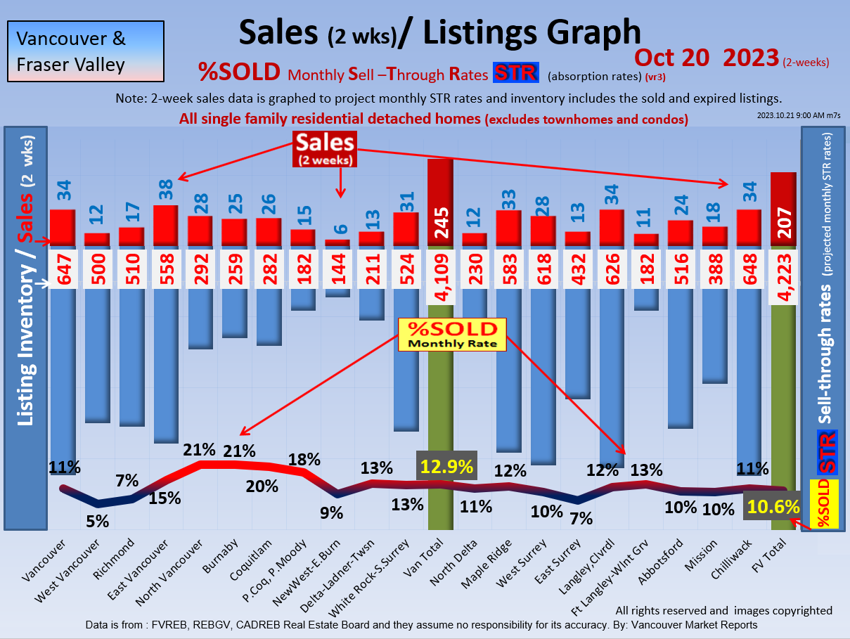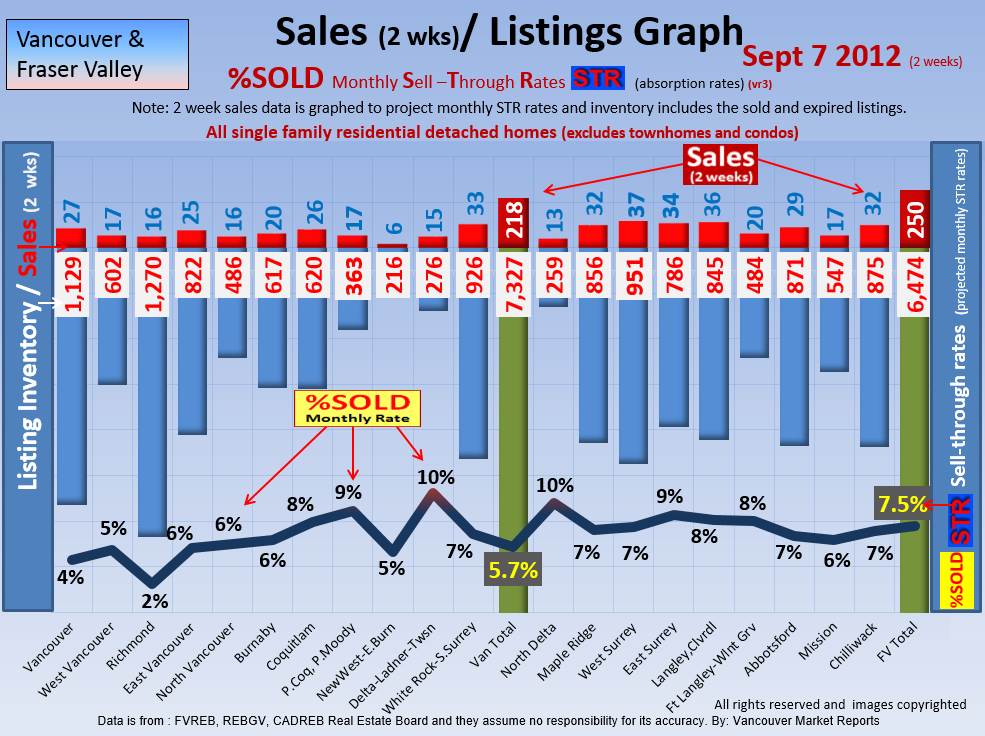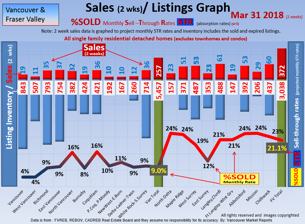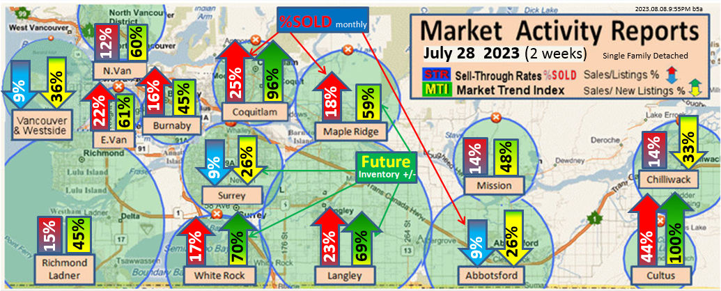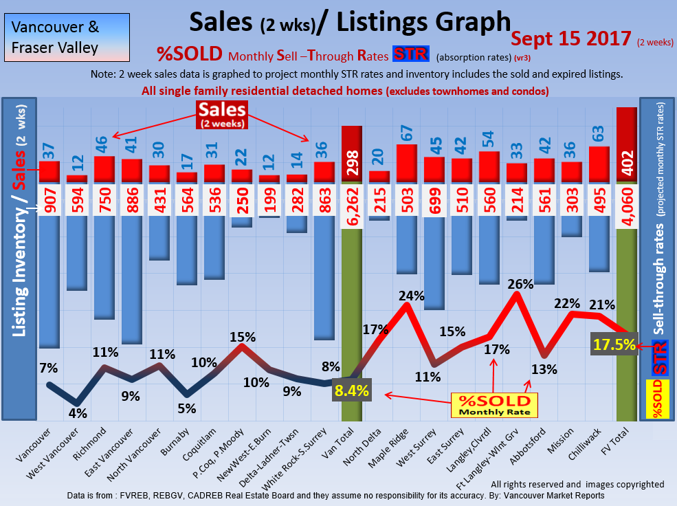 #2 The area east of it, namely of the Fraser Valley Real Estate Board: Surrey to Chilliwack. Here we see the first area has a 30% monthly listing sell-through and the area east of it is currently at a 9% monthly sell-through to read more ..click here
