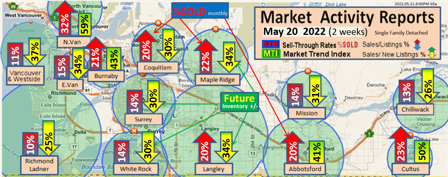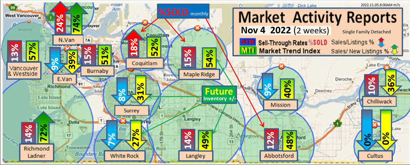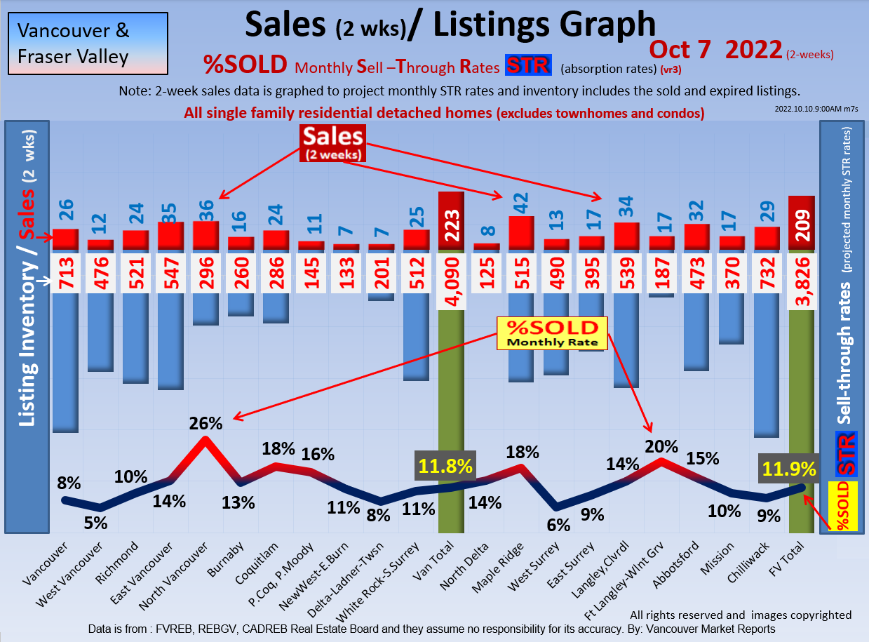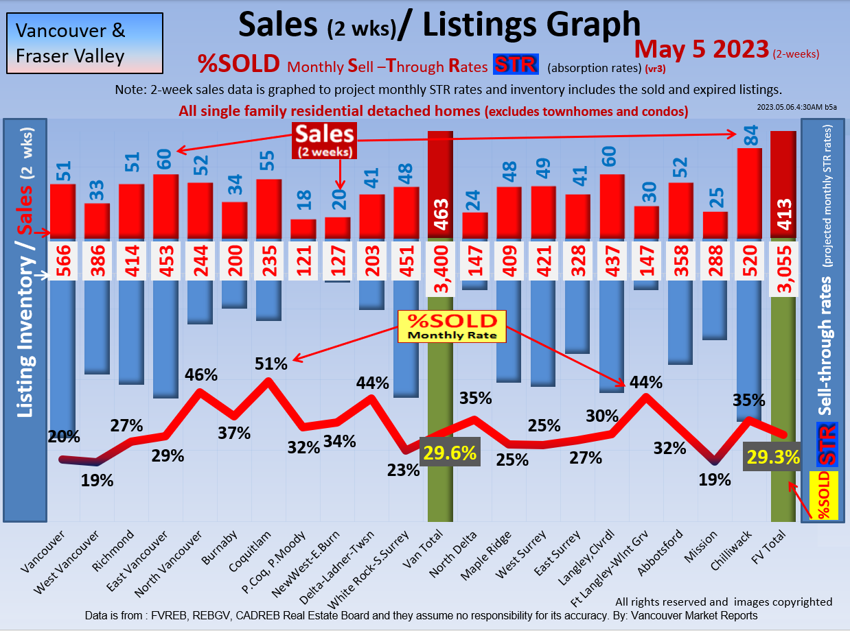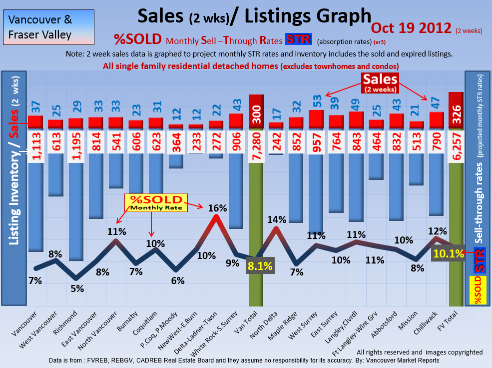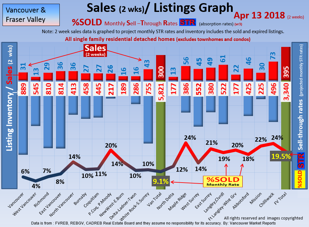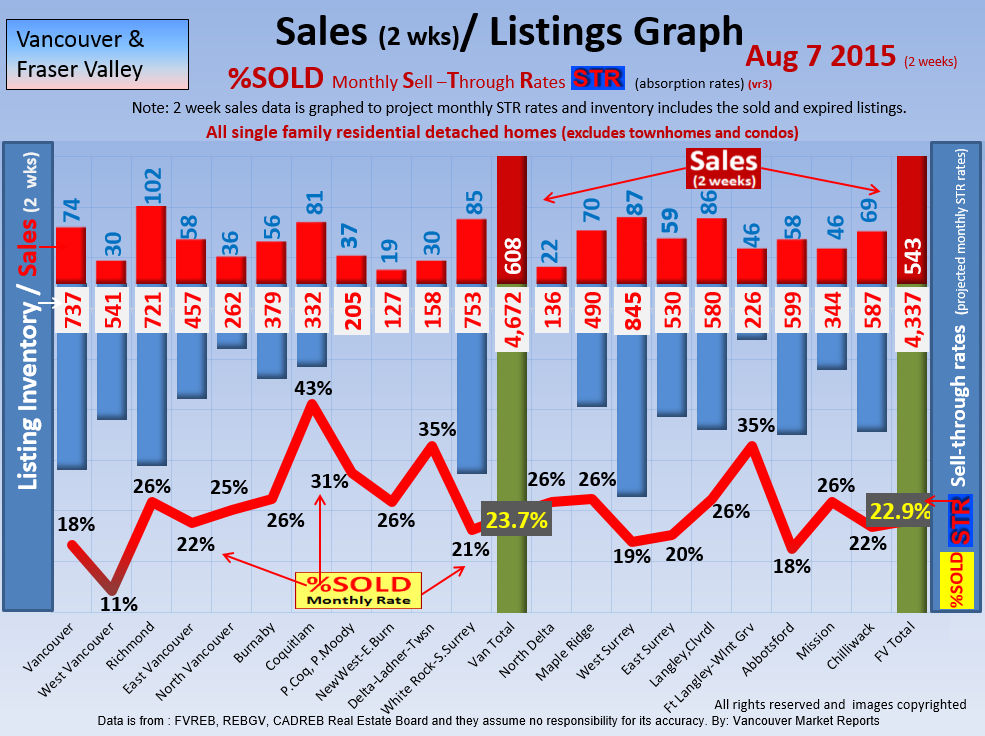 #2 The area east of it, namely of the Fraser Valley Real Estate Board: Surrey to Chilliwack. Here we see the first area has a 30% monthly listing sell-through and the area east of it is currently at a 9% monthly sell-through to read more ..click here