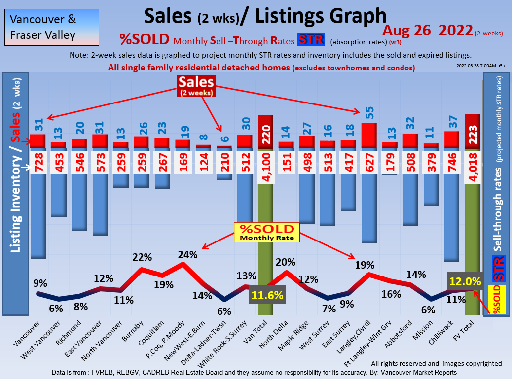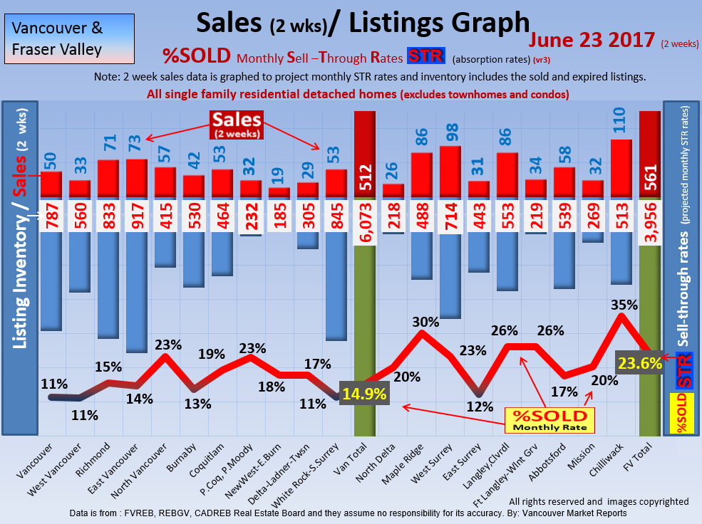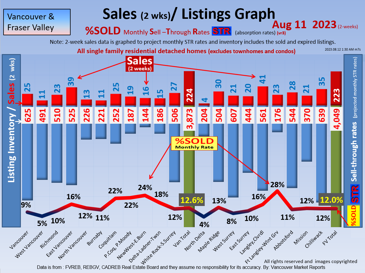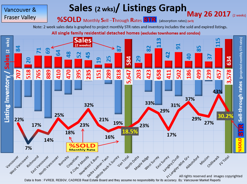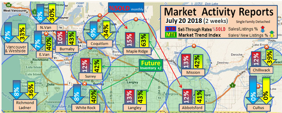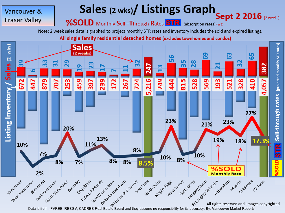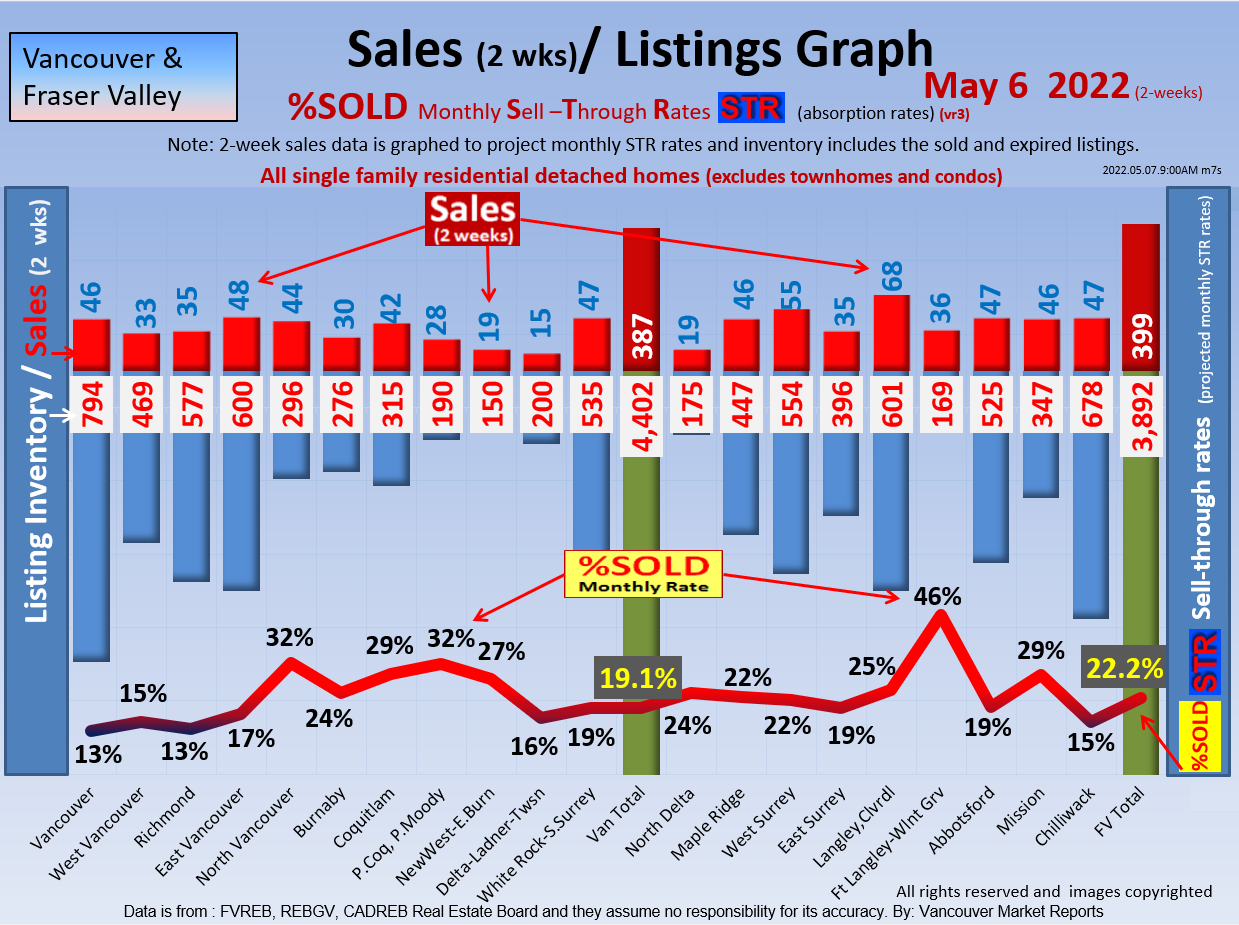 #2 The area east of it, namely of the Fraser Valley Real Estate Board: Surrey to Chilliwack. Here we see the first area has a 30% monthly listing sell-through and the area east of it is currently at a 9% monthly sell-through to read more ..click here