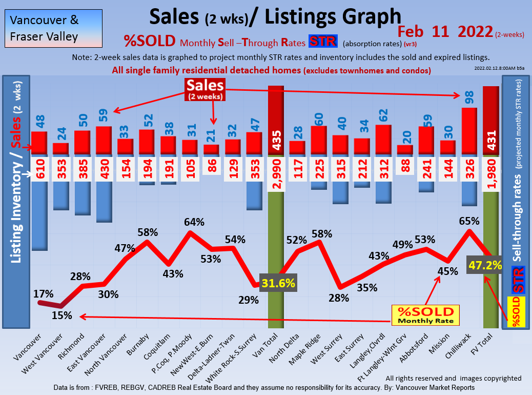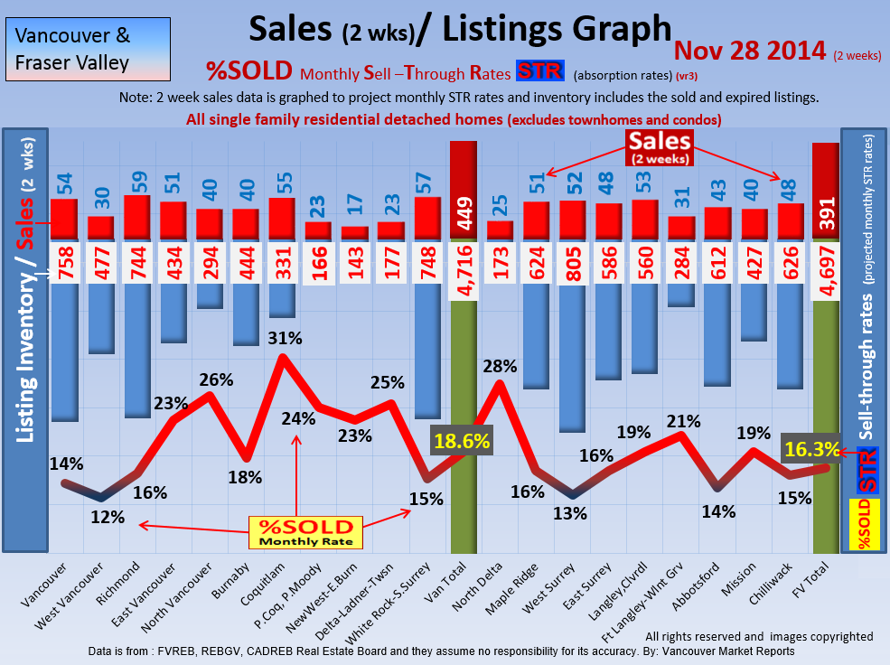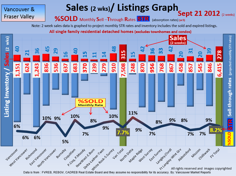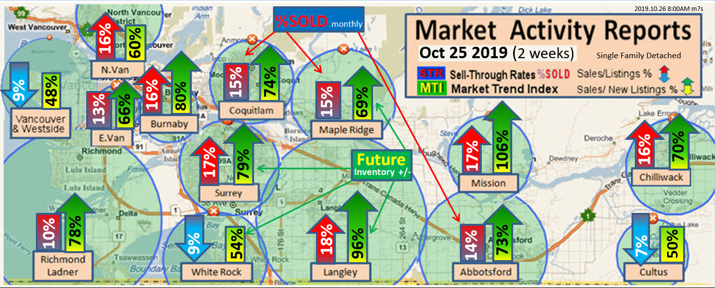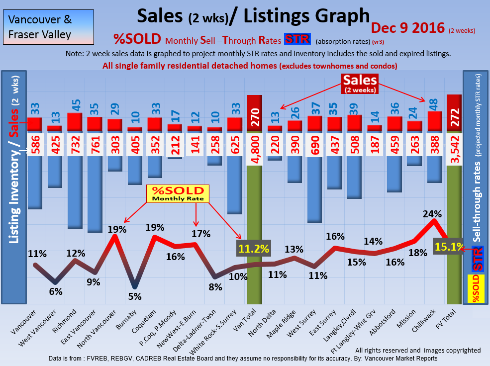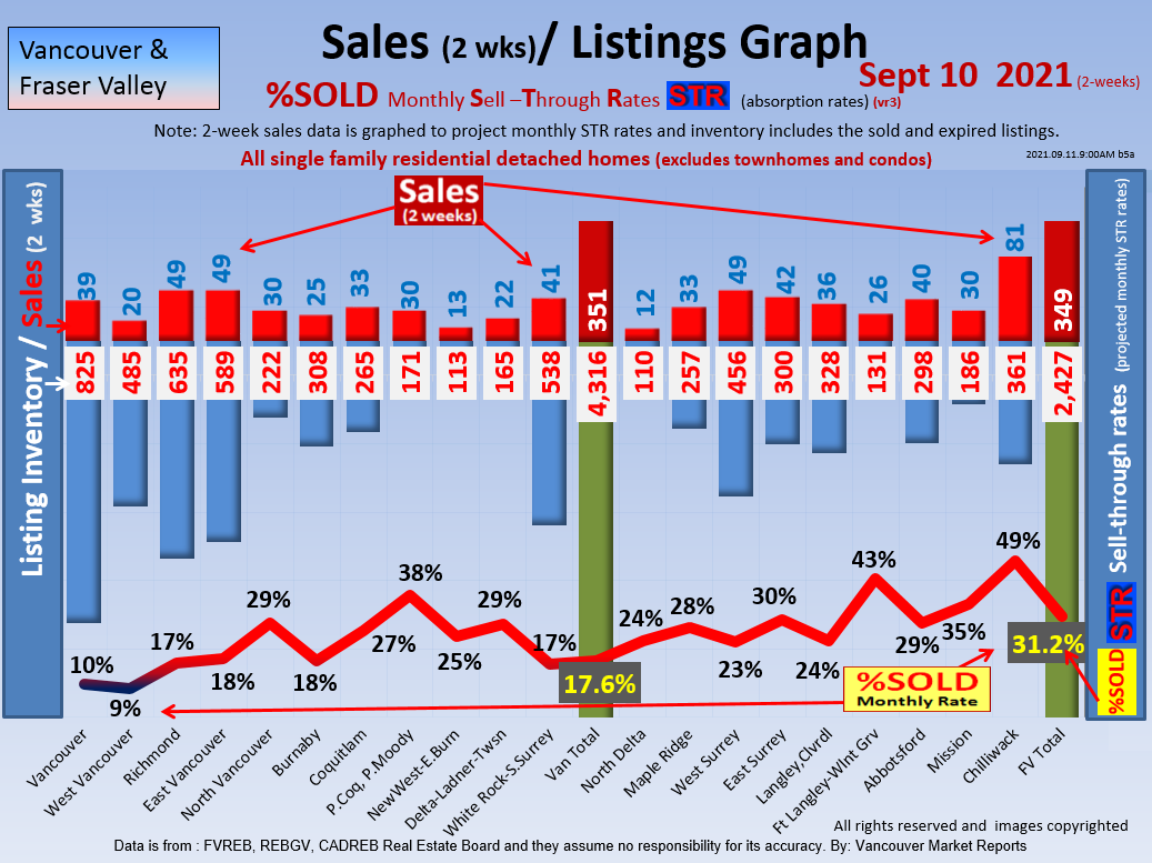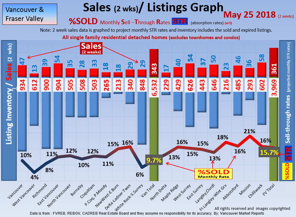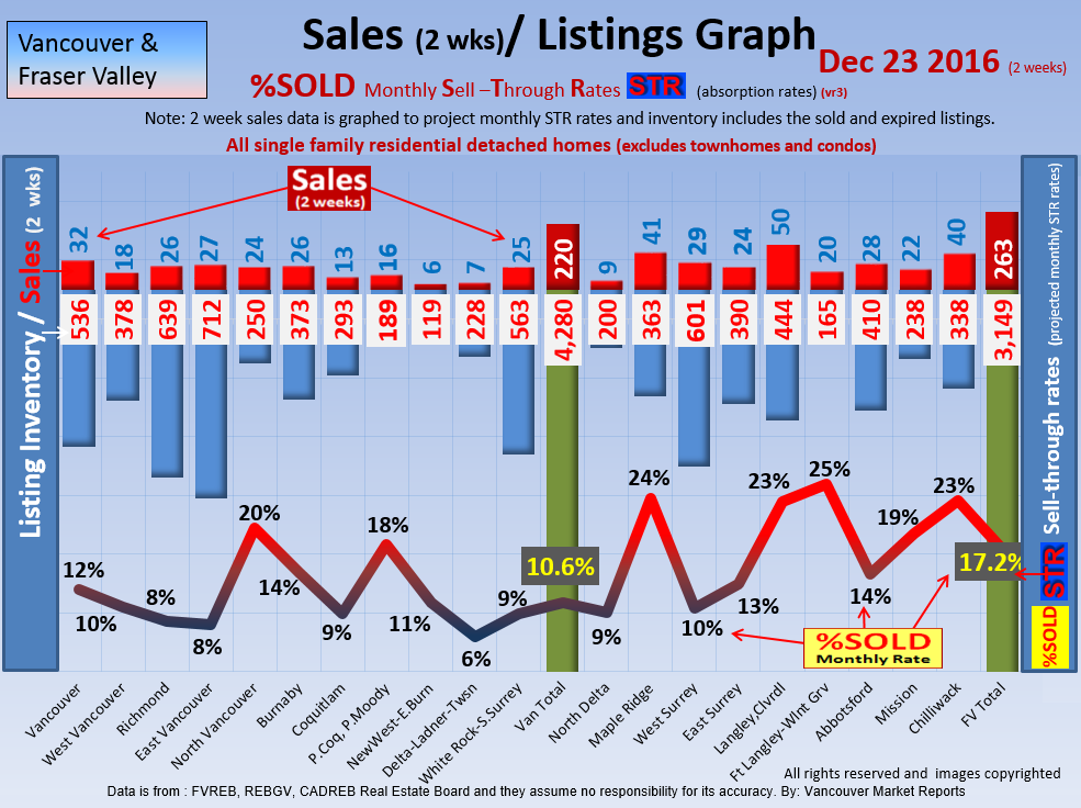 #2 The area east of it, namely of the Fraser Valley Real Estate Board: Surrey to Chilliwack. Here we see the first area has a 30% monthly listing sell-through and the area east of it is currently at a 9% monthly sell-through to read more ..click here