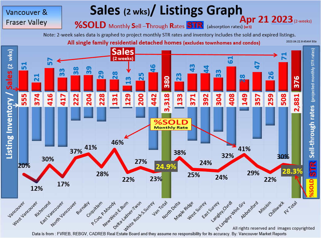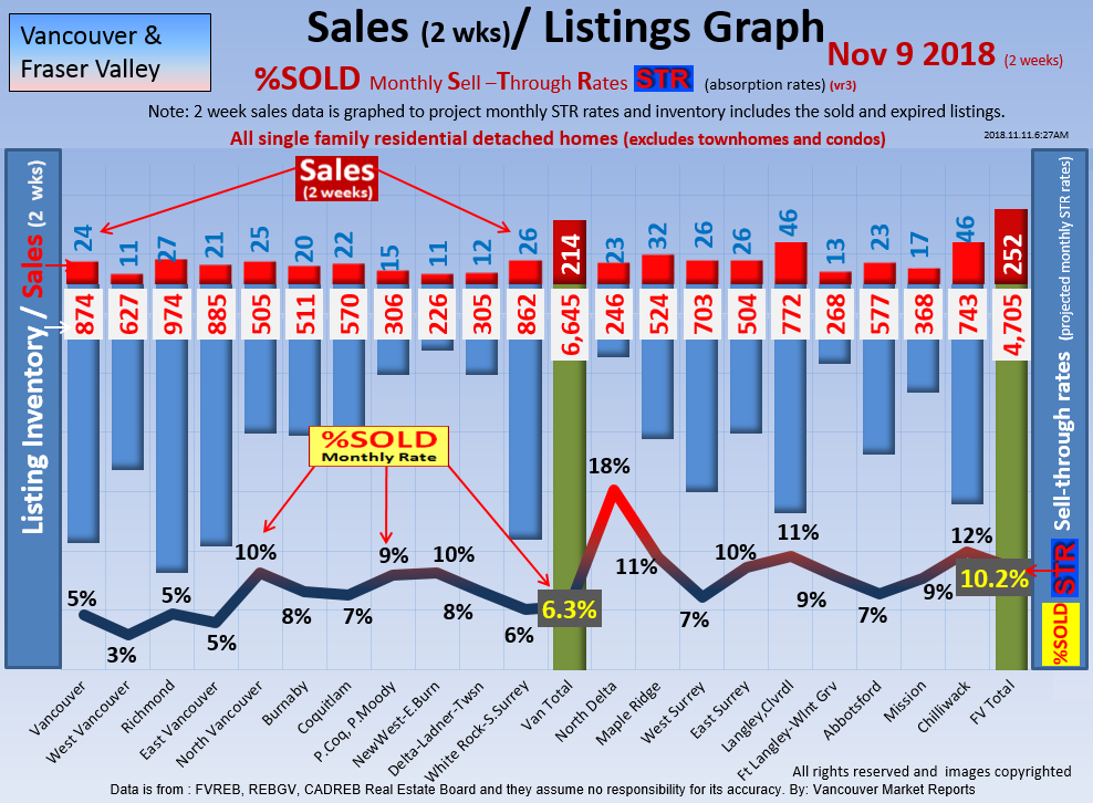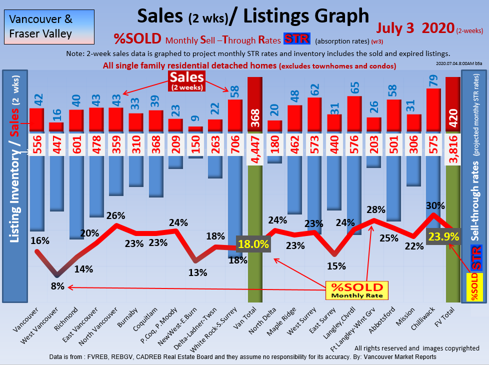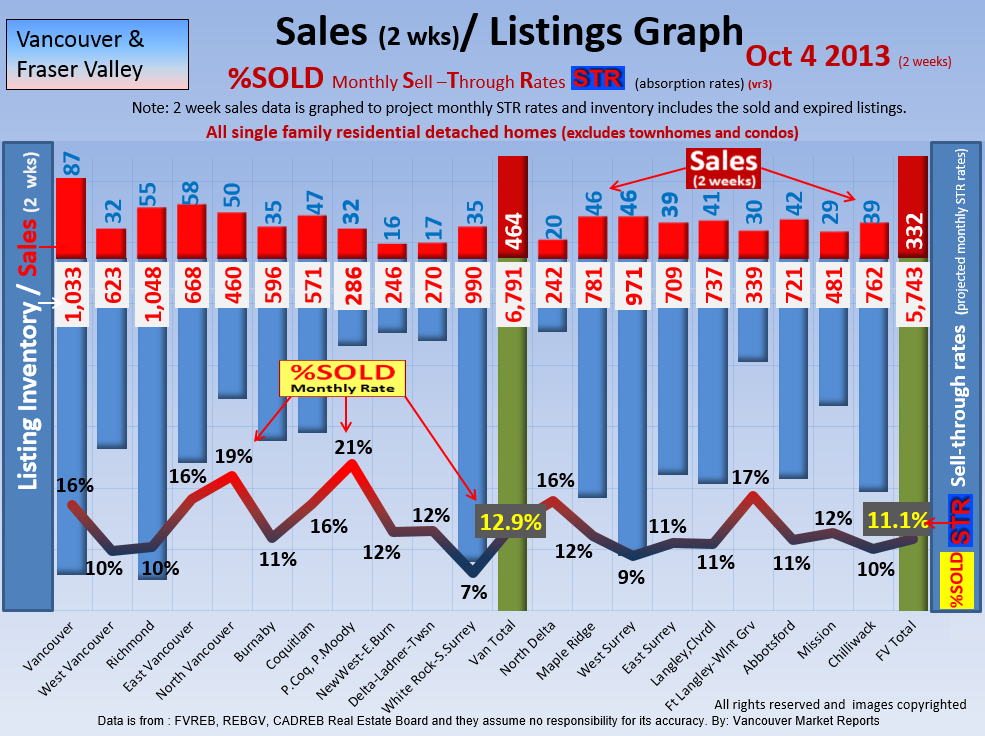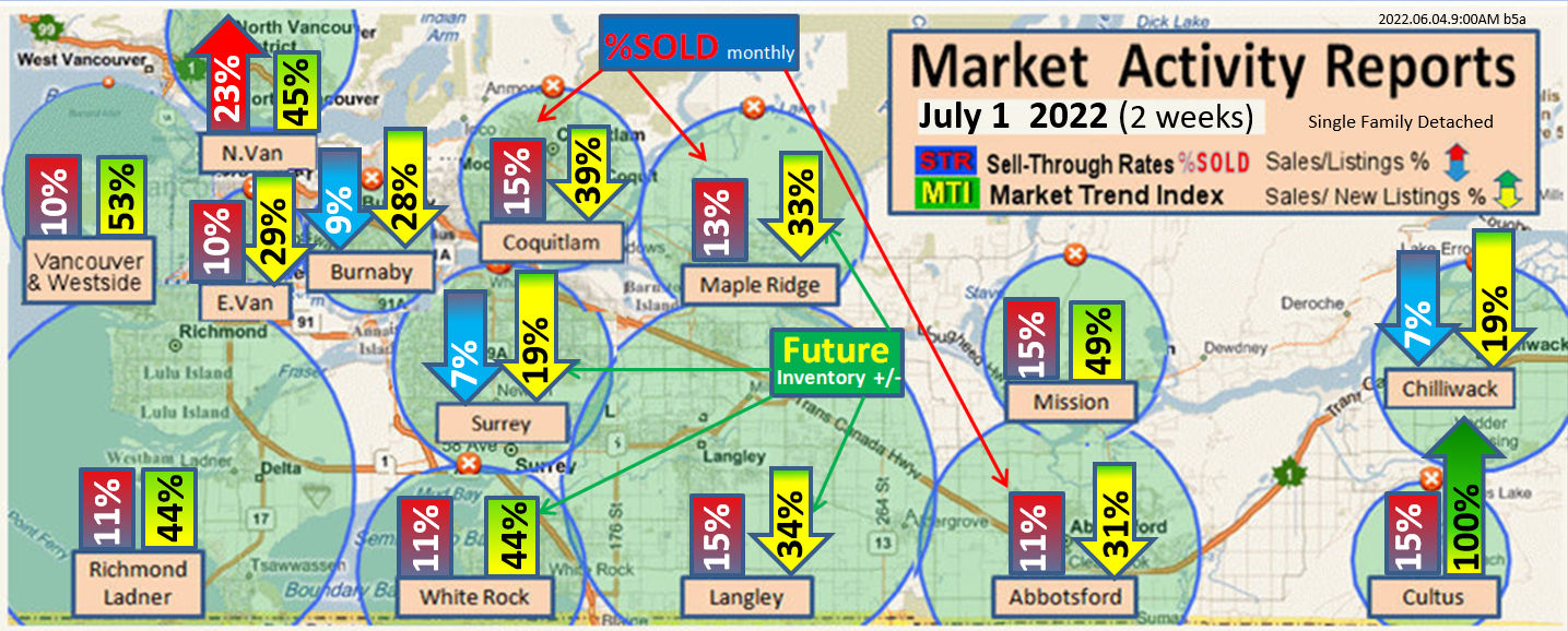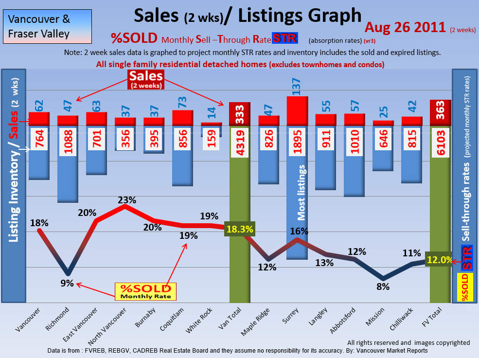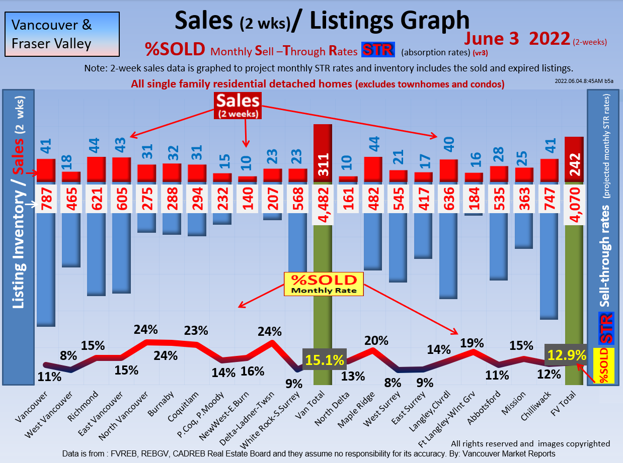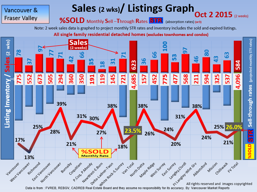 #2 The area east of it, namely of the Fraser Valley Real Estate Board: Surrey to Chilliwack. Here we see the first area has a 30% monthly listing sell-through and the area east of it is currently at a 9% monthly sell-through to read more ..click here