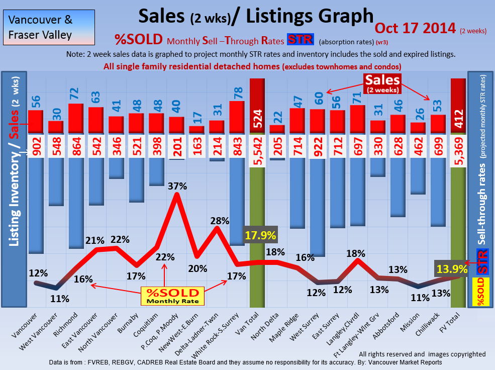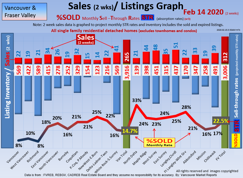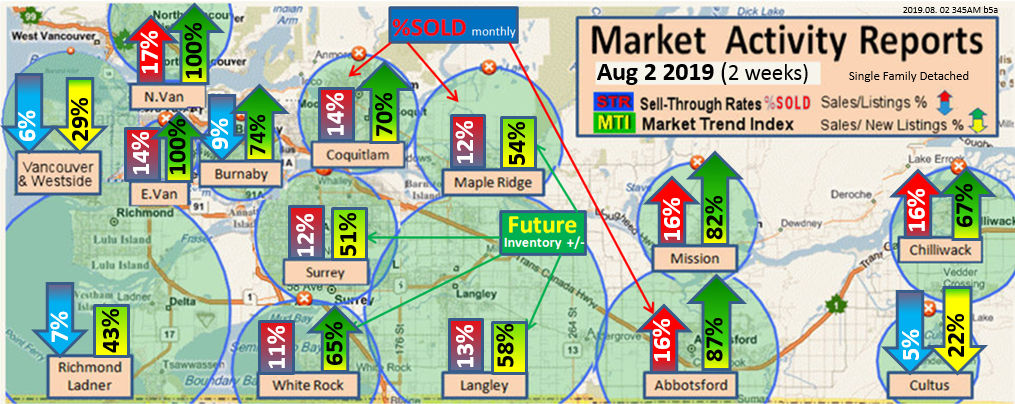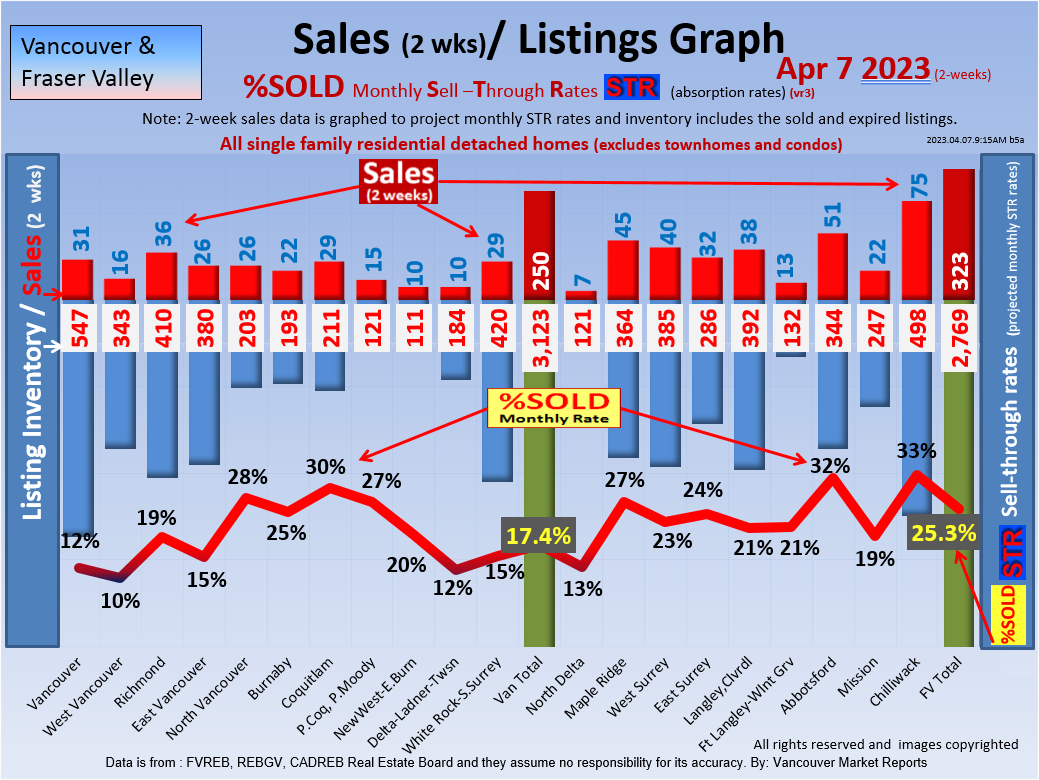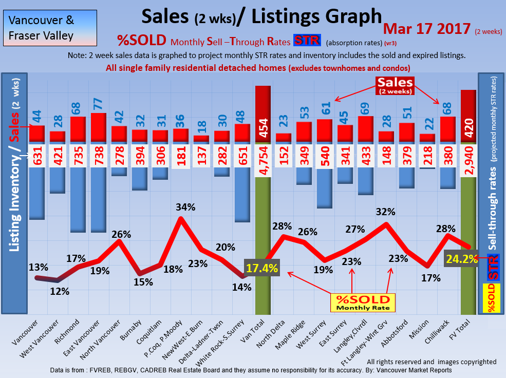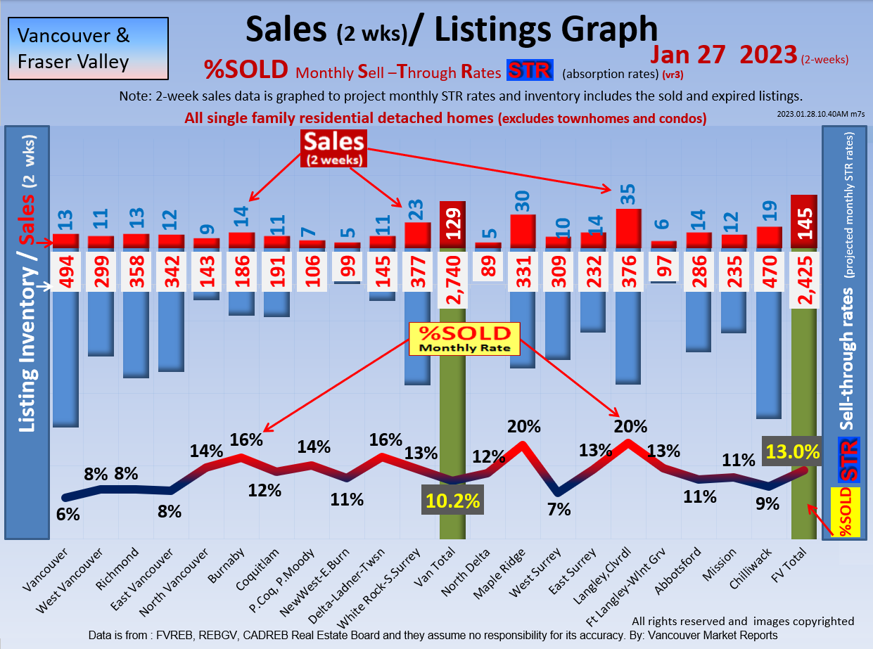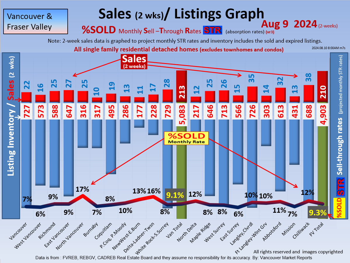 #2 The area east of it, namely of the Fraser Valley Real Estate Board: Surrey to Chilliwack. Here we see the first area has a 30% monthly listing sell-through and the area east of it is currently at a 9% monthly sell-through to read more ..click here