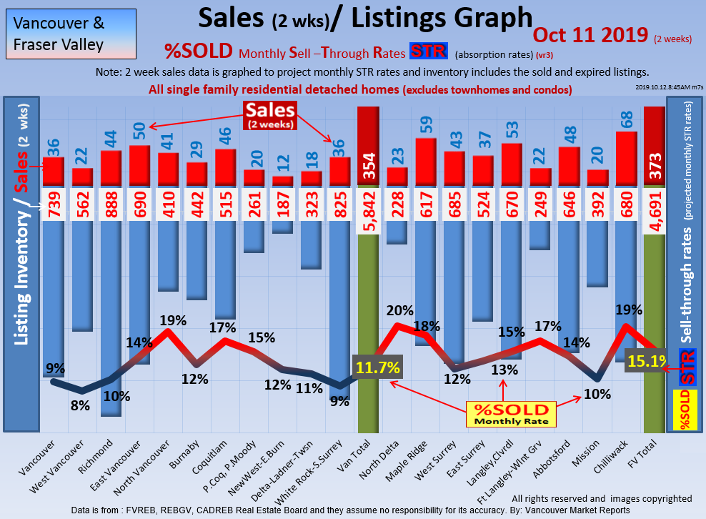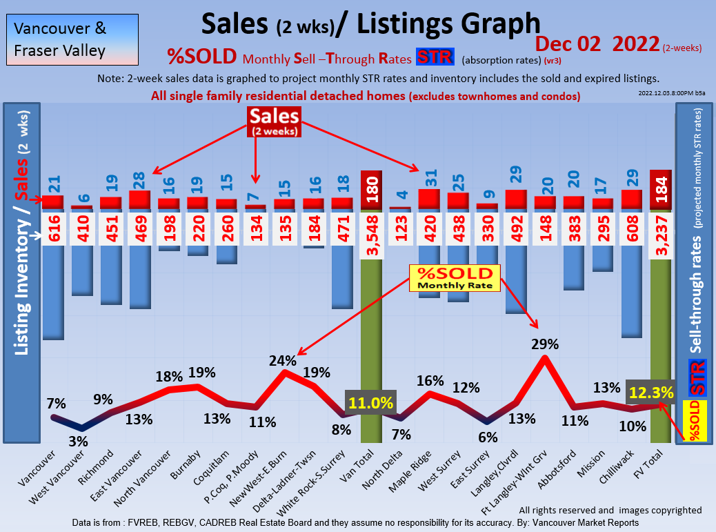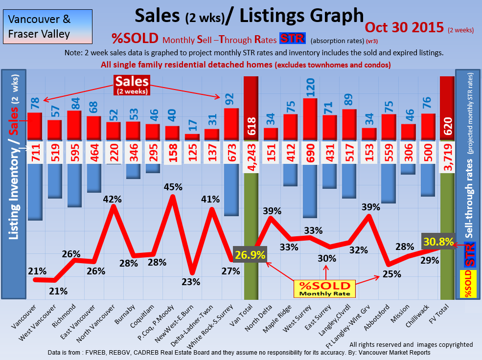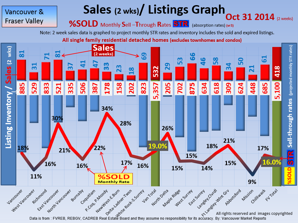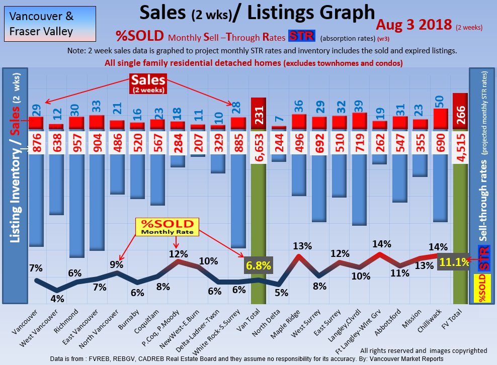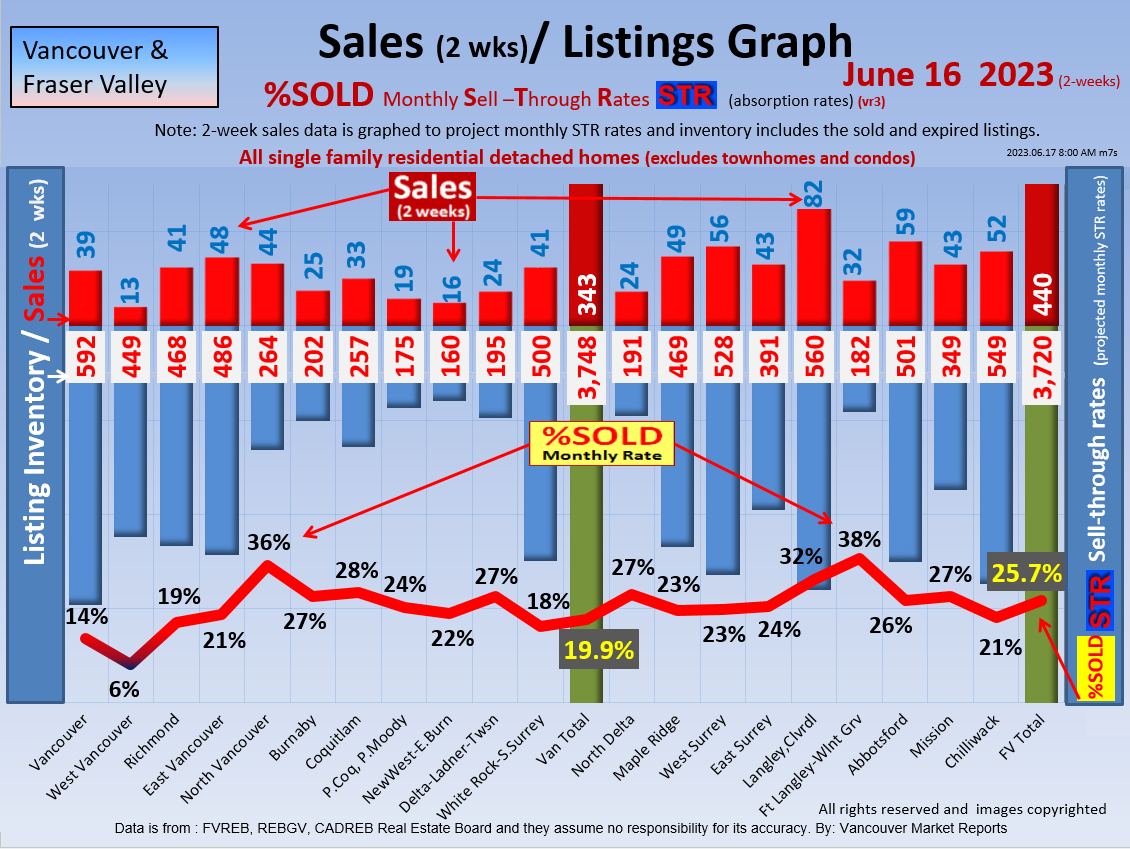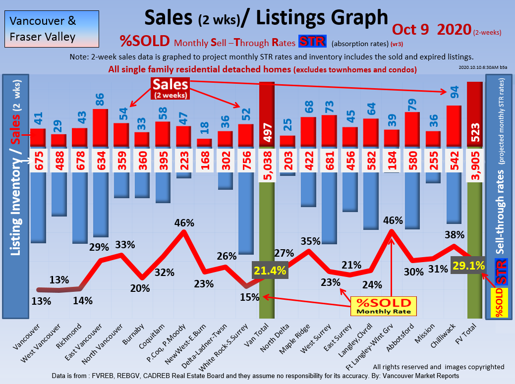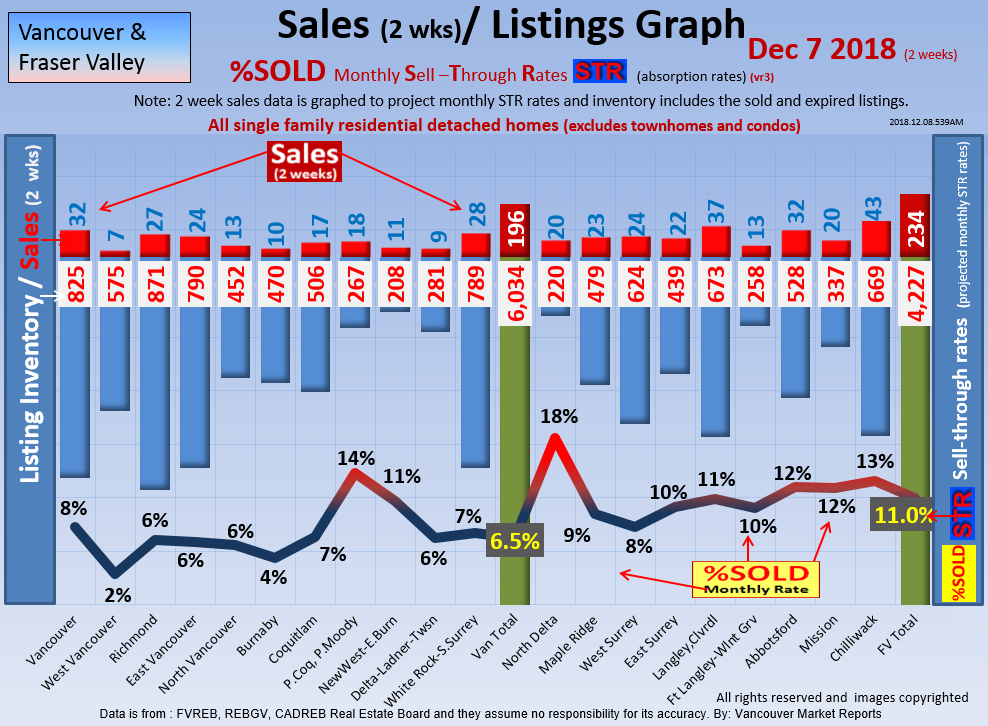 #2 The area east of it, namely of the Fraser Valley Real Estate Board: Surrey to Chilliwack. Here we see the first area has a 30% monthly listing sell-through and the area east of it is currently at a 9% monthly sell-through to read more ..click here