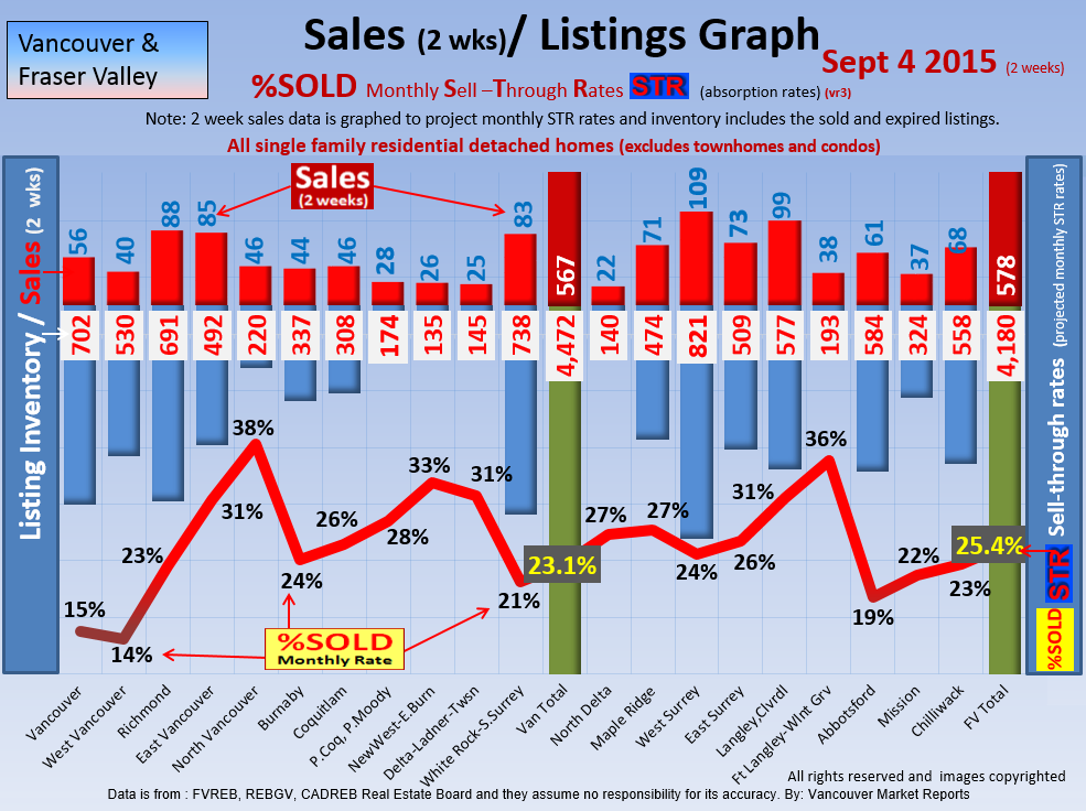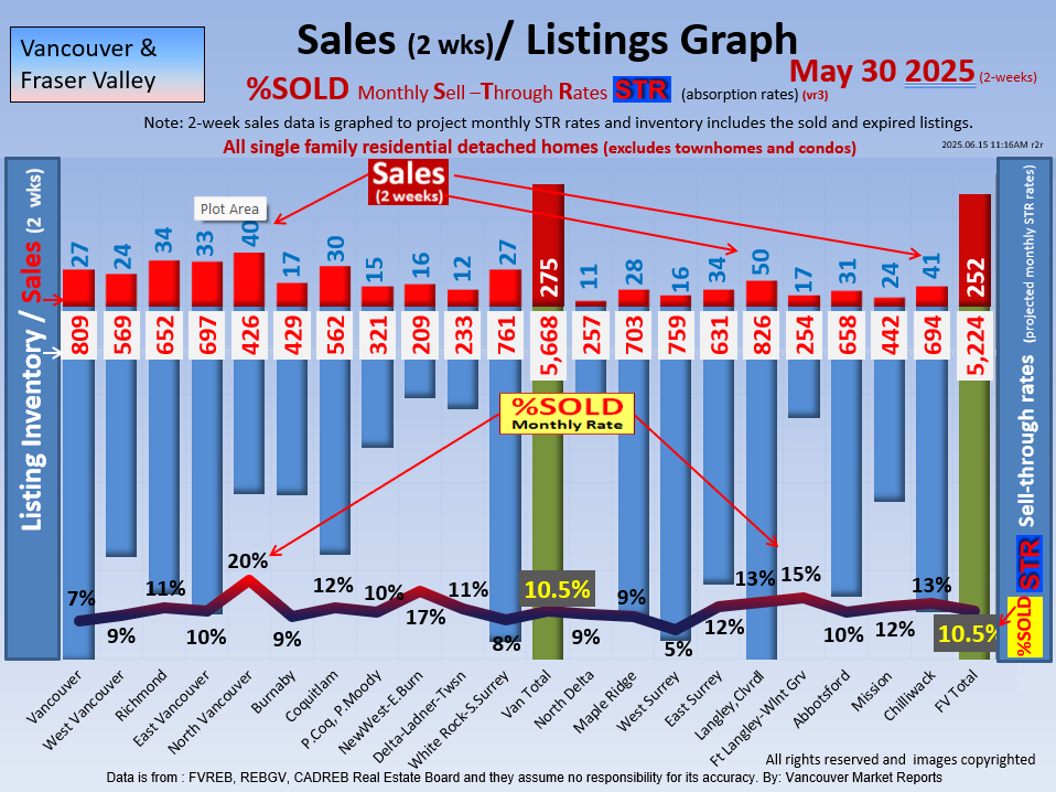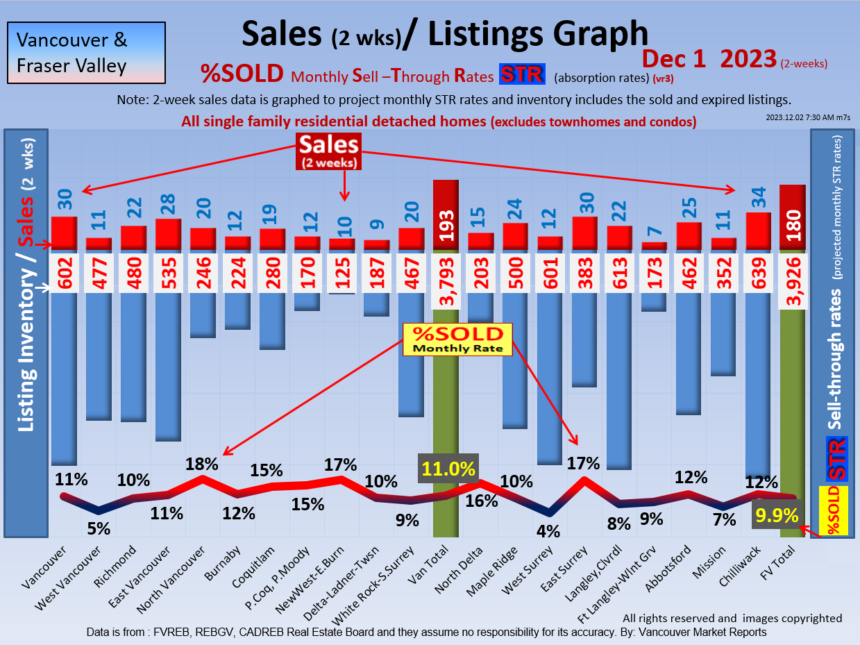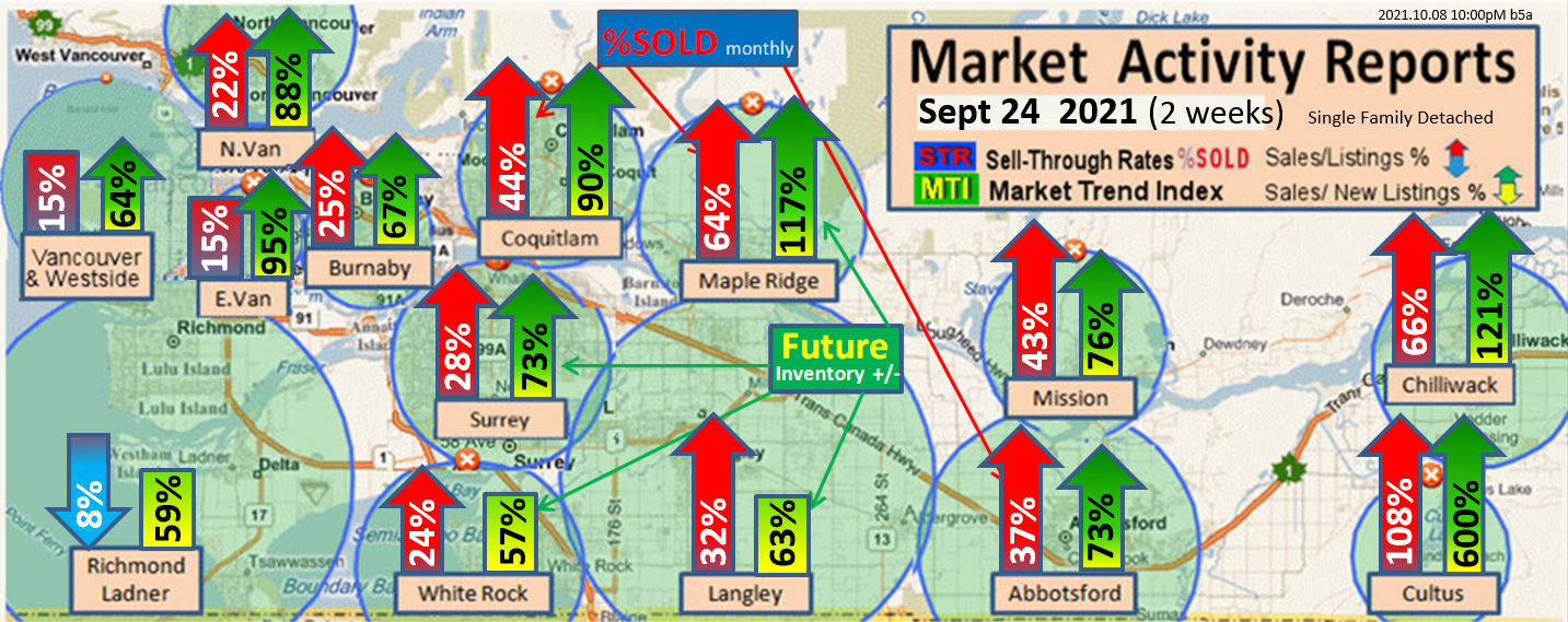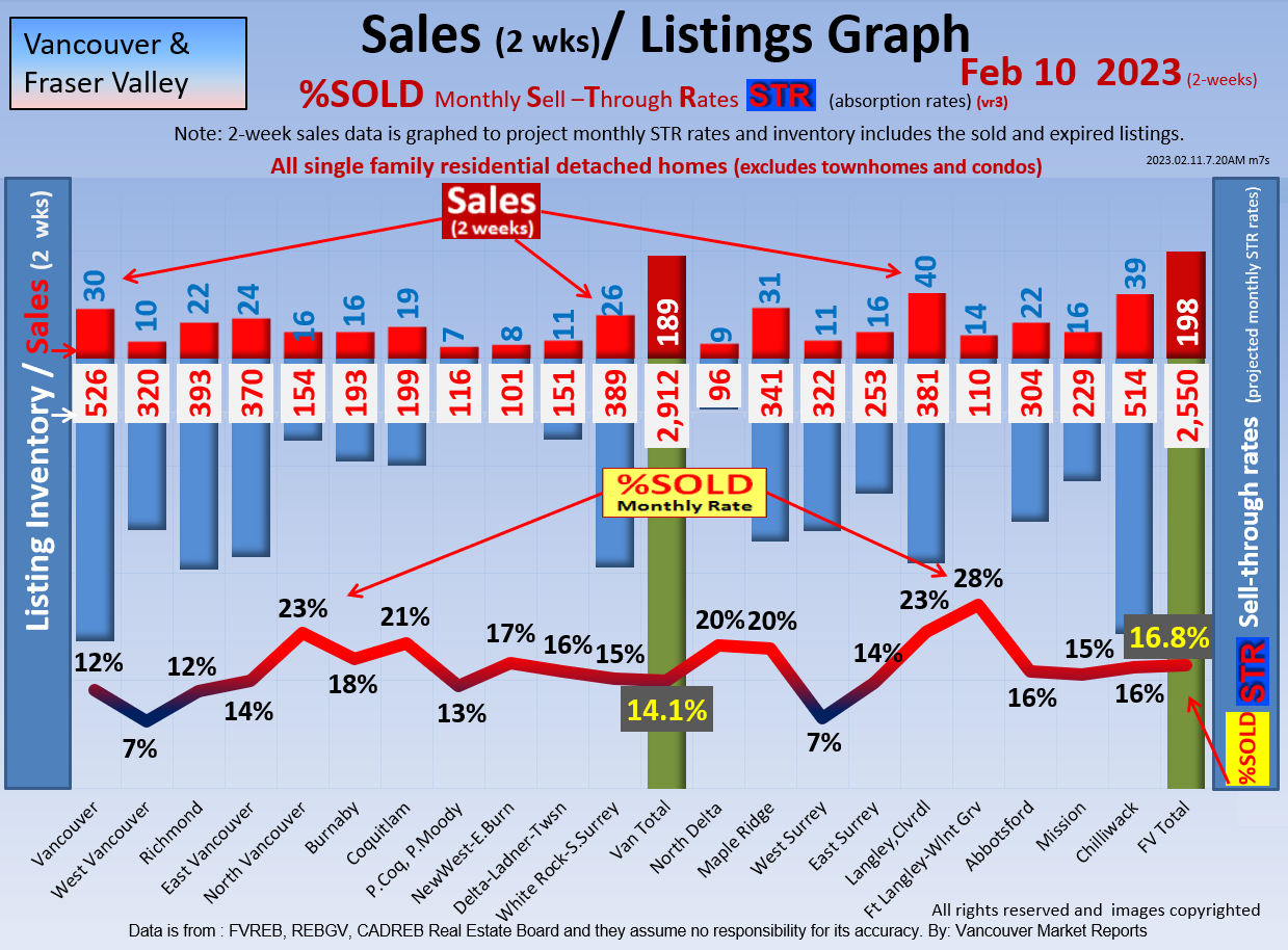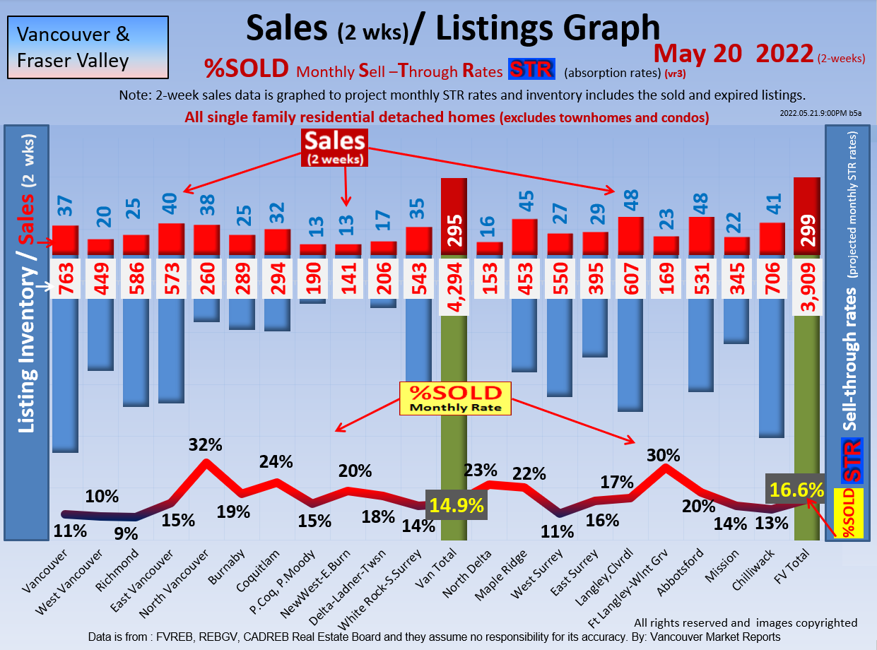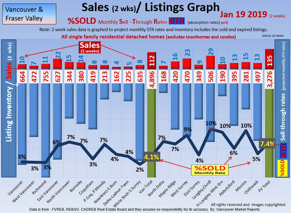 #2 The area east of it, namely of the Fraser Valley Real Estate Board: Surrey to Chilliwack. Here we see the first area has a 30% monthly listing sell-through and the area east of it is currently at a 9% monthly sell-through to read more ..click here
