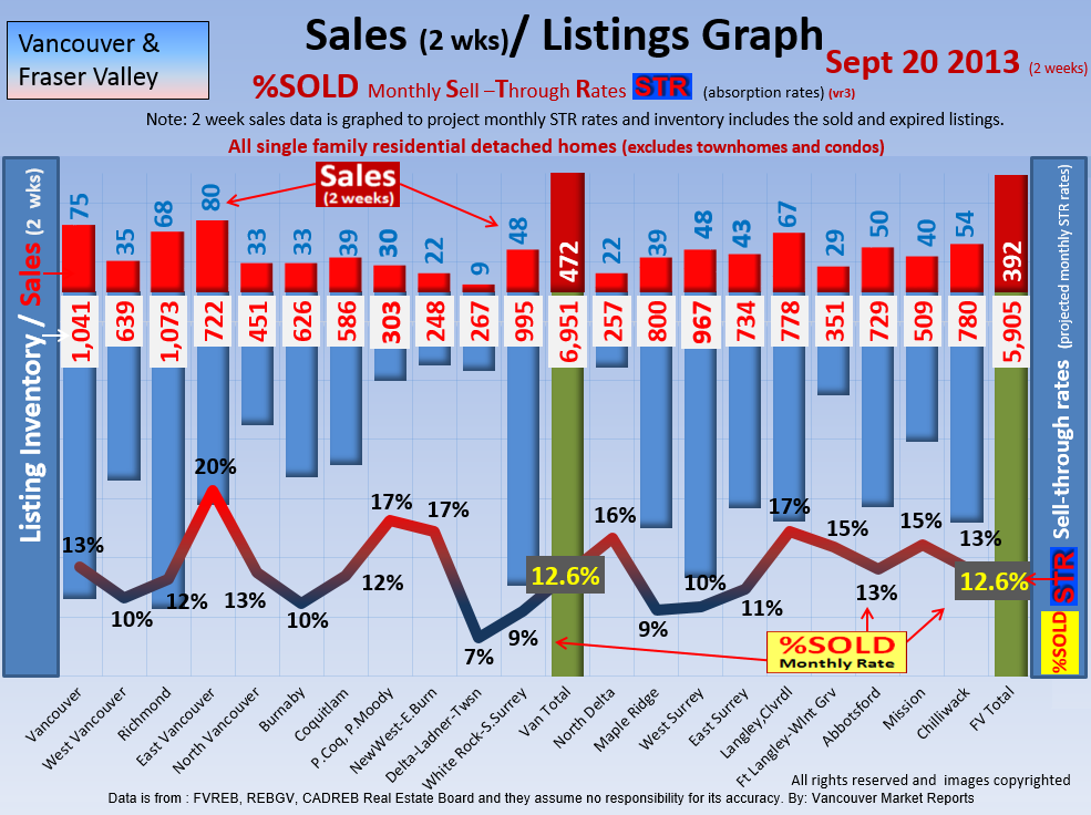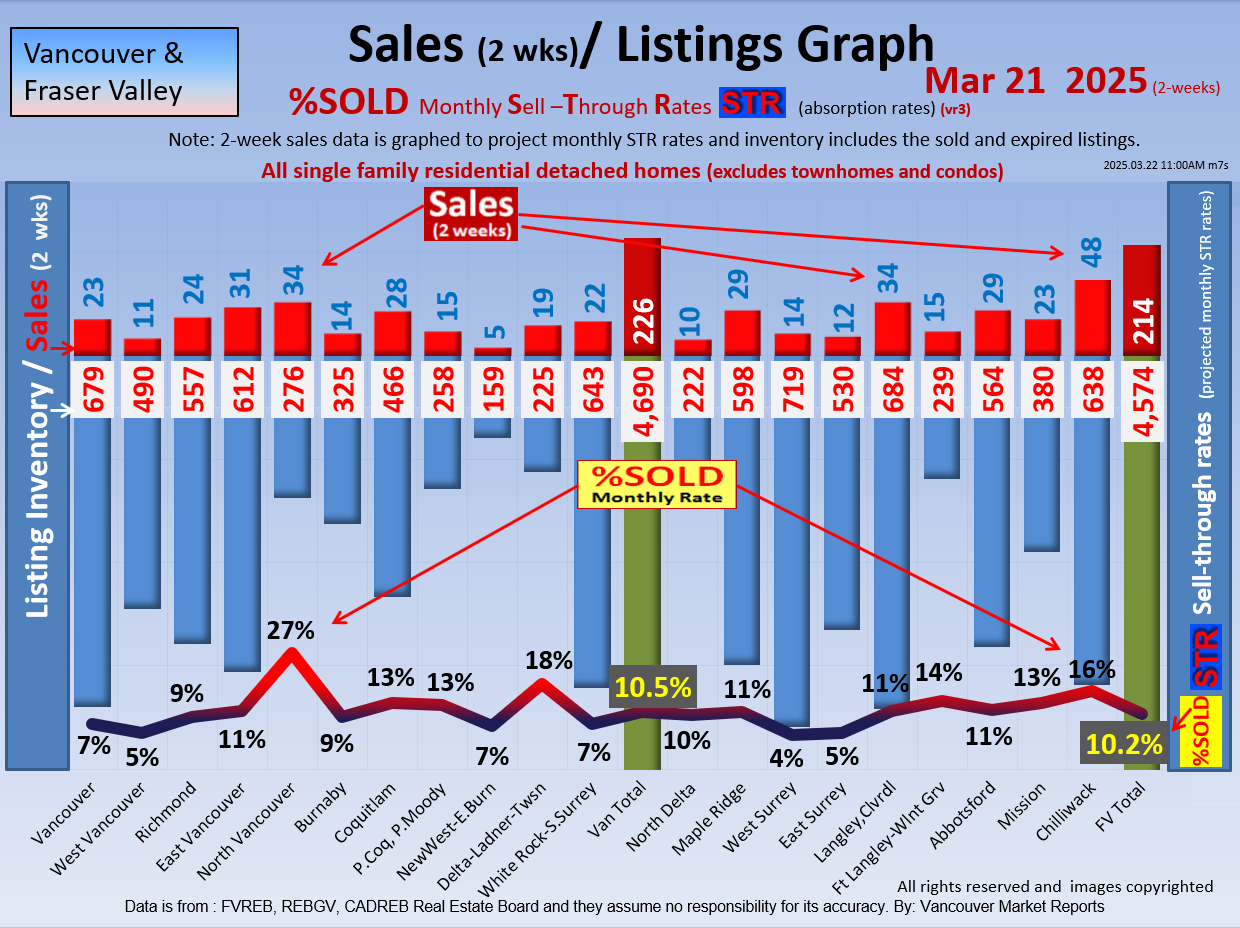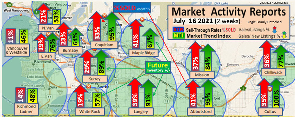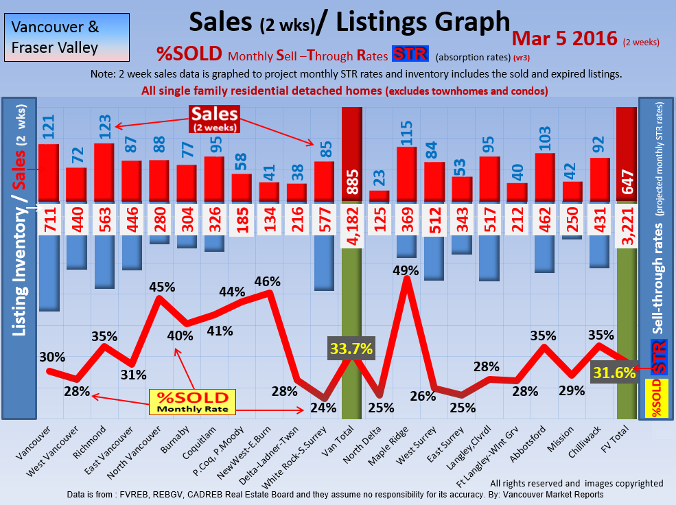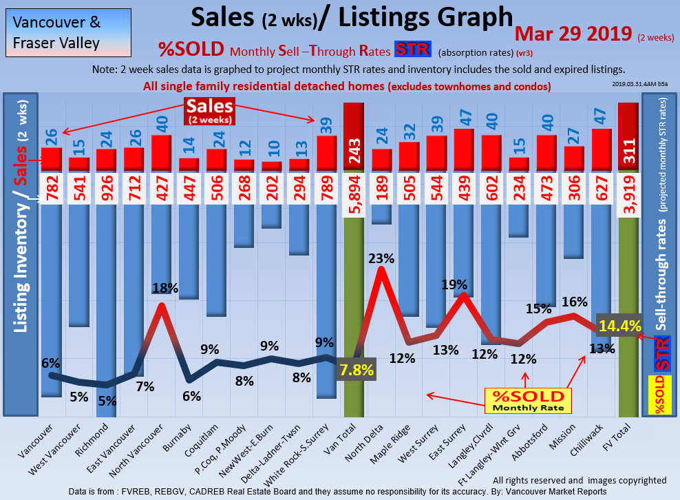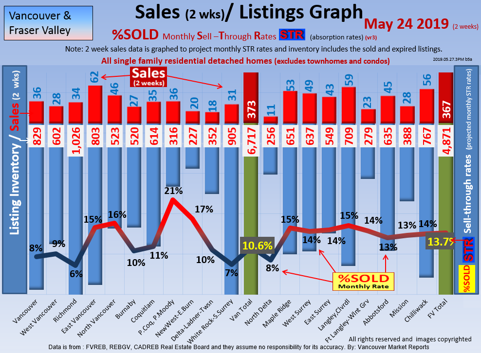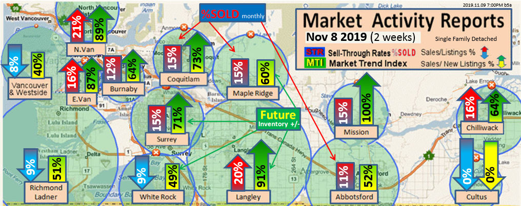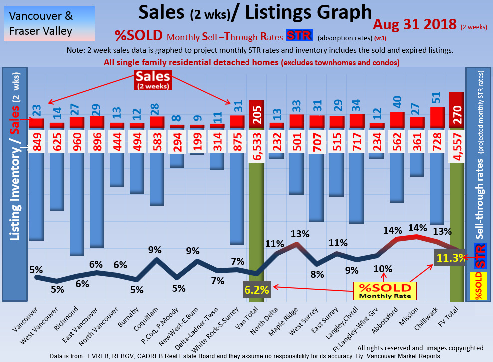 #2 The area east of it, namely of the Fraser Valley Real Estate Board: Surrey to Chilliwack. Here we see the first area has a 30% monthly listing sell-through and the area east of it is currently at a 9% monthly sell-through to read more ..click here