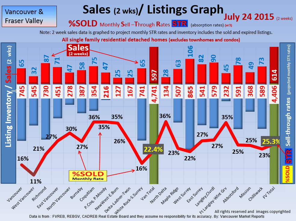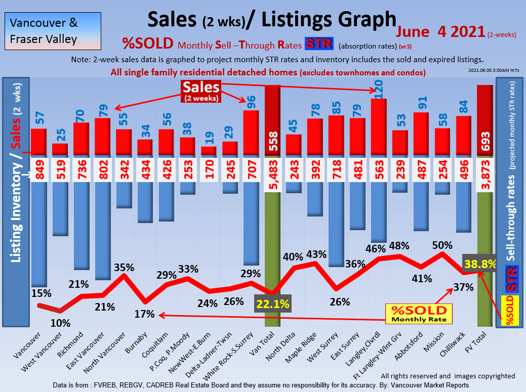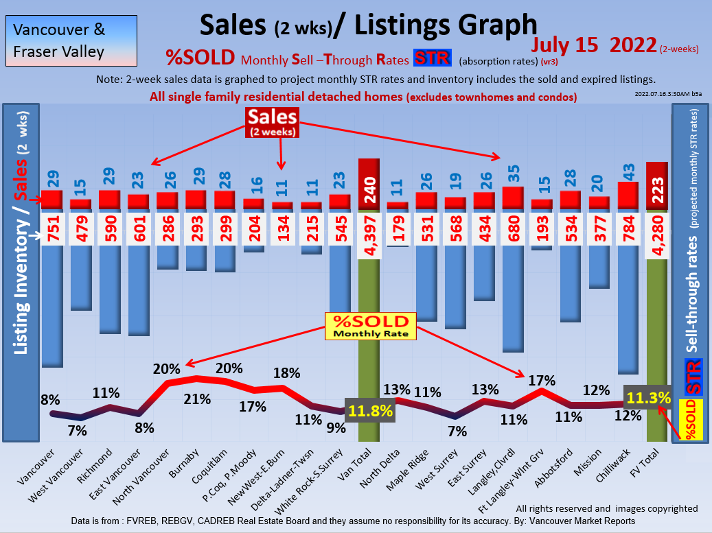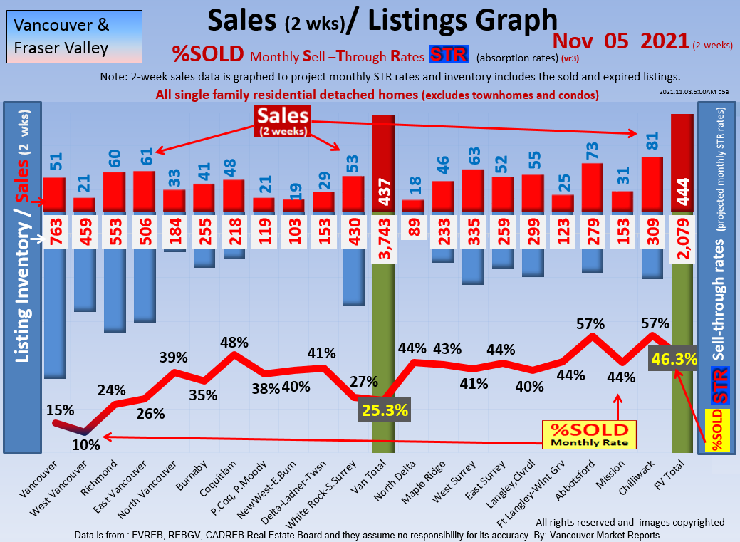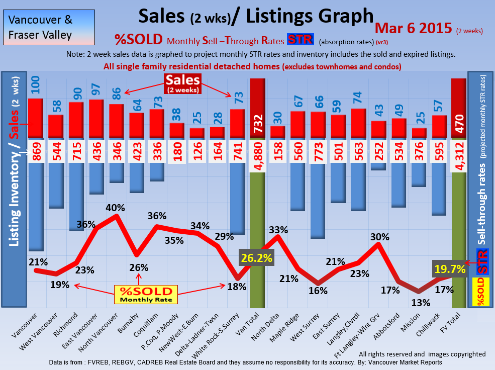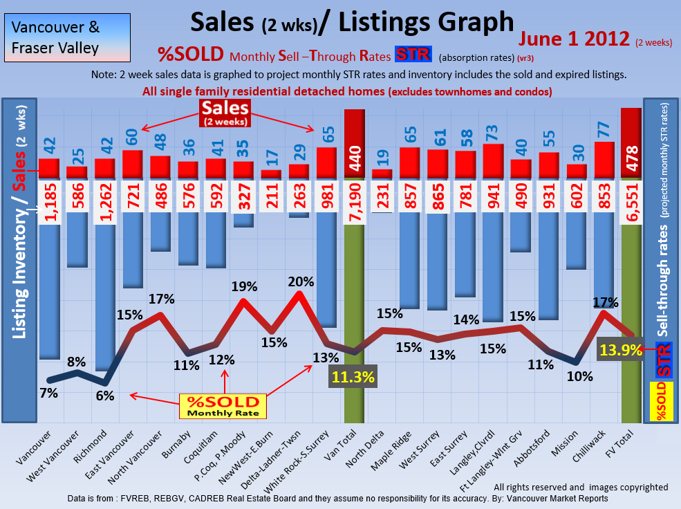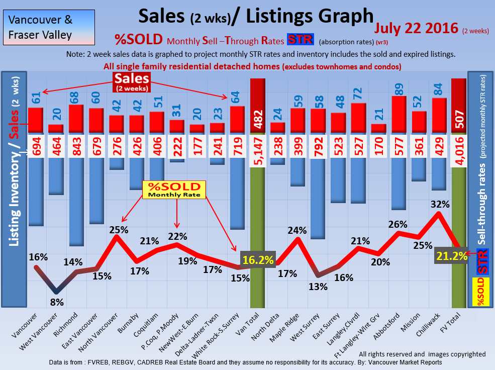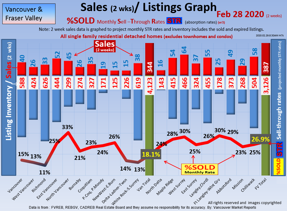 #2 The area east of it, namely of the Fraser Valley Real Estate Board: Surrey to Chilliwack. Here we see the first area has a 30% monthly listing sell-through and the area east of it is currently at a 9% monthly sell-through to read more ..click here