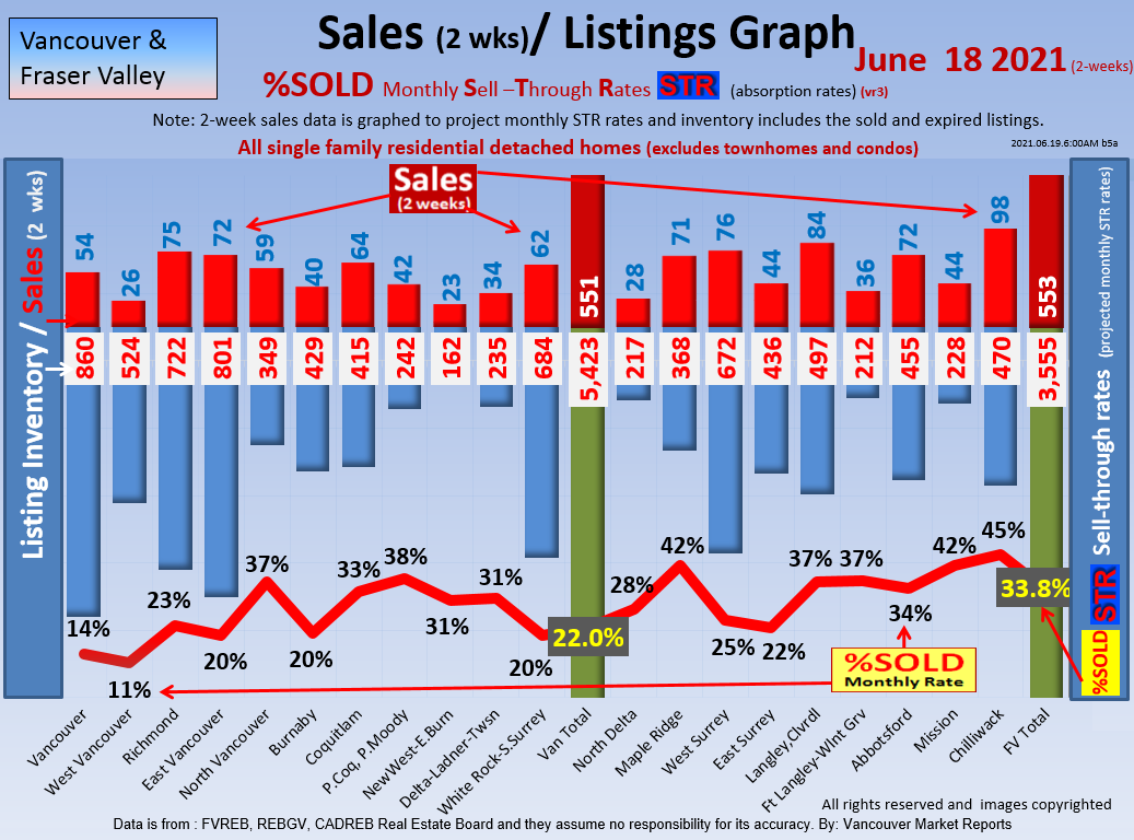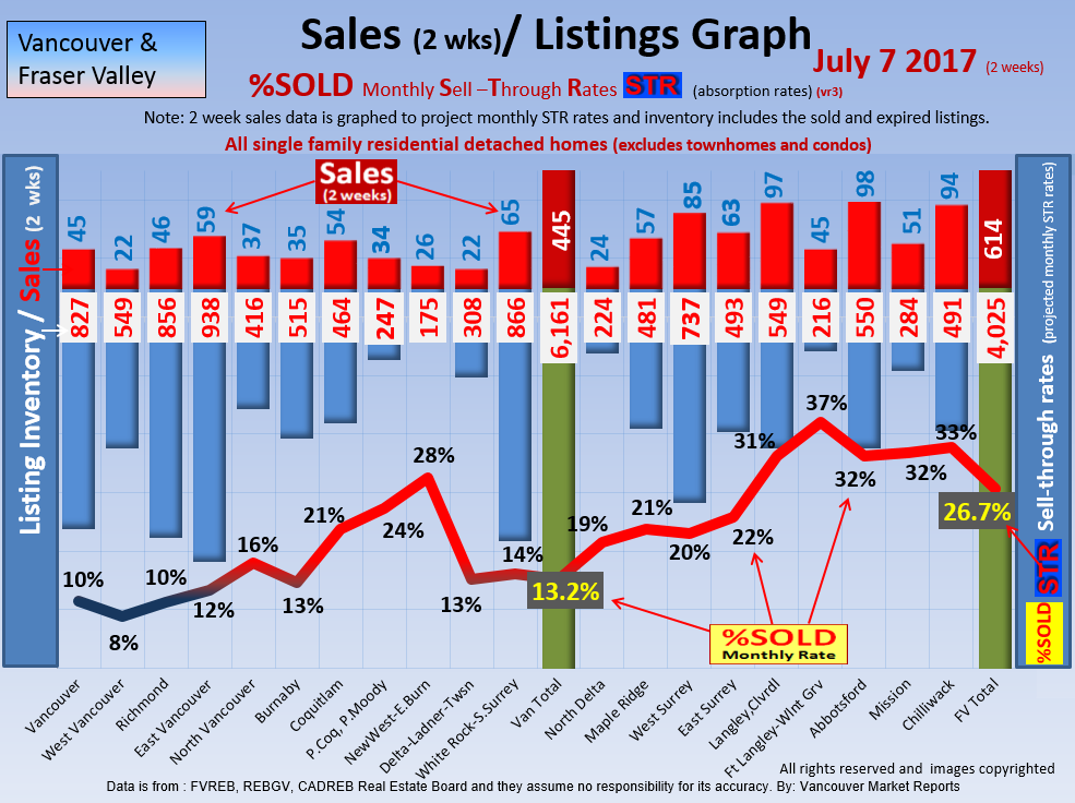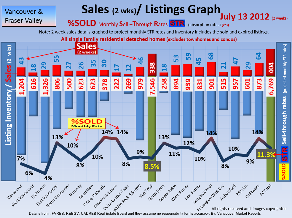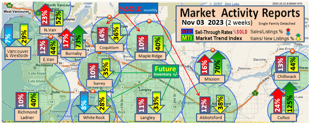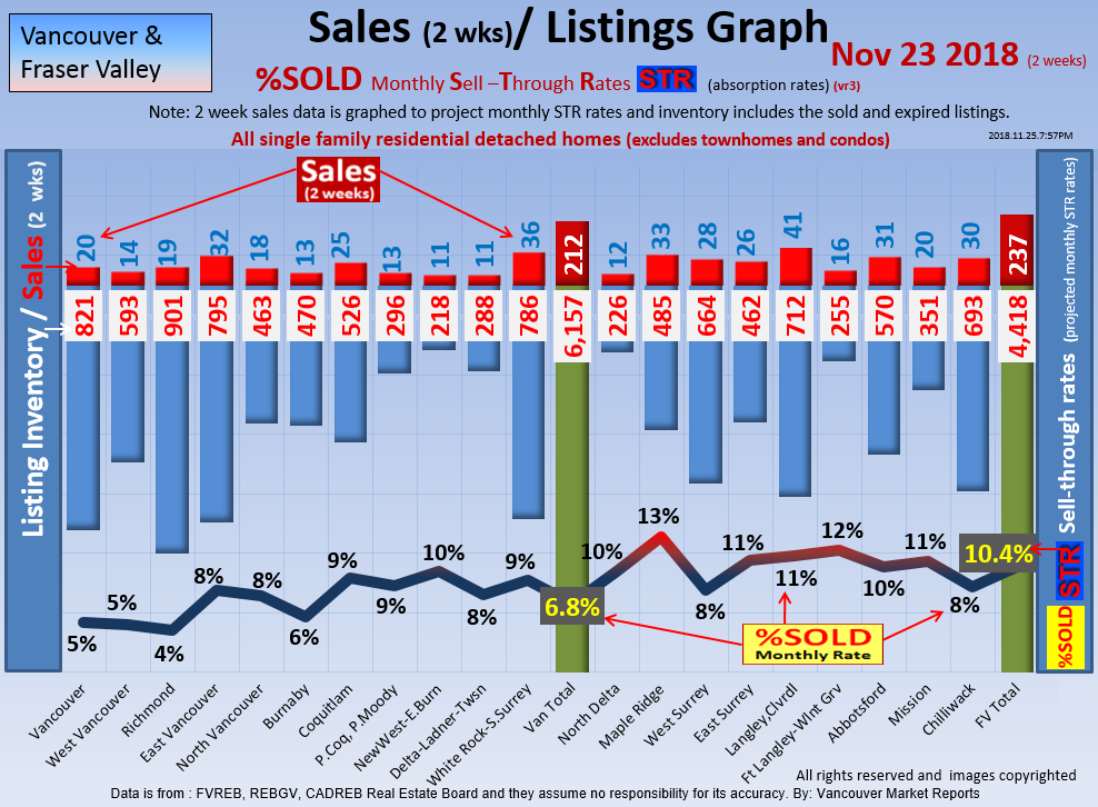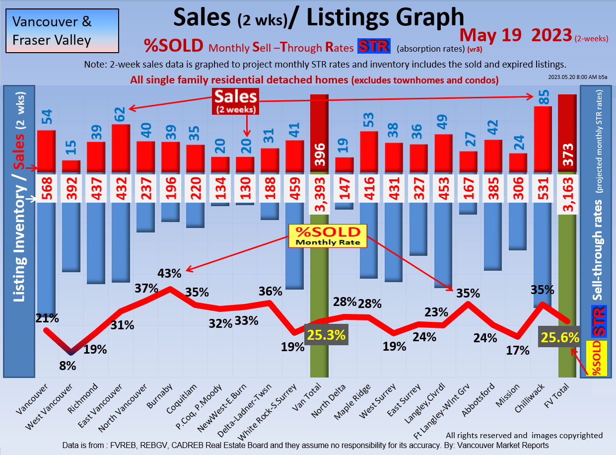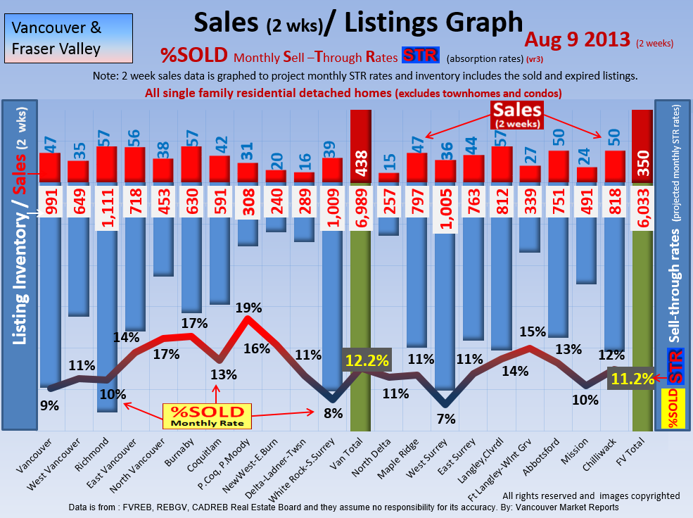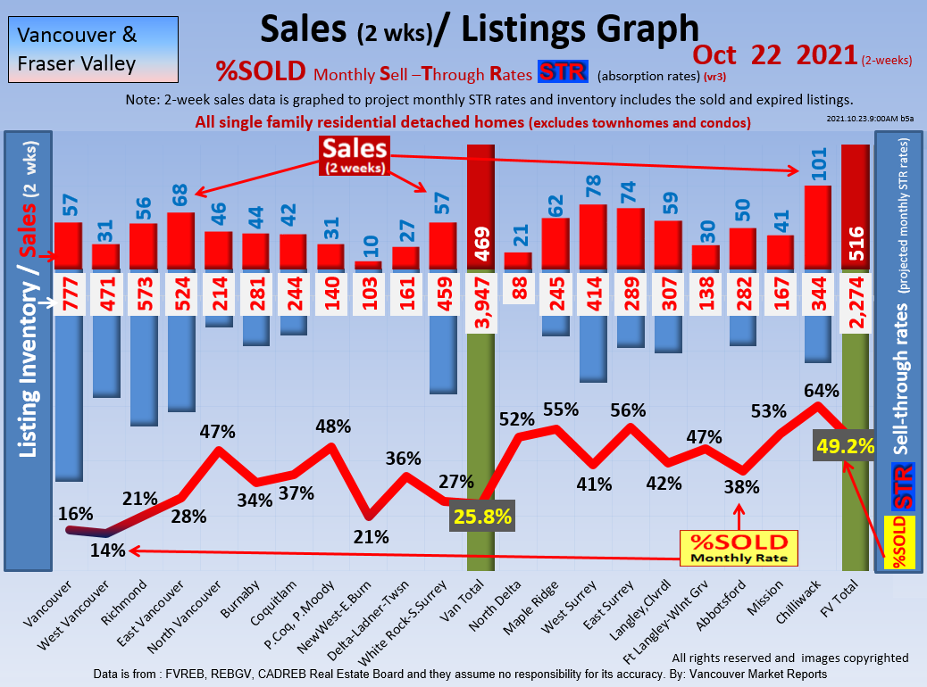 #2 The area east of it, namely of the Fraser Valley Real Estate Board: Surrey to Chilliwack. Here we see the first area has a 30% monthly listing sell-through and the area east of it is currently at a 9% monthly sell-through to read more ..click here