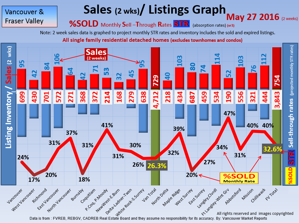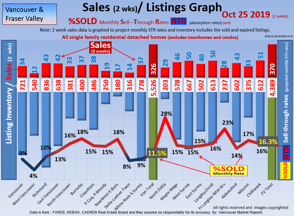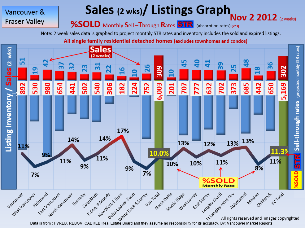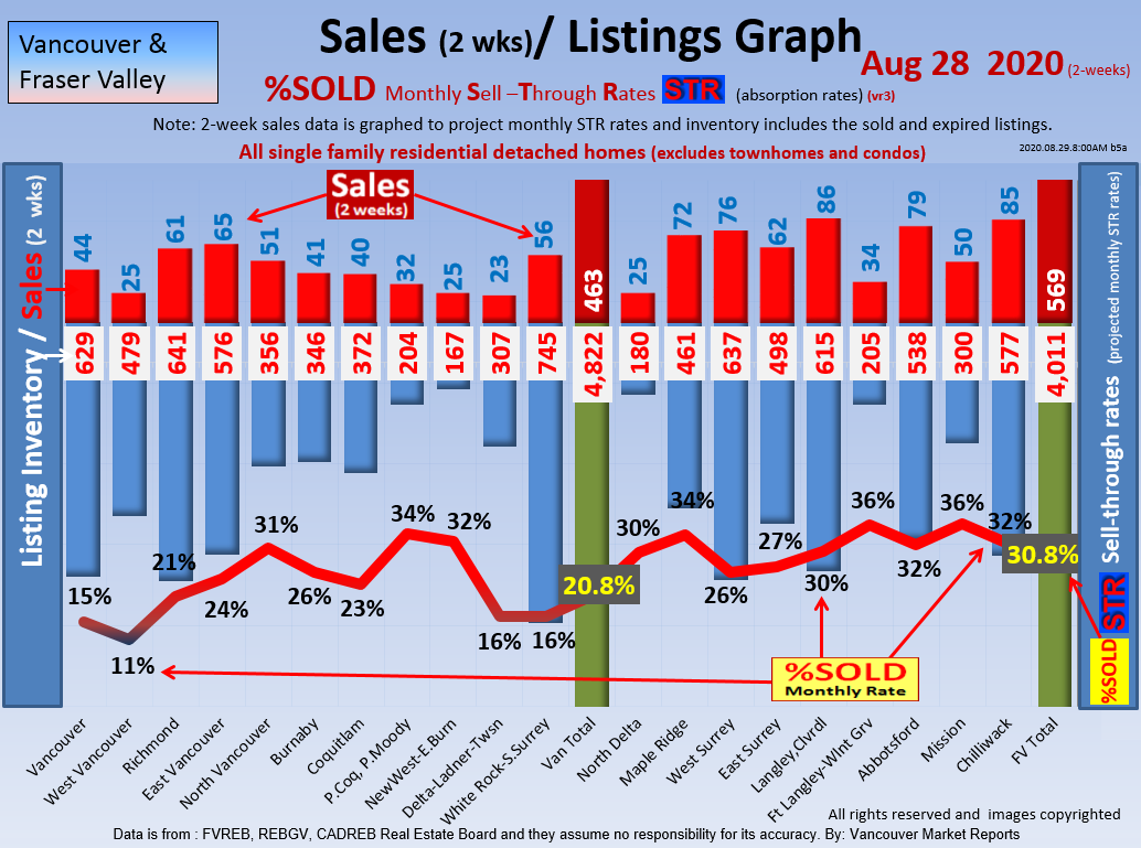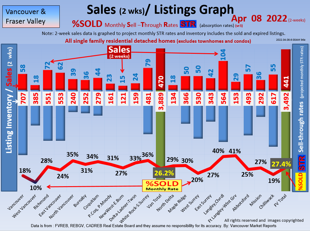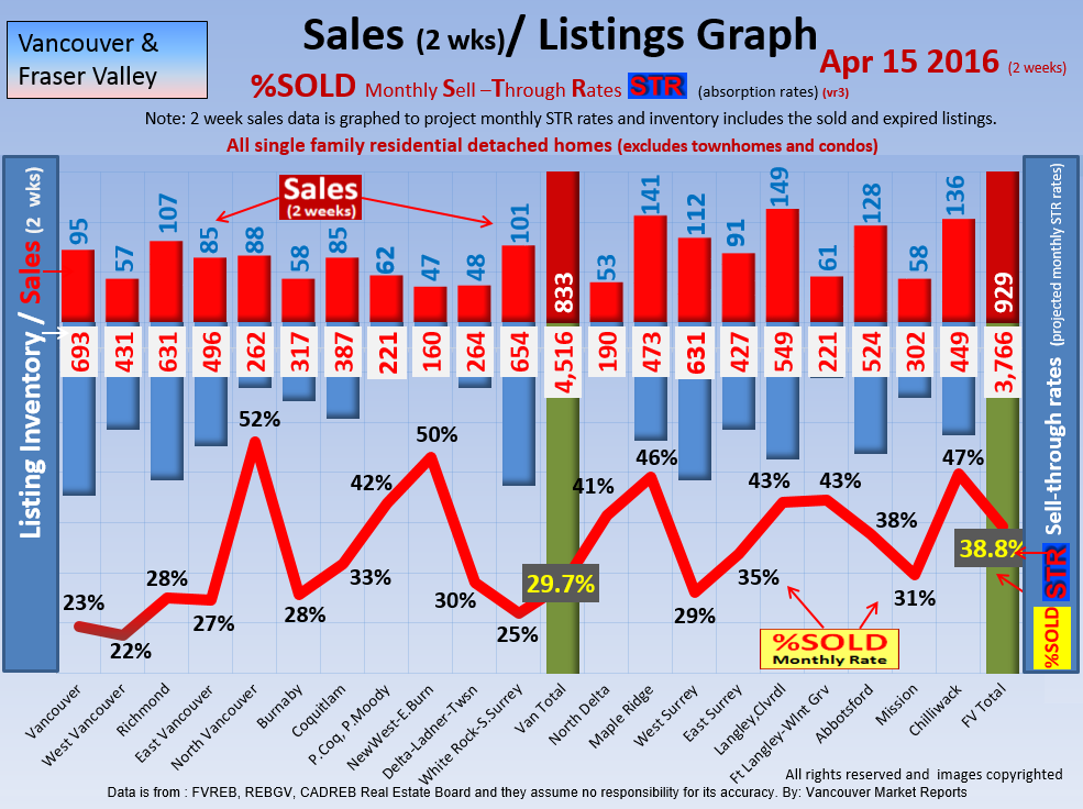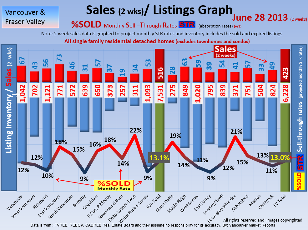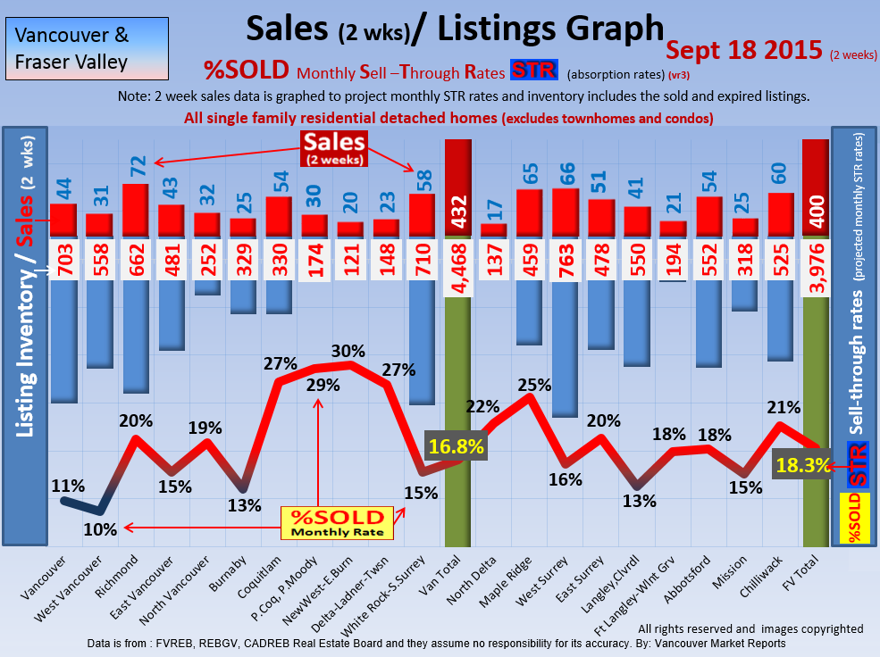 #2 The area east of it, namely of the Fraser Valley Real Estate Board: Surrey to Chilliwack. Here we see the first area has a 30% monthly listing sell-through and the area east of it is currently at a 9% monthly sell-through to read more ..click here
