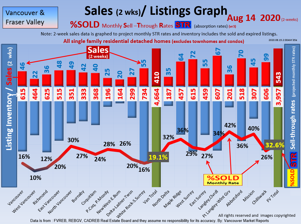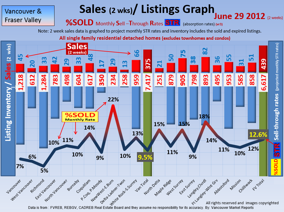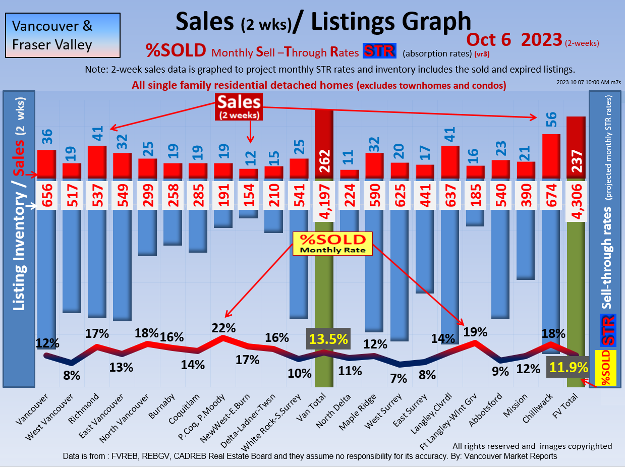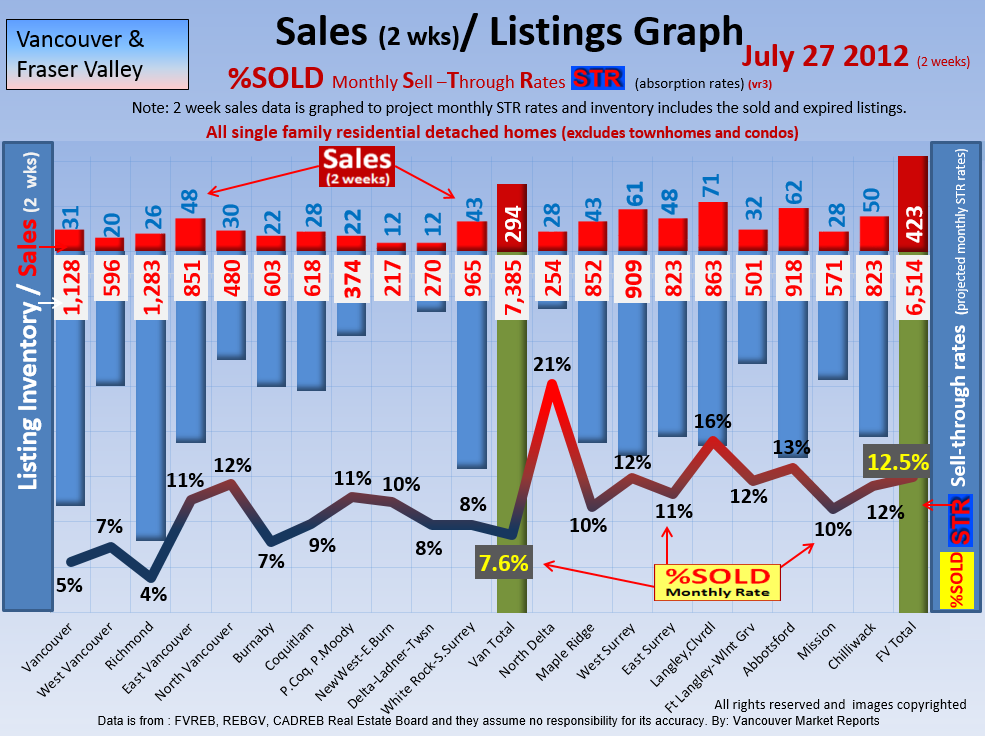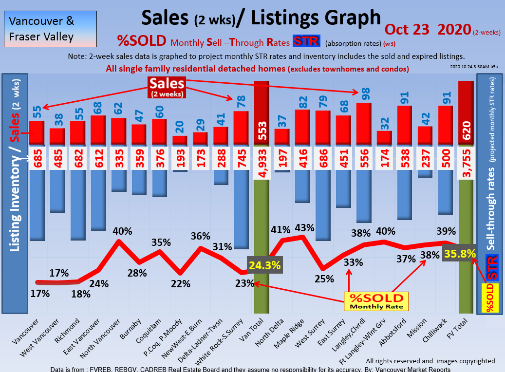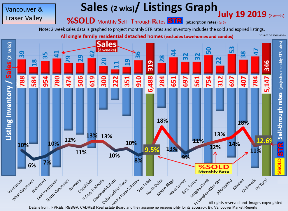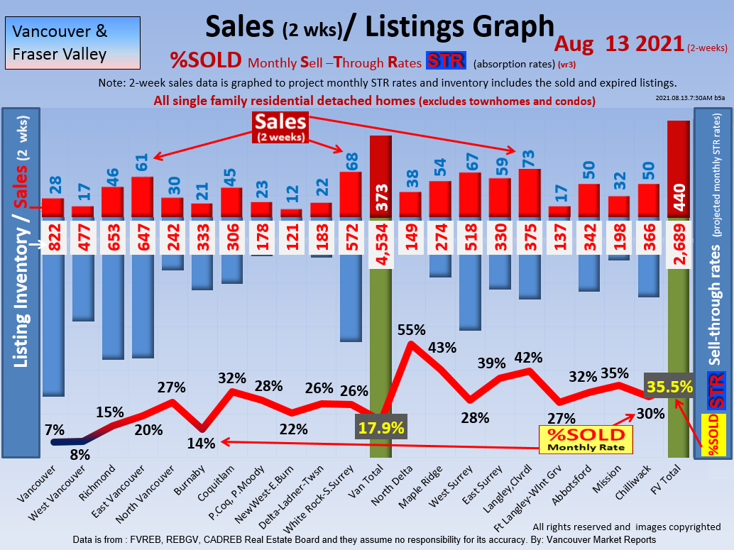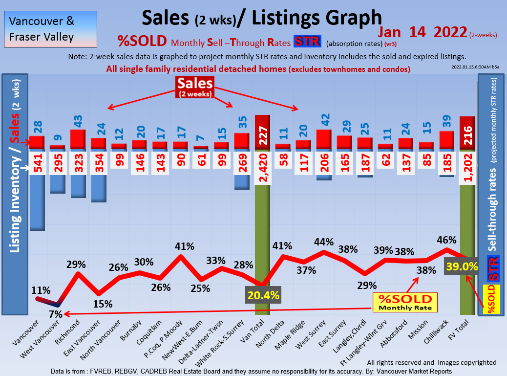 #2 The area east of it, namely of the Fraser Valley Real Estate Board: Surrey to Chilliwack. Here we see the first area has a 30% monthly listing sell-through and the area east of it is currently at a 9% monthly sell-through to read more ..click here