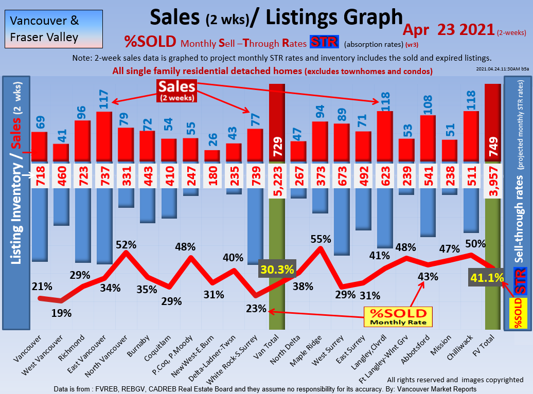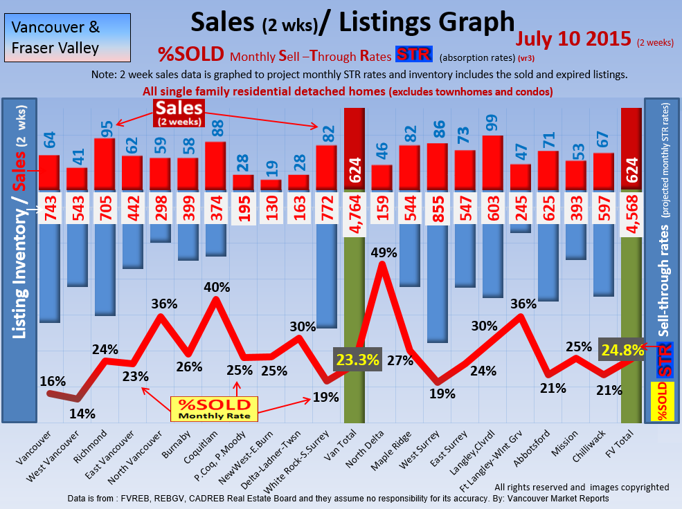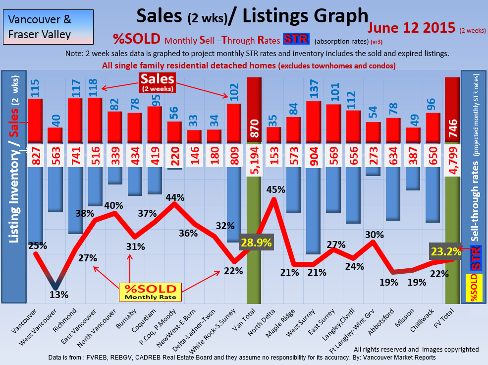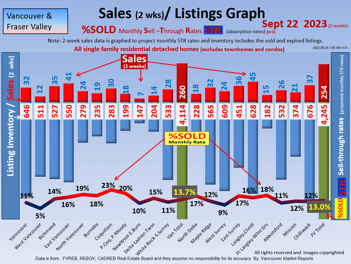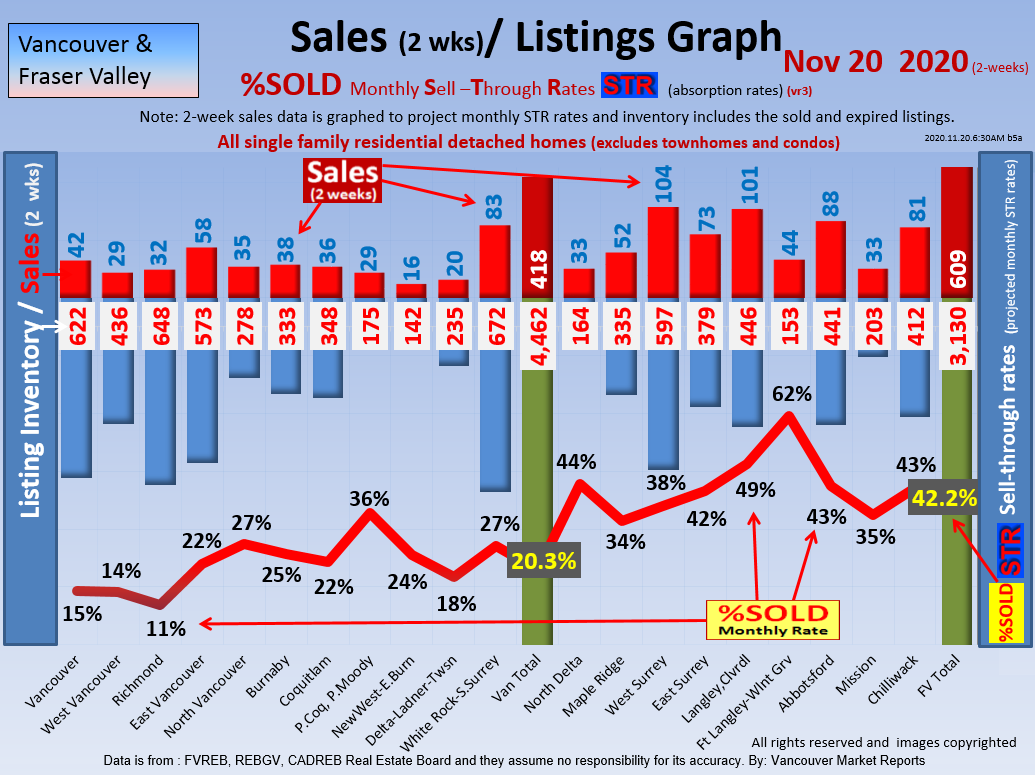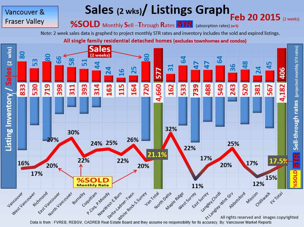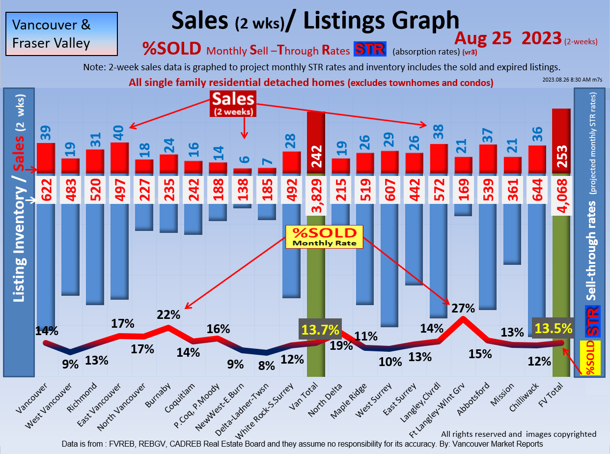 #2 The area east of it, namely of the Fraser Valley Real Estate Board: Surrey to Chilliwack. Here we see the first area has a 30% monthly listing sell-through and the area east of it is currently at a 9% monthly sell-through to read more ..click here