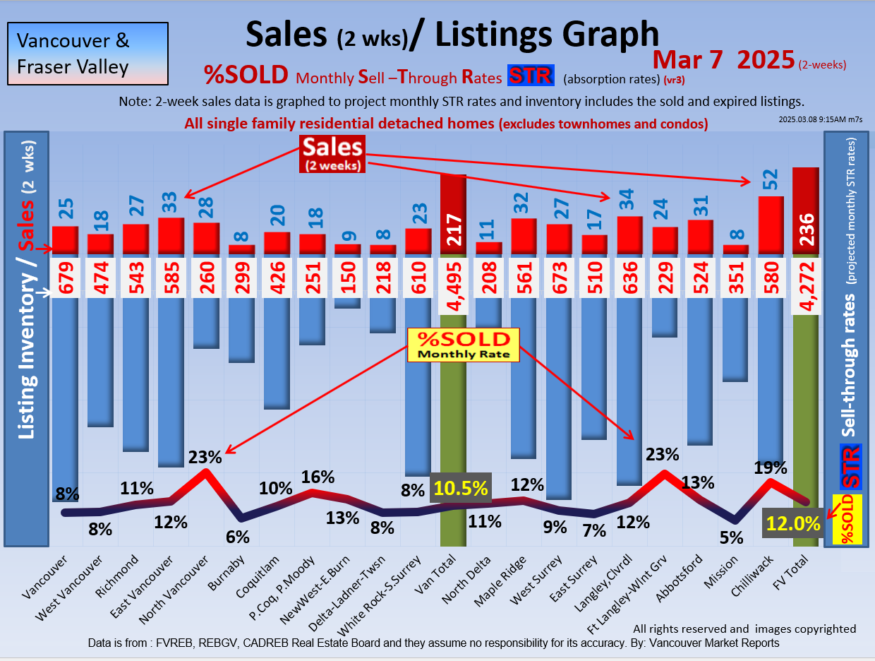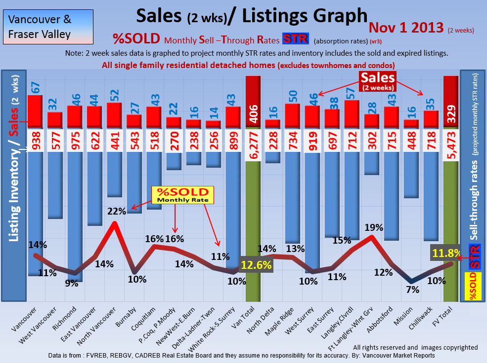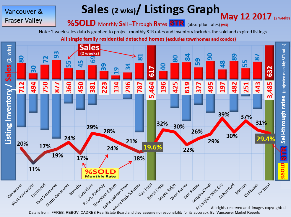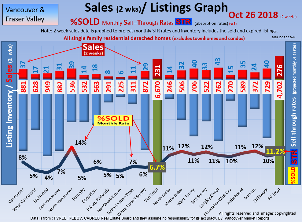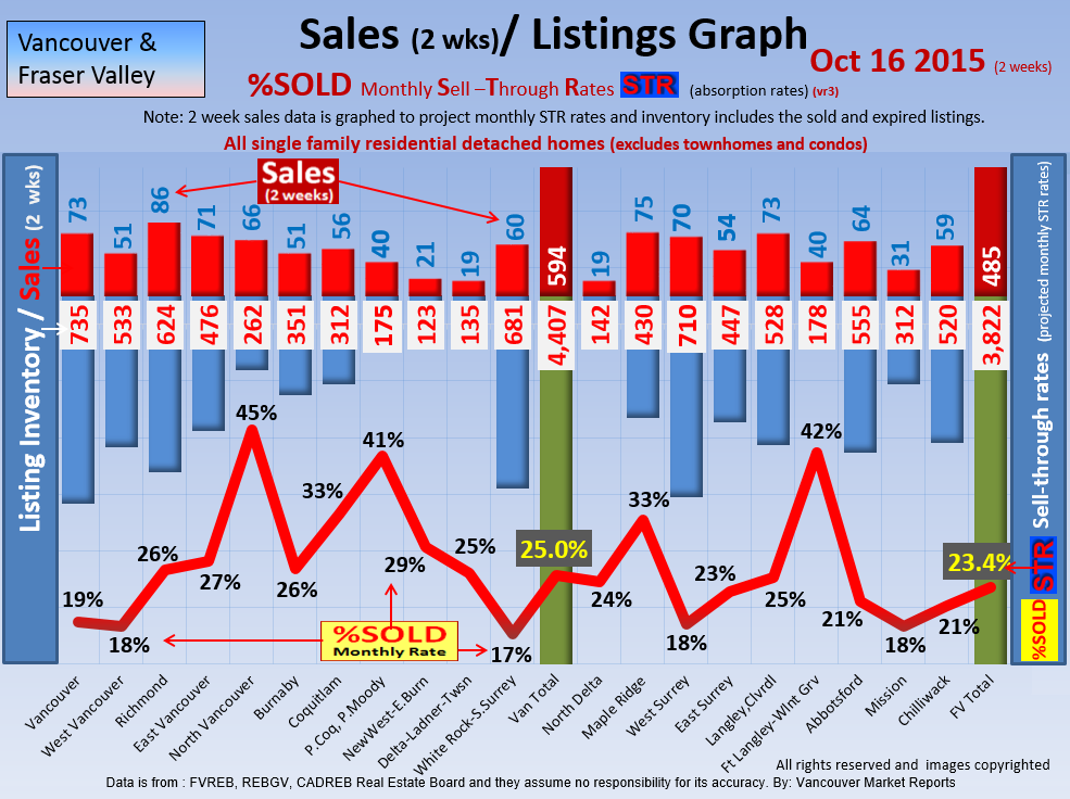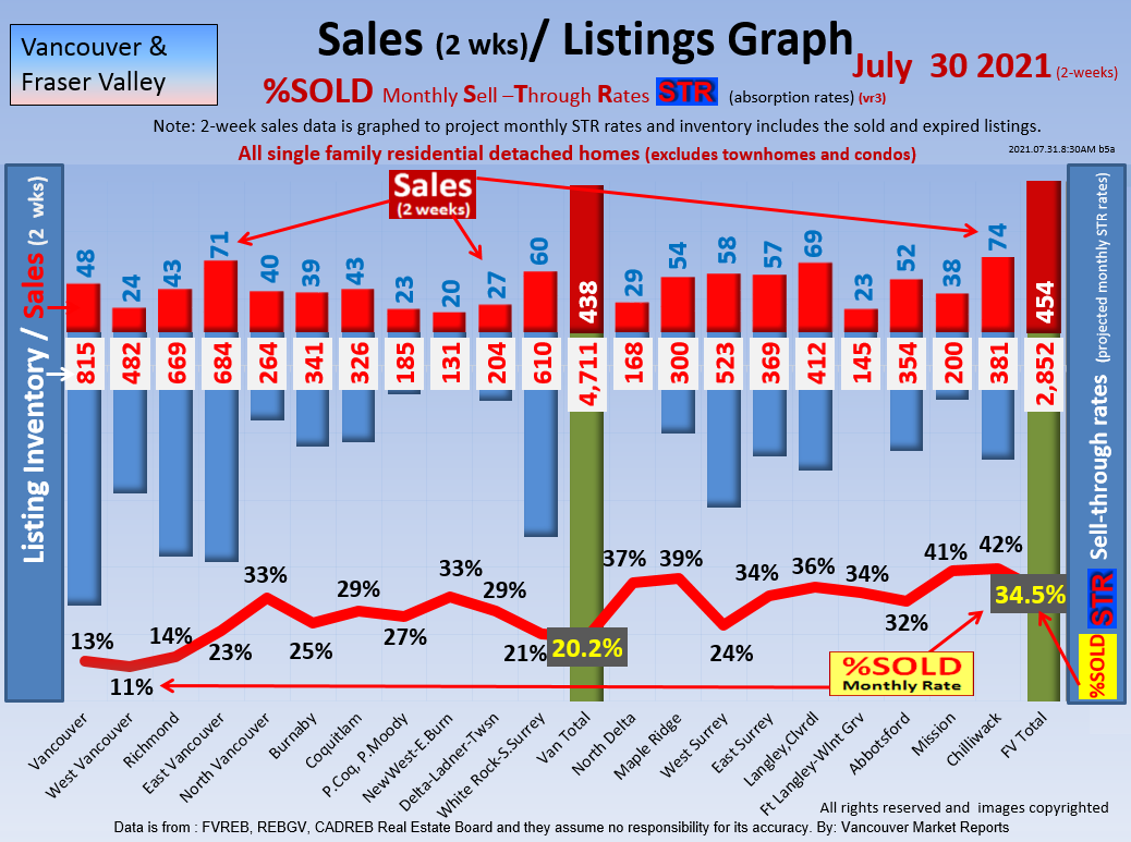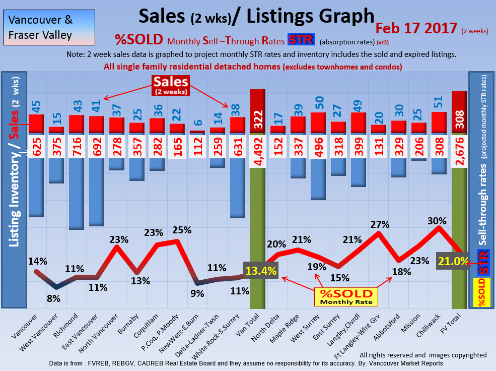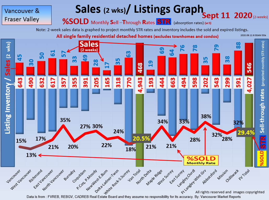 #2 The area east of it, namely of the Fraser Valley Real Estate Board: Surrey to Chilliwack. Here we see the first area has a 30% monthly listing sell-through and the area east of it is currently at a 9% monthly sell-through to read more ..click here