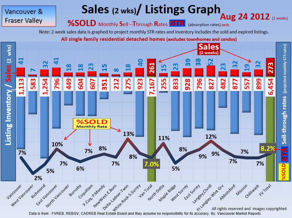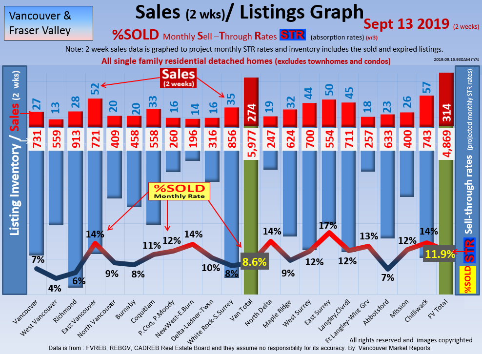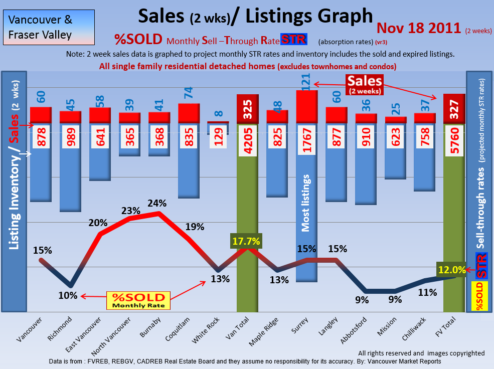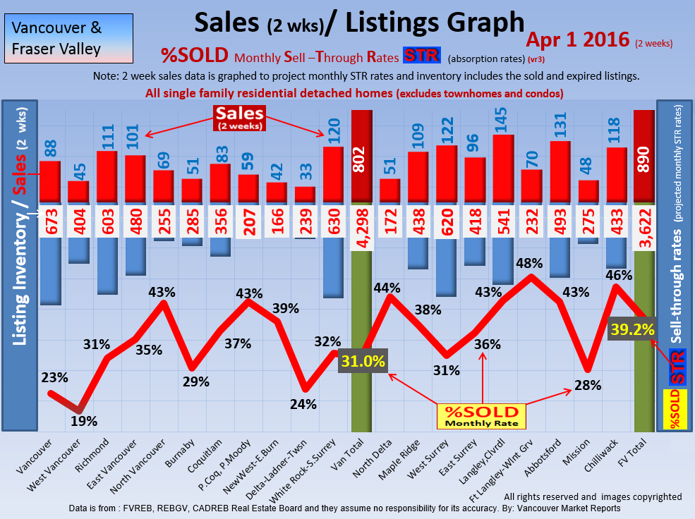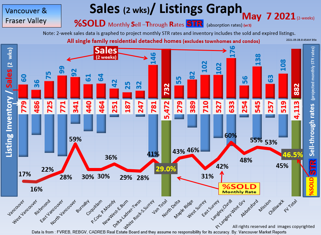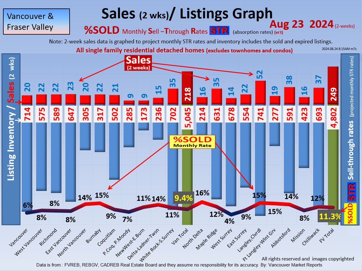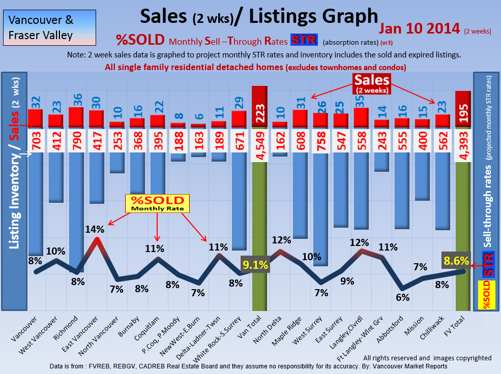 #2 The area east of it, namely of the Fraser Valley Real Estate Board: Surrey to Chilliwack. Here we see the first area has a 30% monthly listing sell-through and the area east of it is currently at a 9% monthly sell-through to read more ..click here