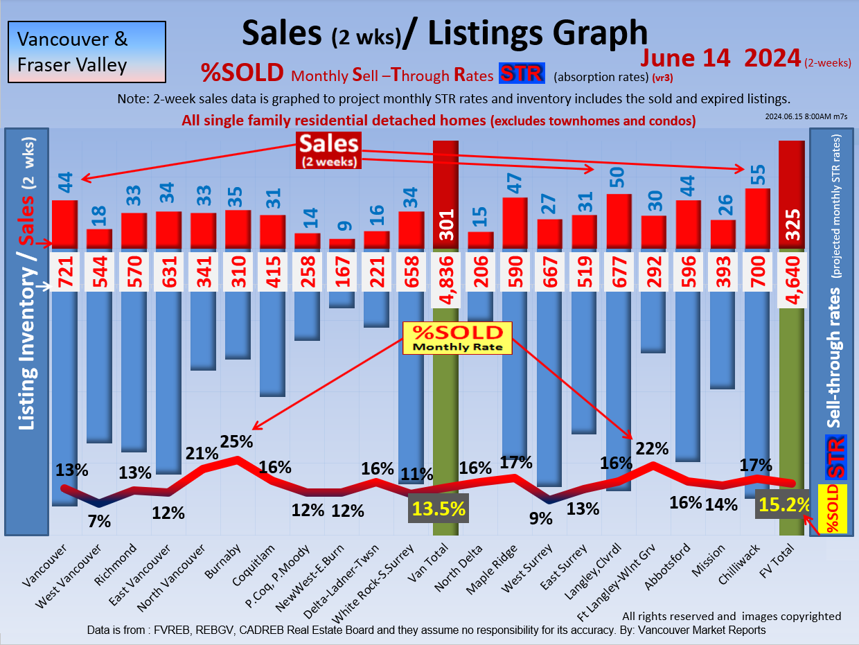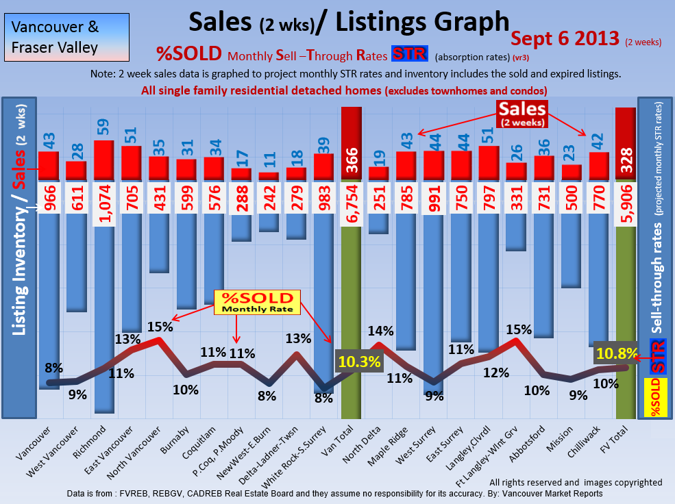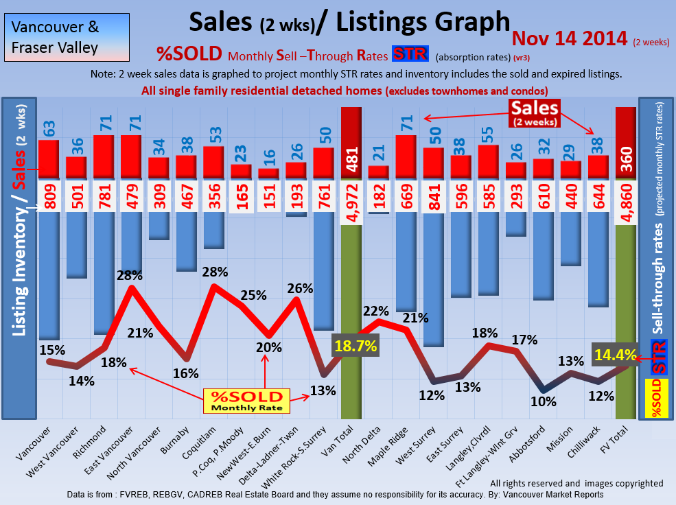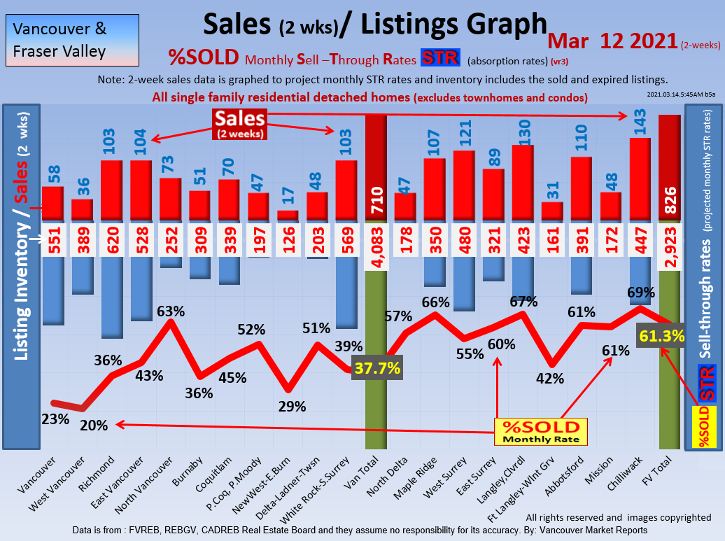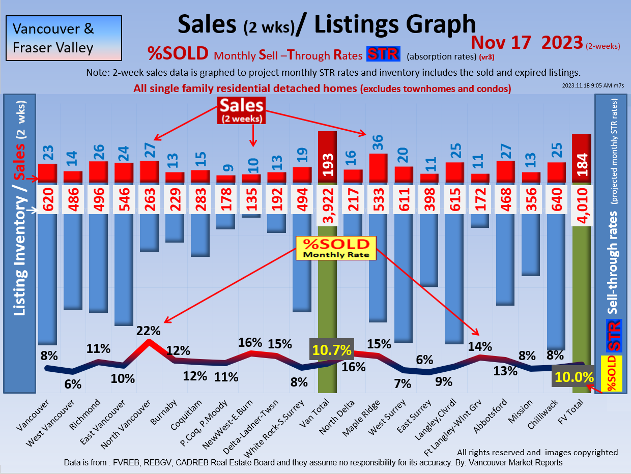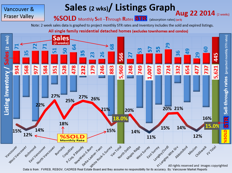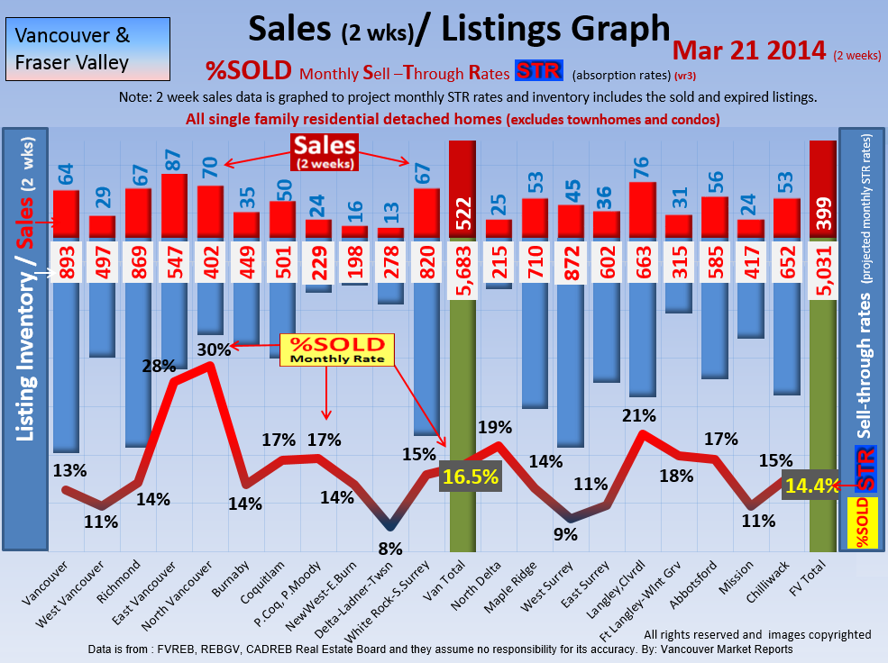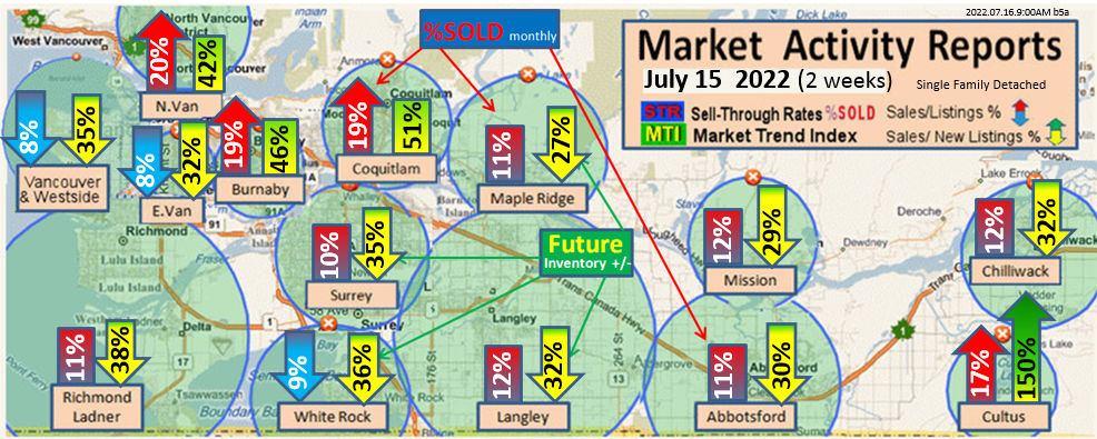 #2 The area east of it, namely of the Fraser Valley Real Estate Board: Surrey to Chilliwack. Here we see the first area has a 30% monthly listing sell-through and the area east of it is currently at a 9% monthly sell-through to read more ..click here