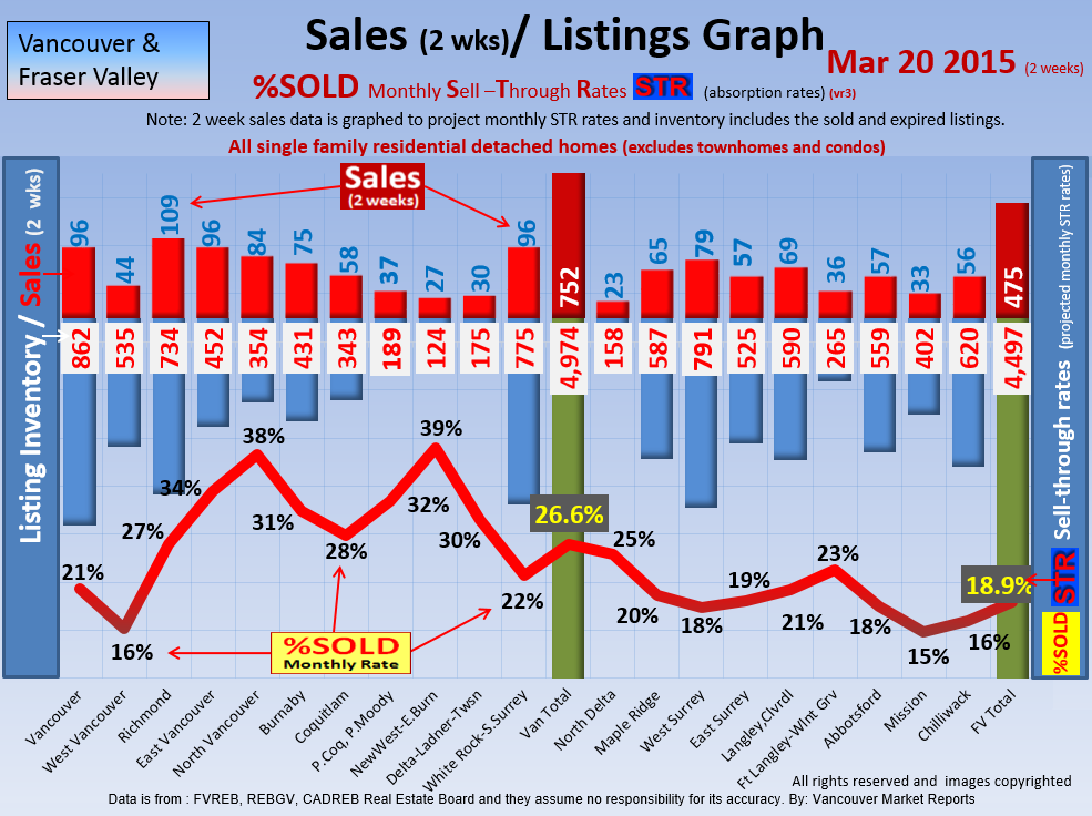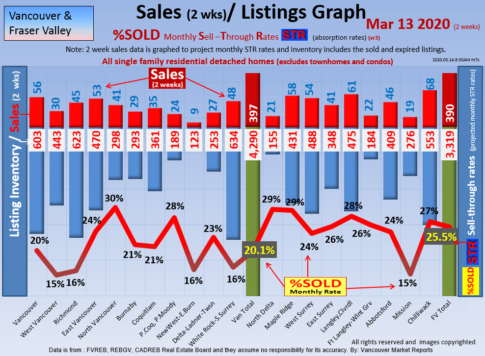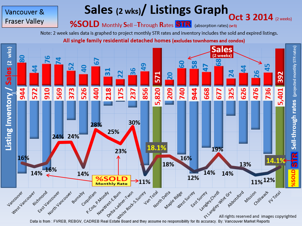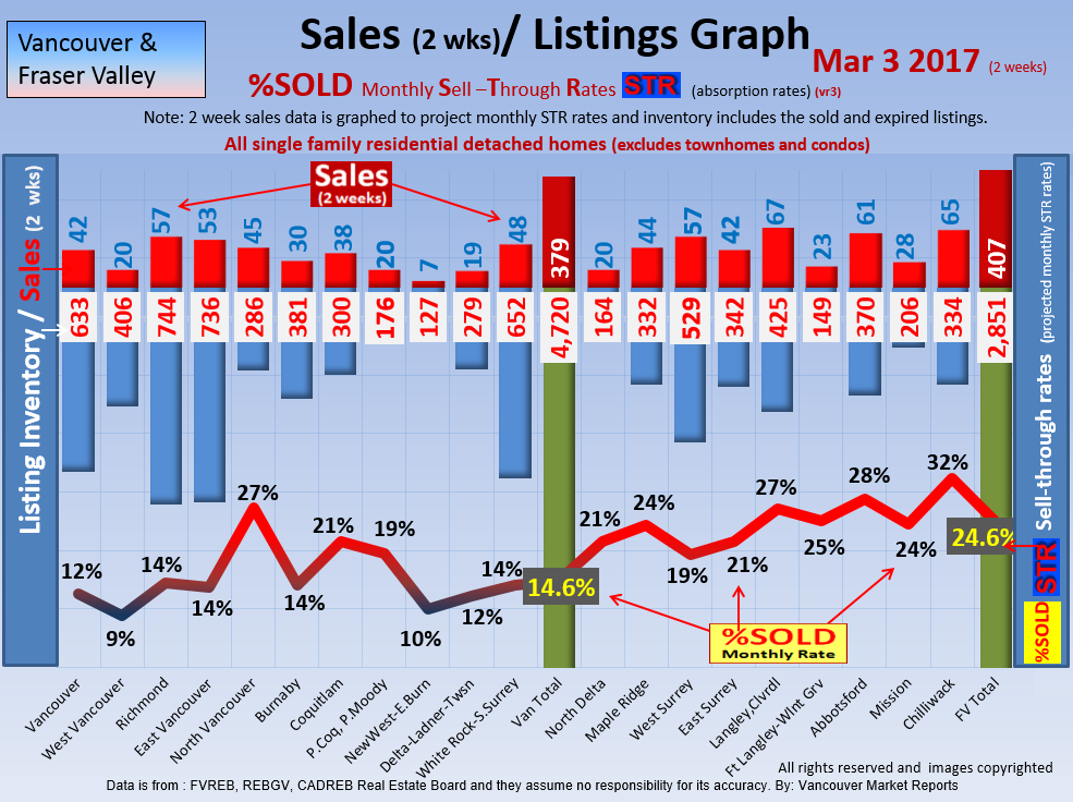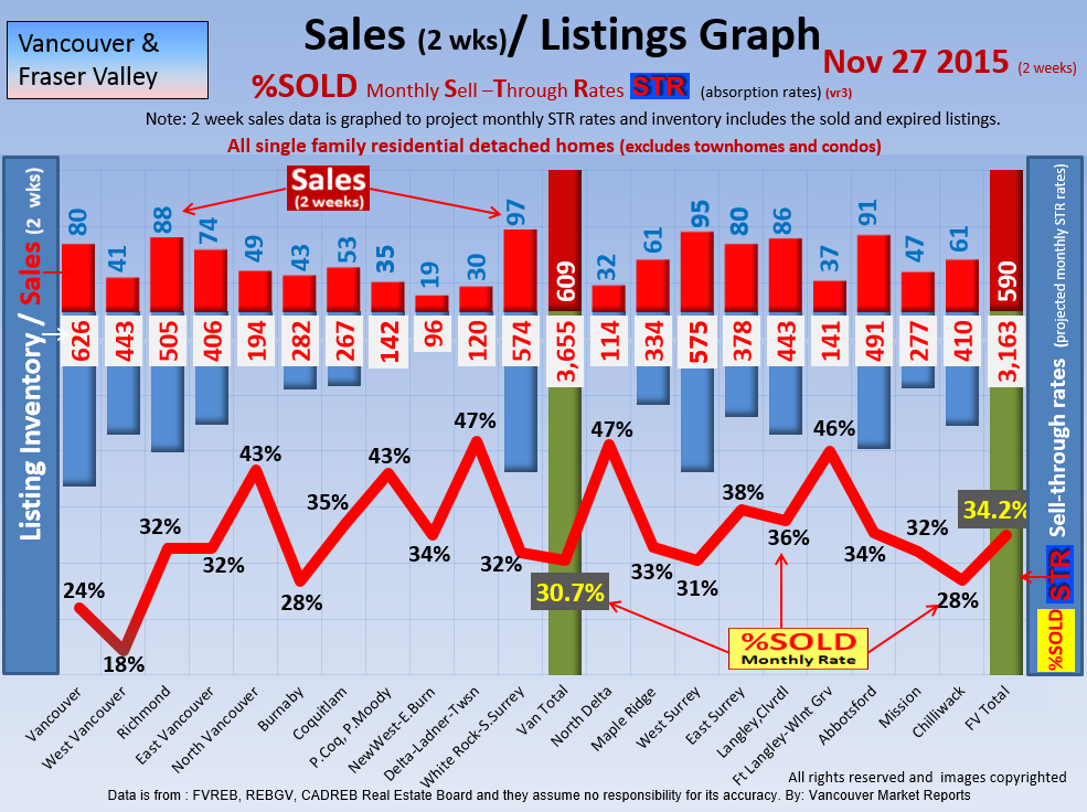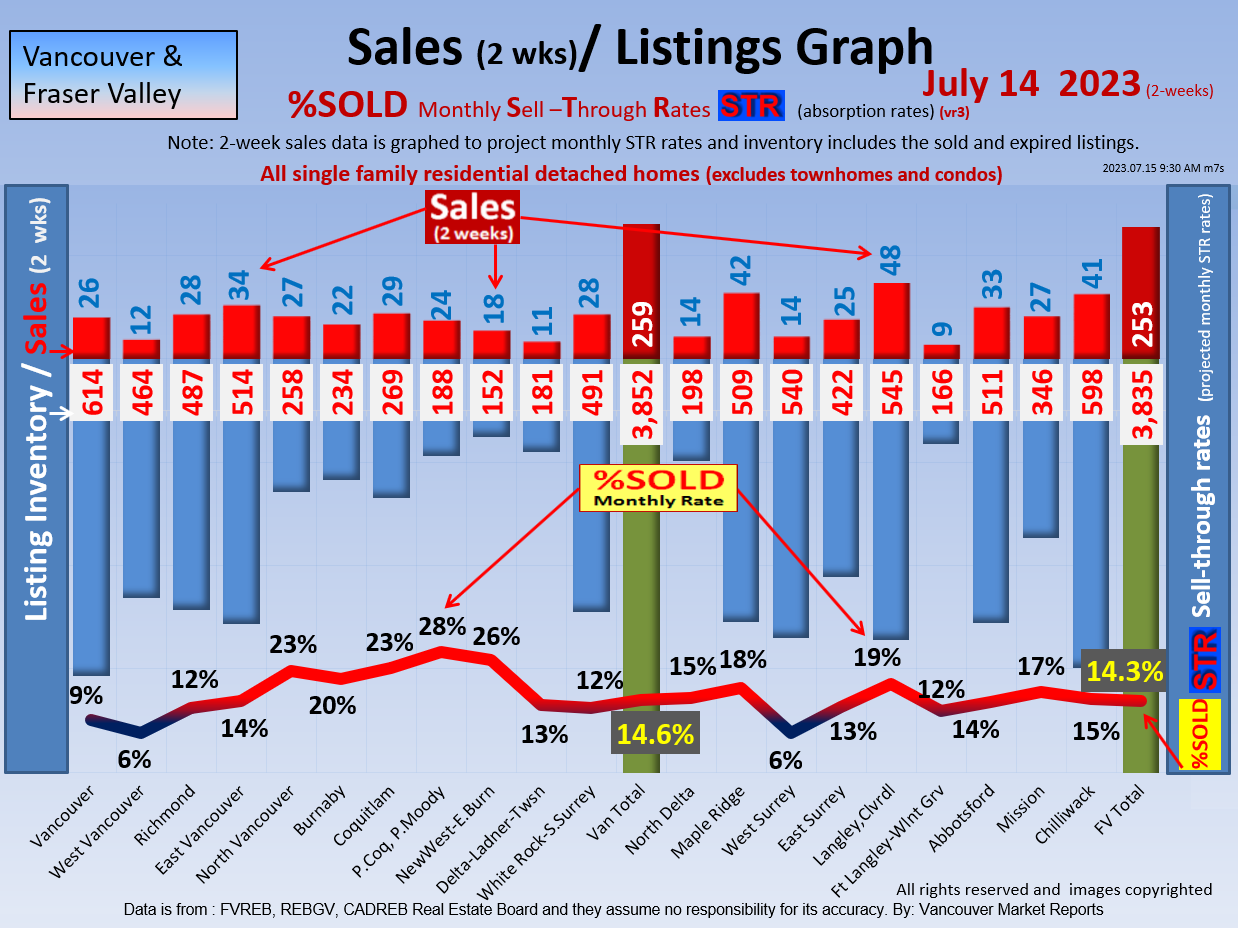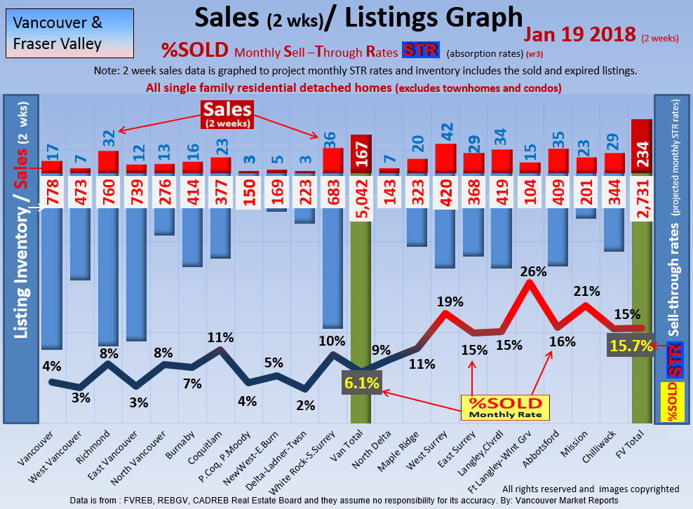 #2 The area east of it, namely of the Fraser Valley Real Estate Board: Surrey to Chilliwack. Here we see the first area has a 30% monthly listing sell-through and the area east of it is currently at a 9% monthly sell-through to read more ..click here