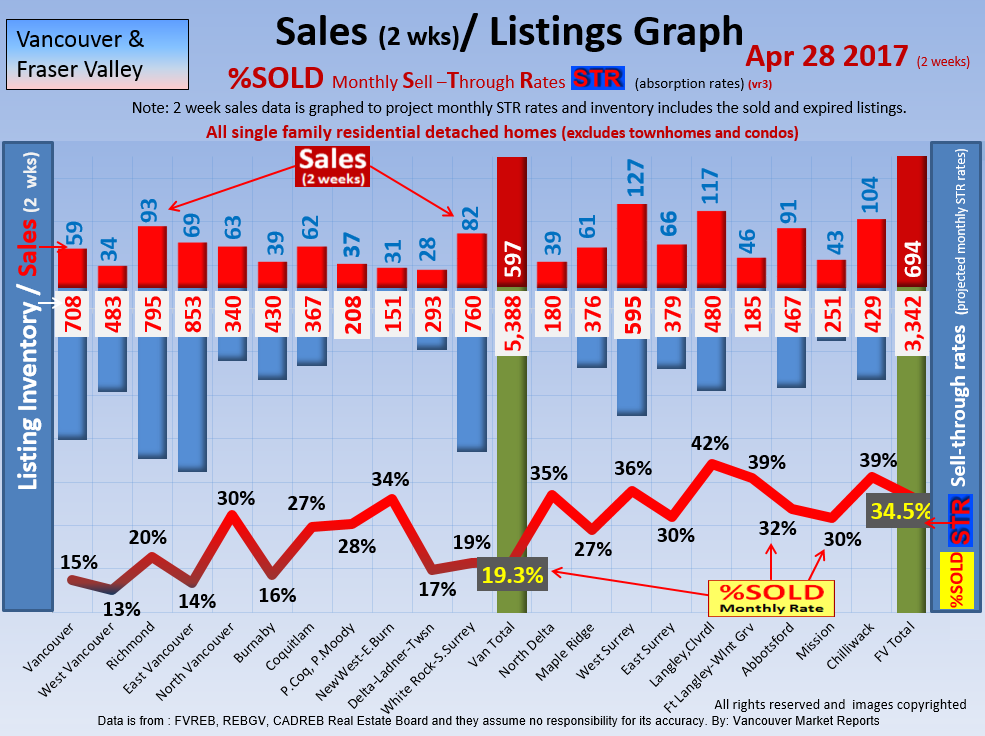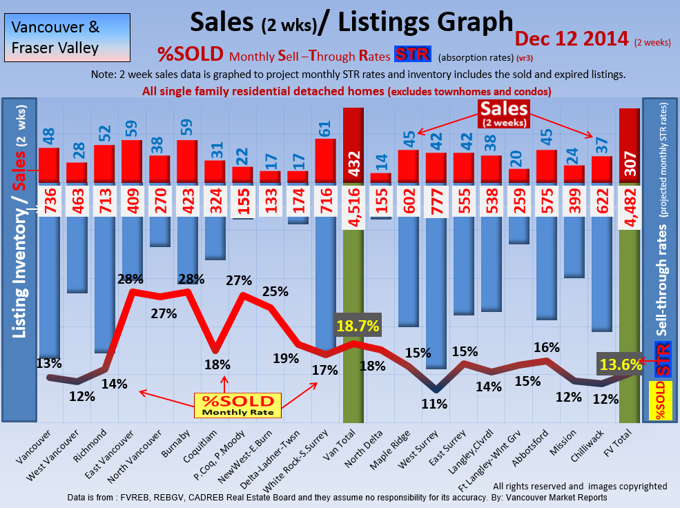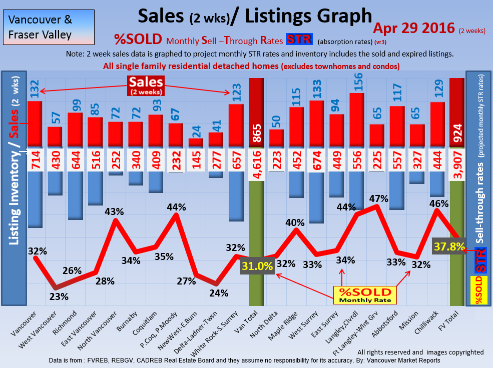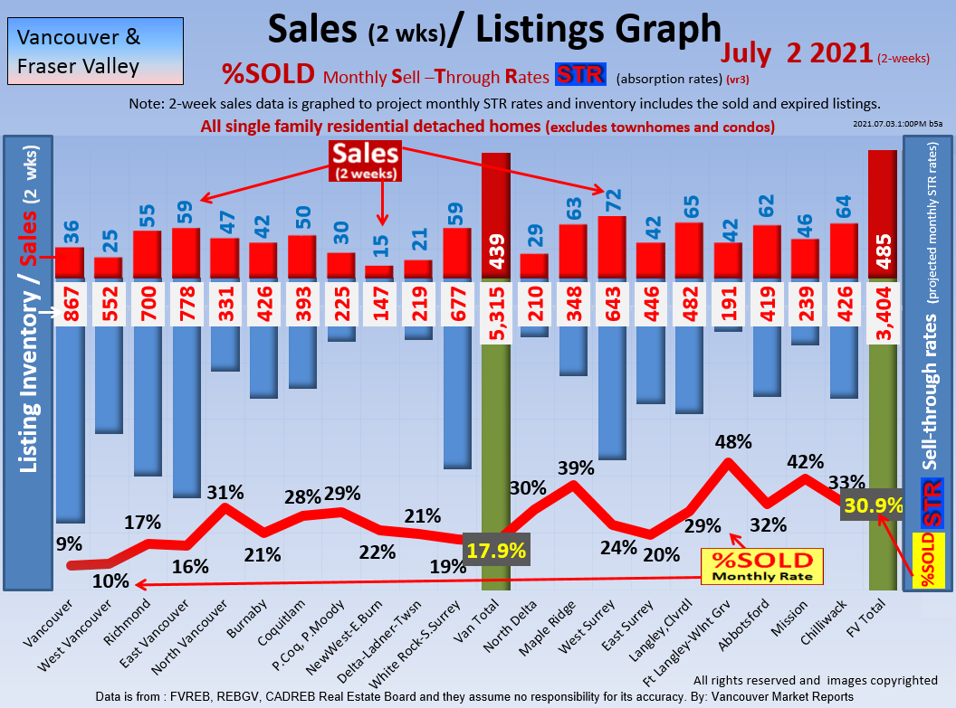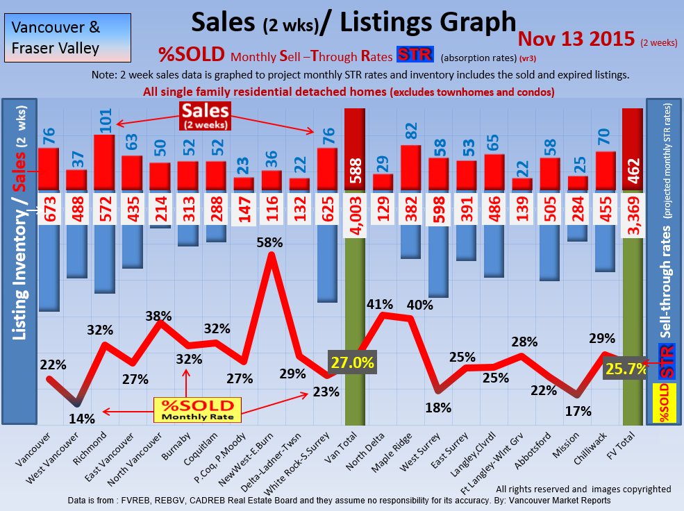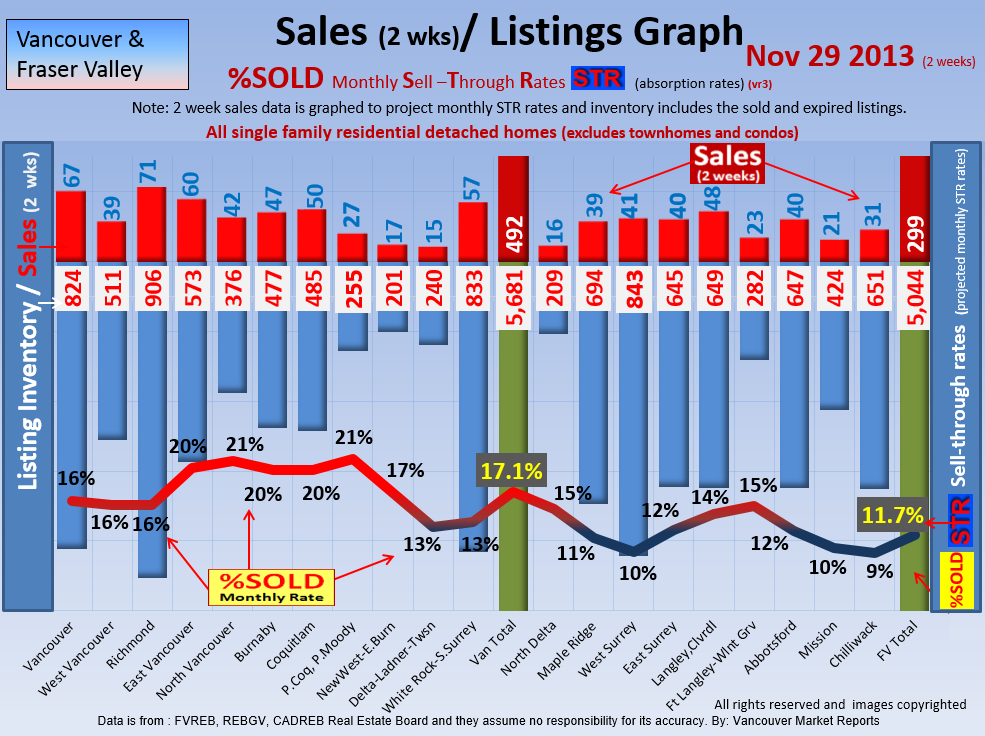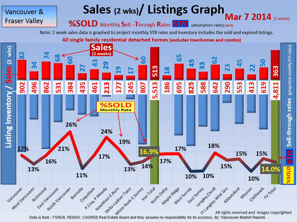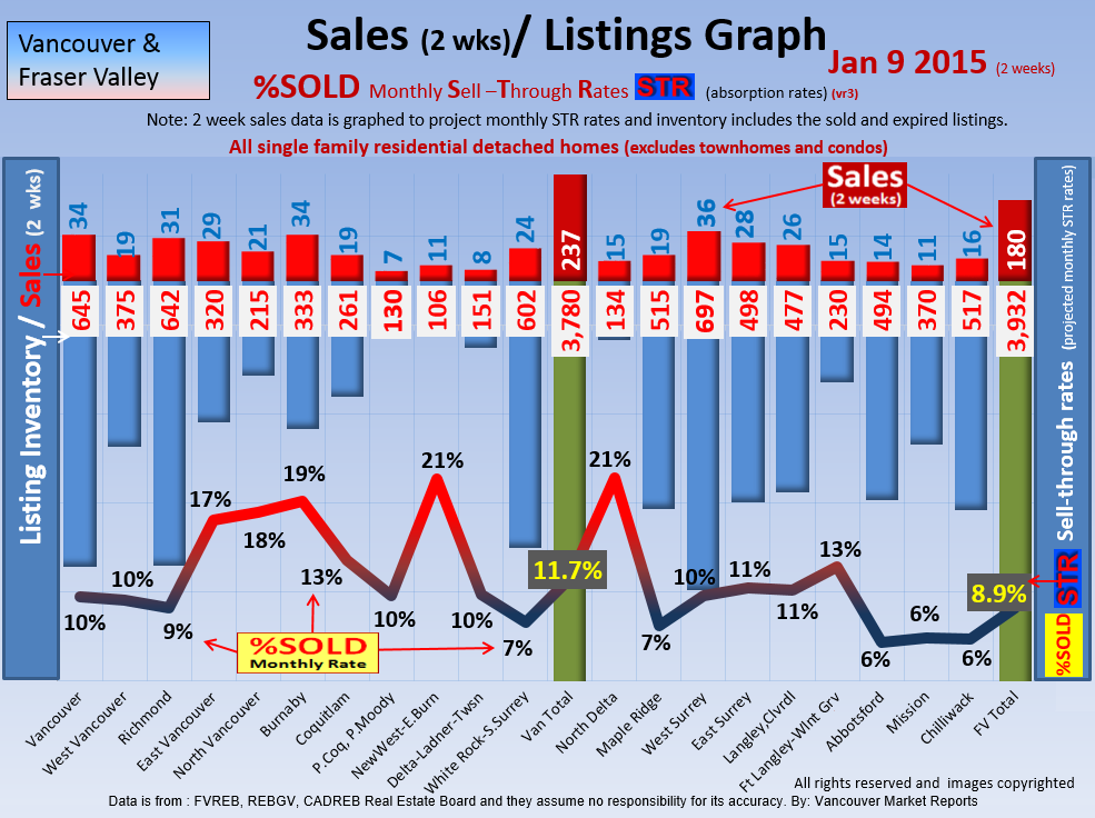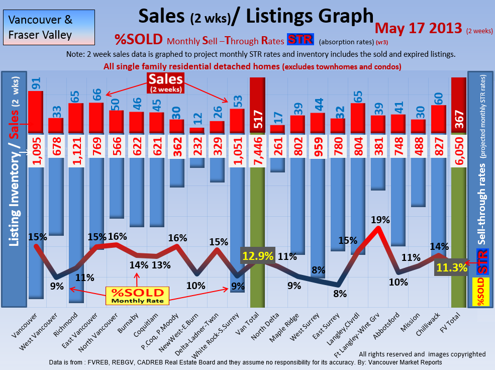 #2 The area east of it, namely of the Fraser Valley Real Estate Board: Surrey to Chilliwack. Here we see the first area has a 30% monthly listing sell-through and the area east of it is currently at a 9% monthly sell-through to read more ..click here