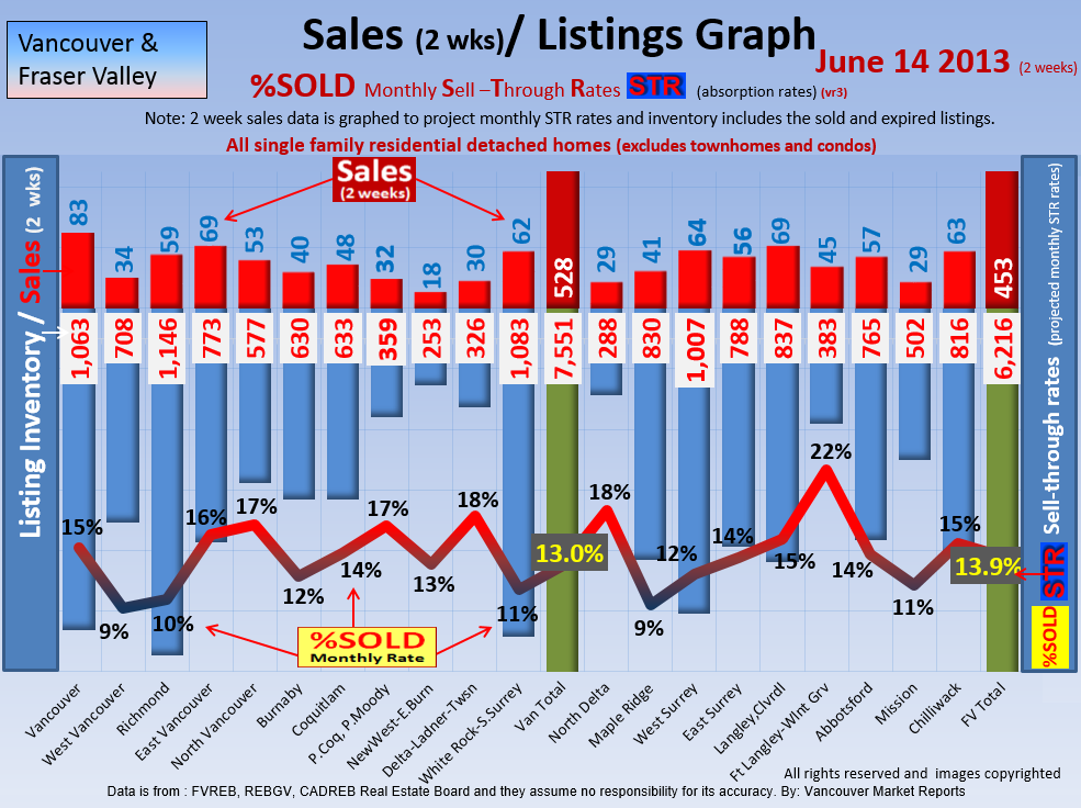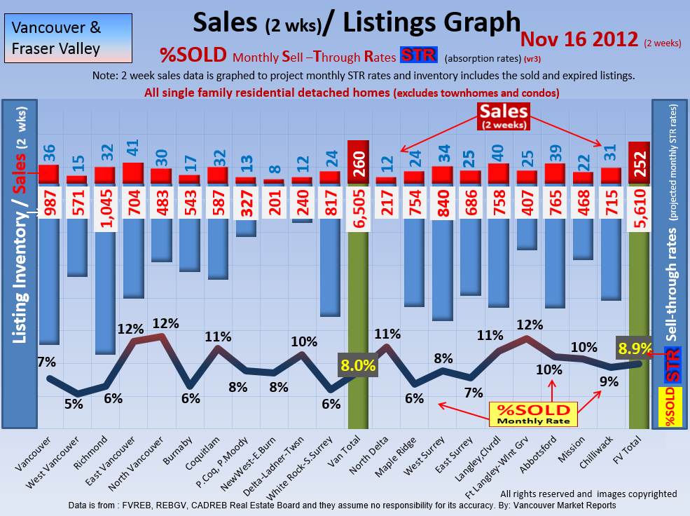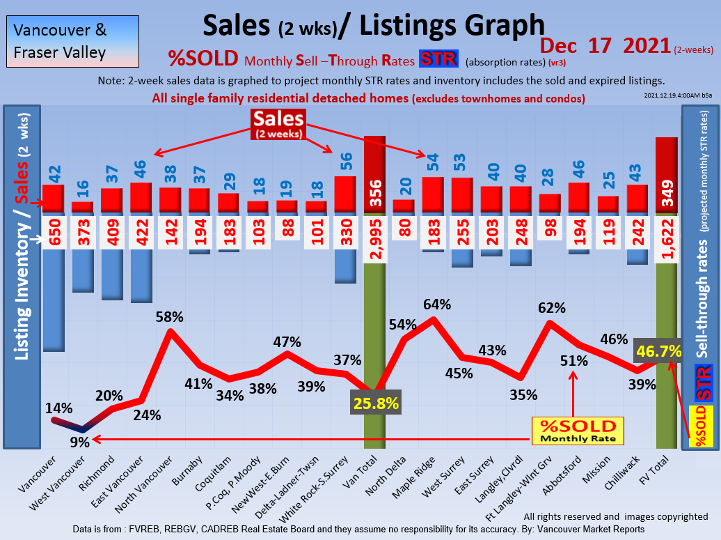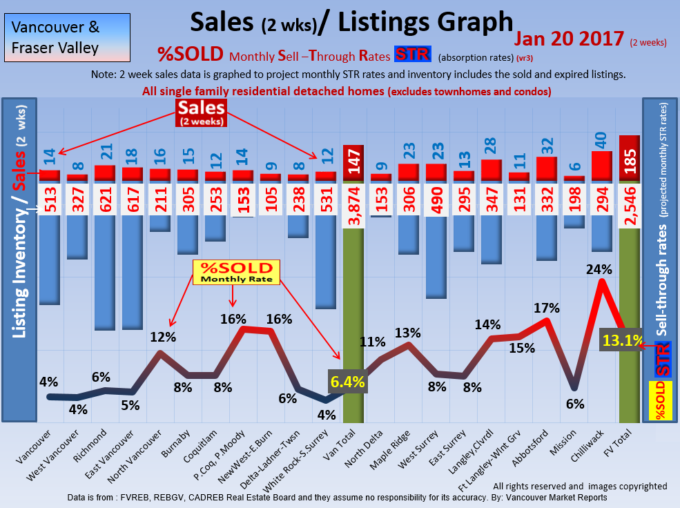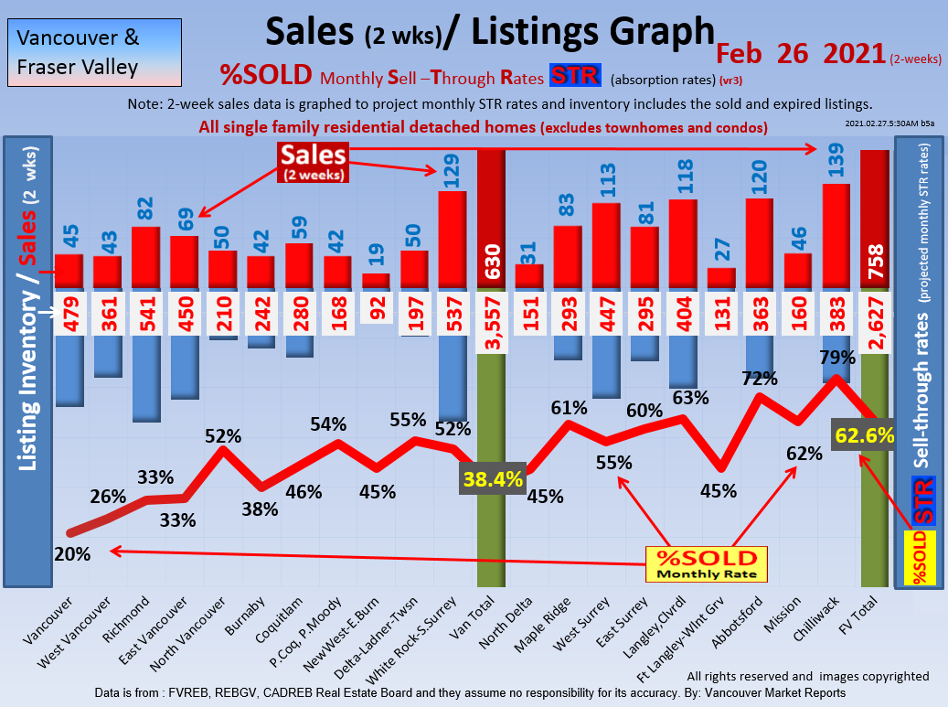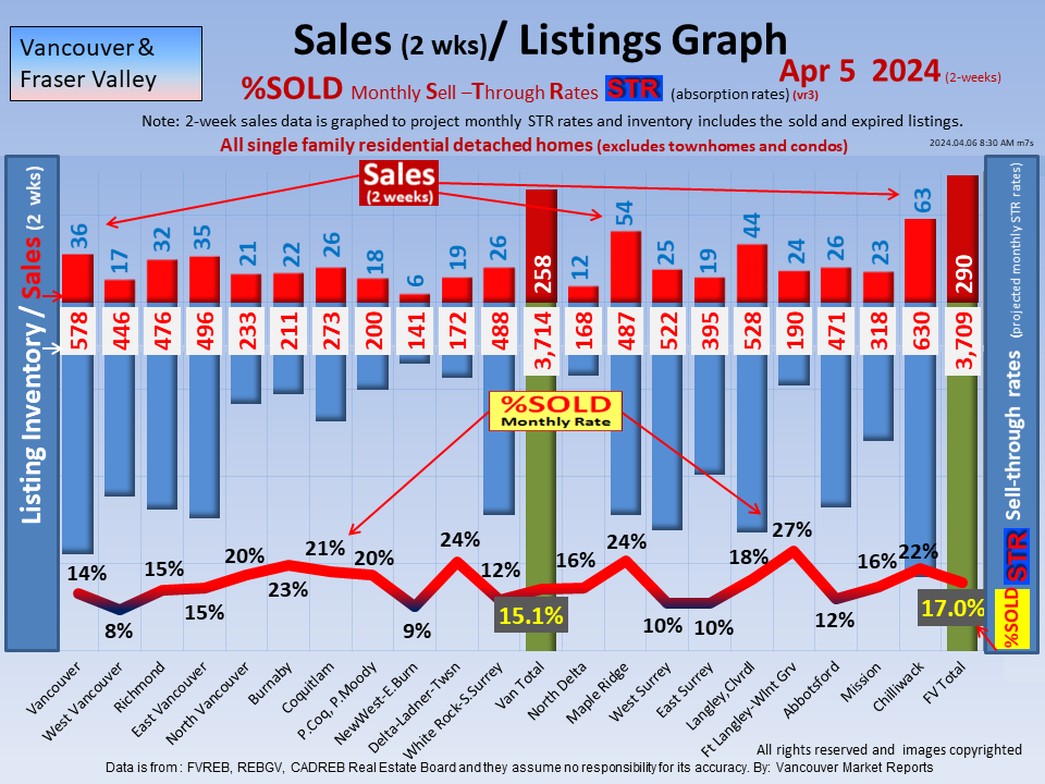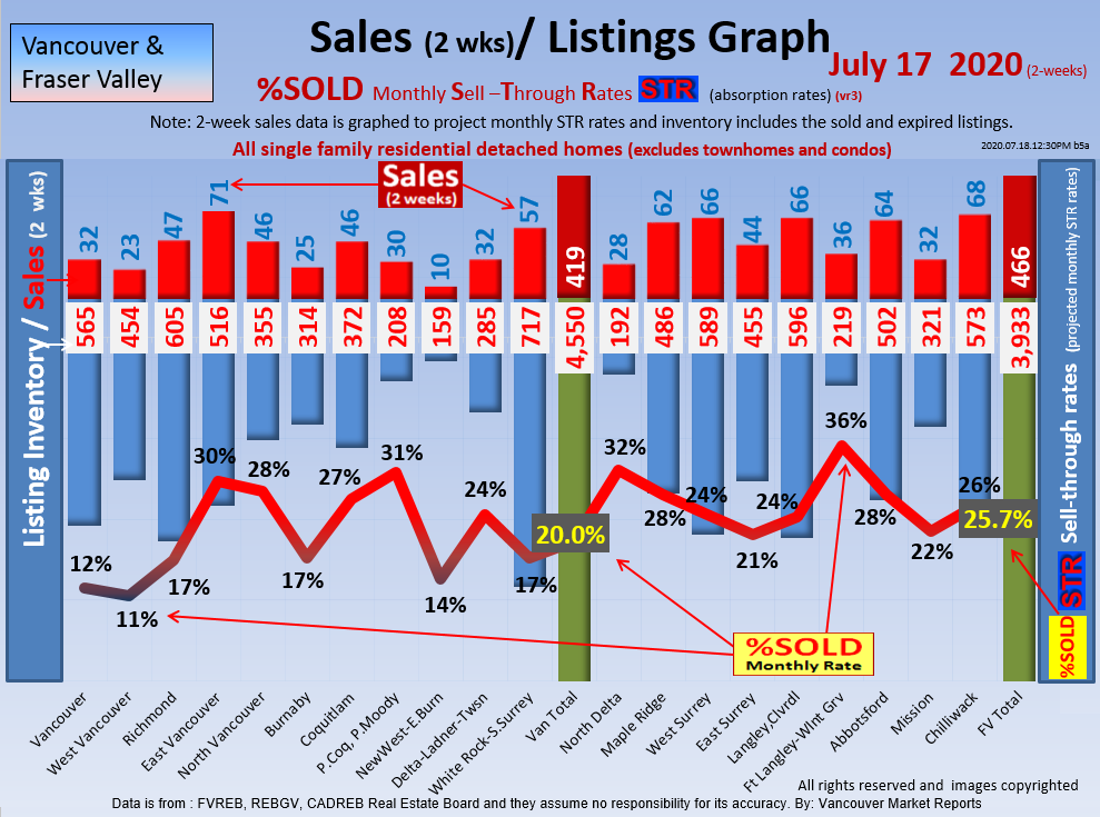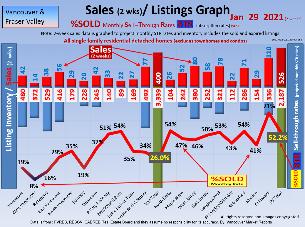 #2 The area east of it, namely of the Fraser Valley Real Estate Board: Surrey to Chilliwack. Here we see the first area has a 30% monthly listing sell-through and the area east of it is currently at a 9% monthly sell-through to read more ..click here