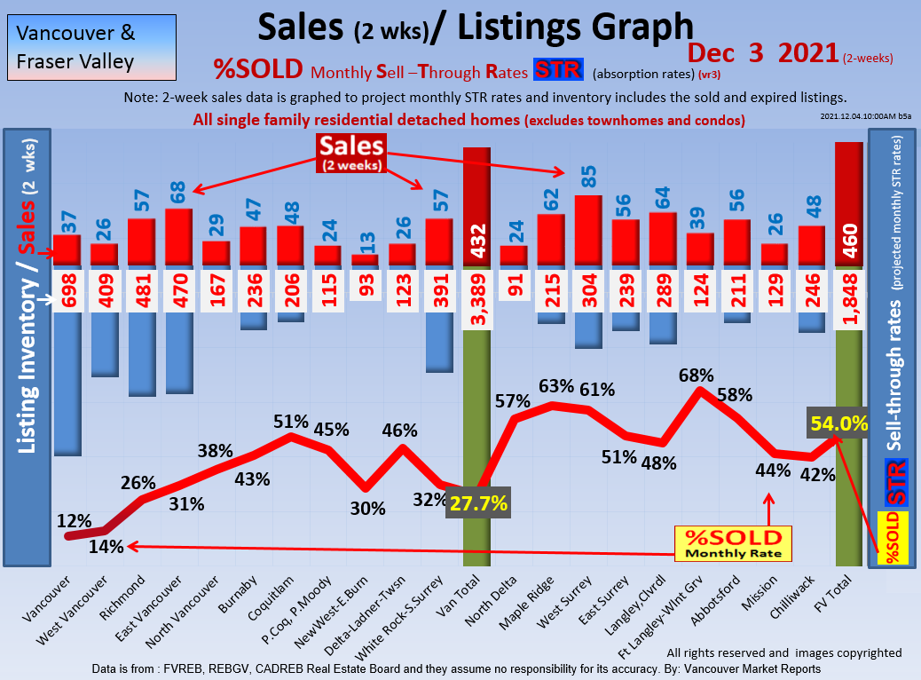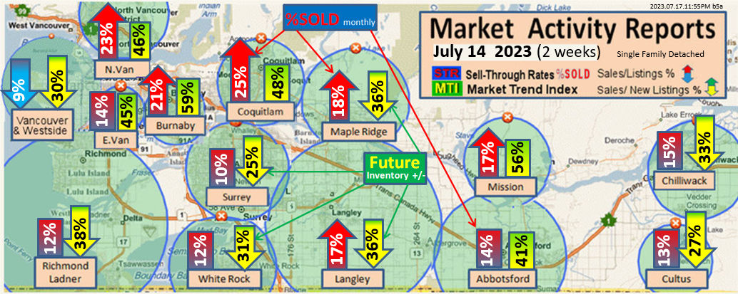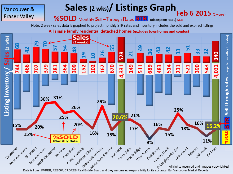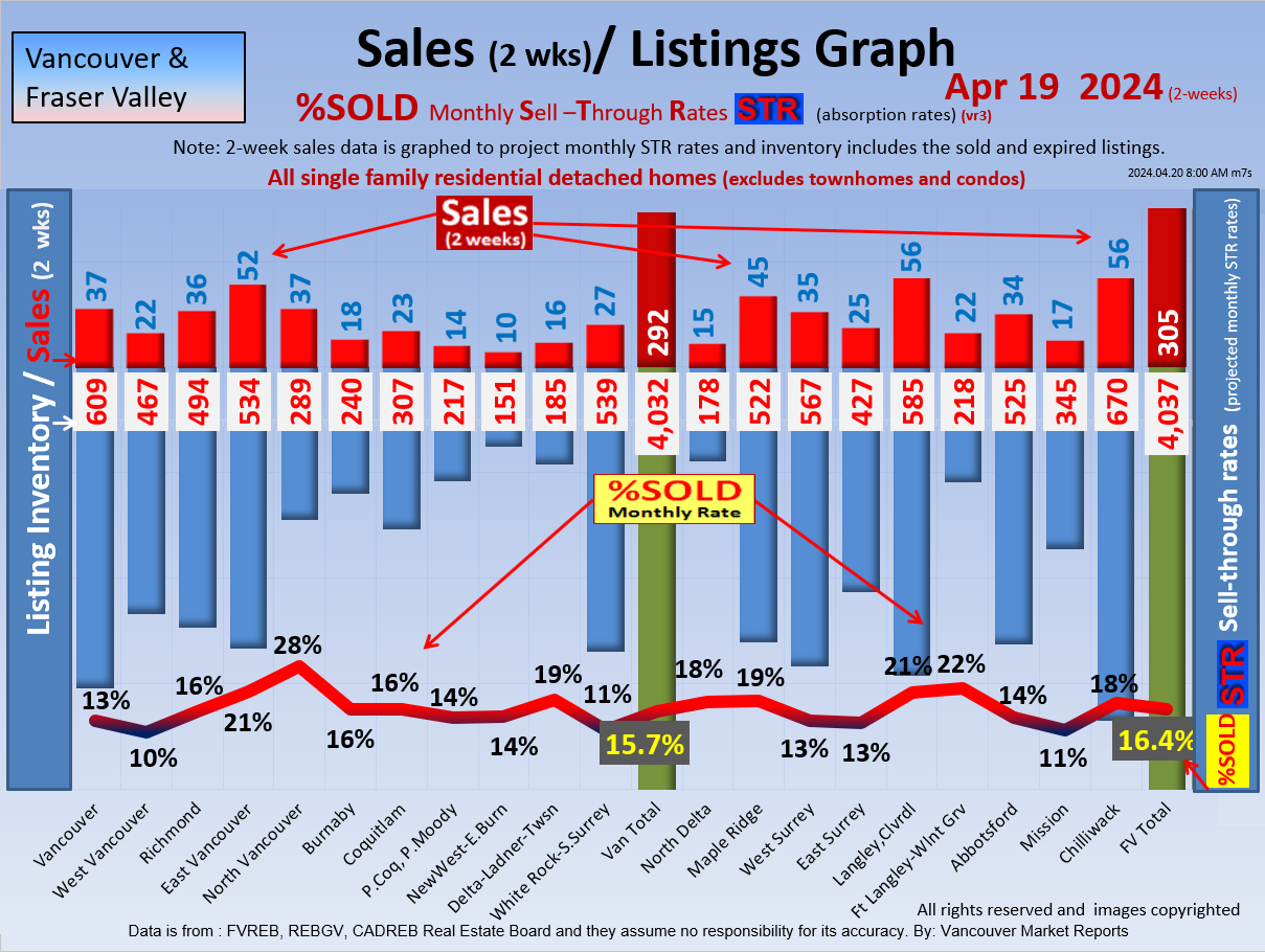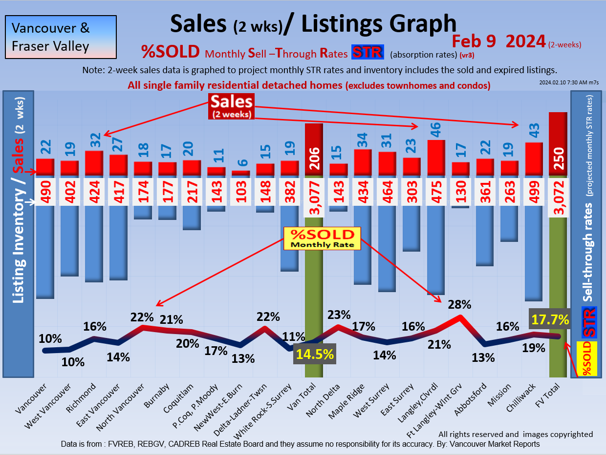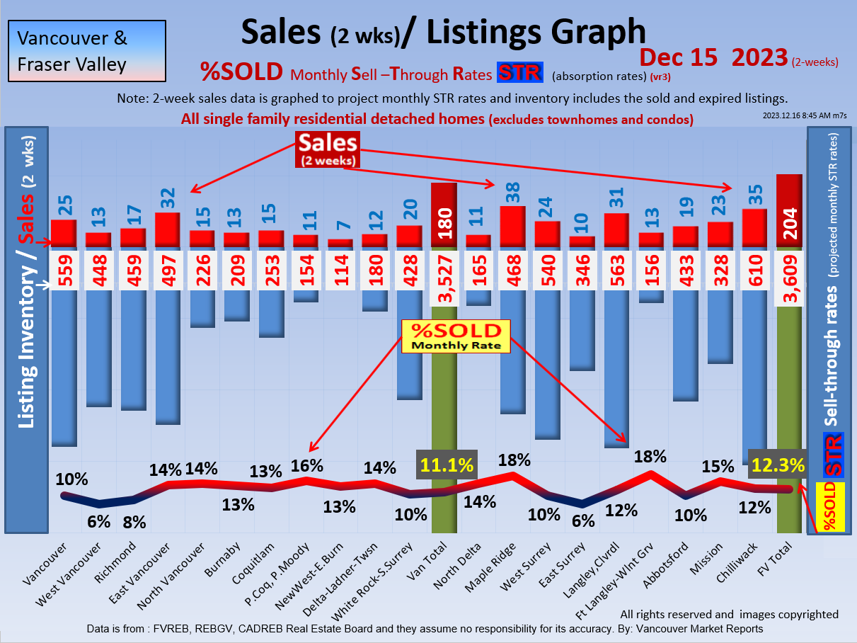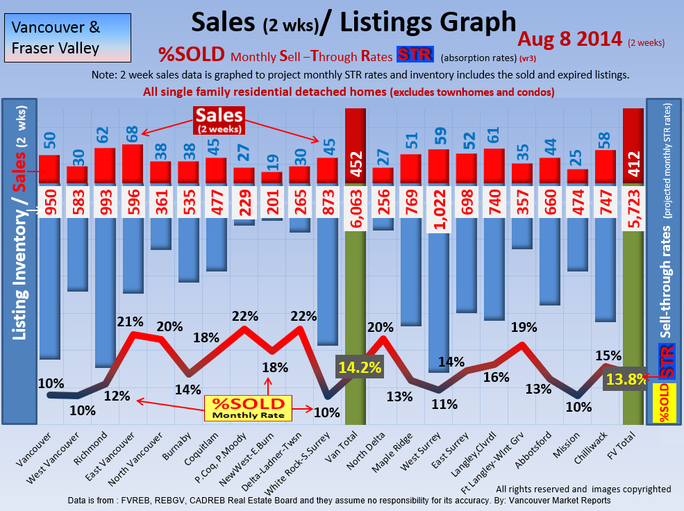 #2 The area east of it, namely of the Fraser Valley Real Estate Board: Surrey to Chilliwack. Here we see the first area has a 30% monthly listing sell-through and the area east of it is currently at a 9% monthly sell-through to read more ..click here