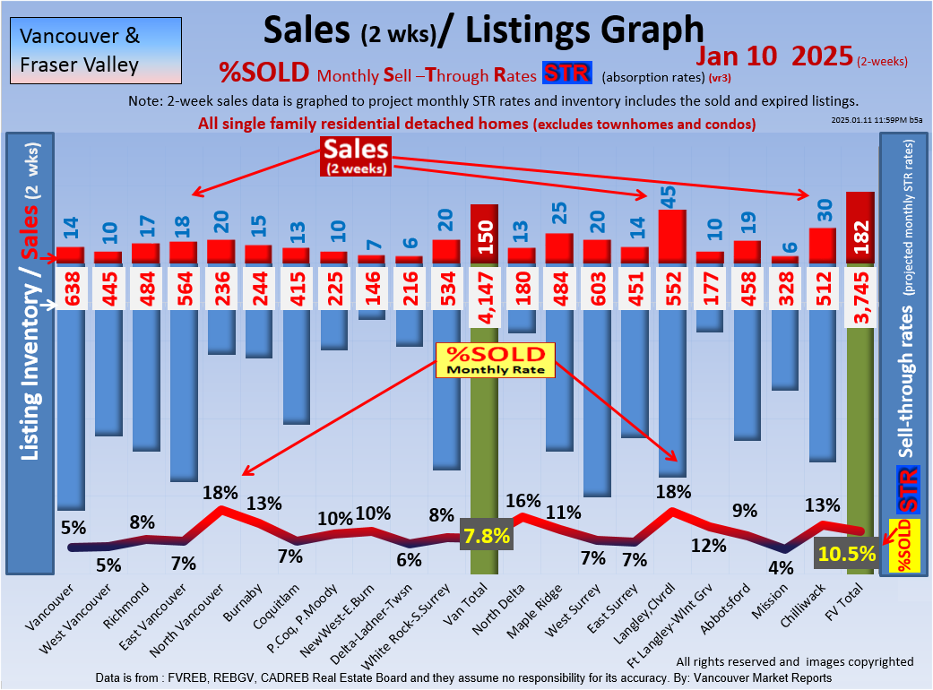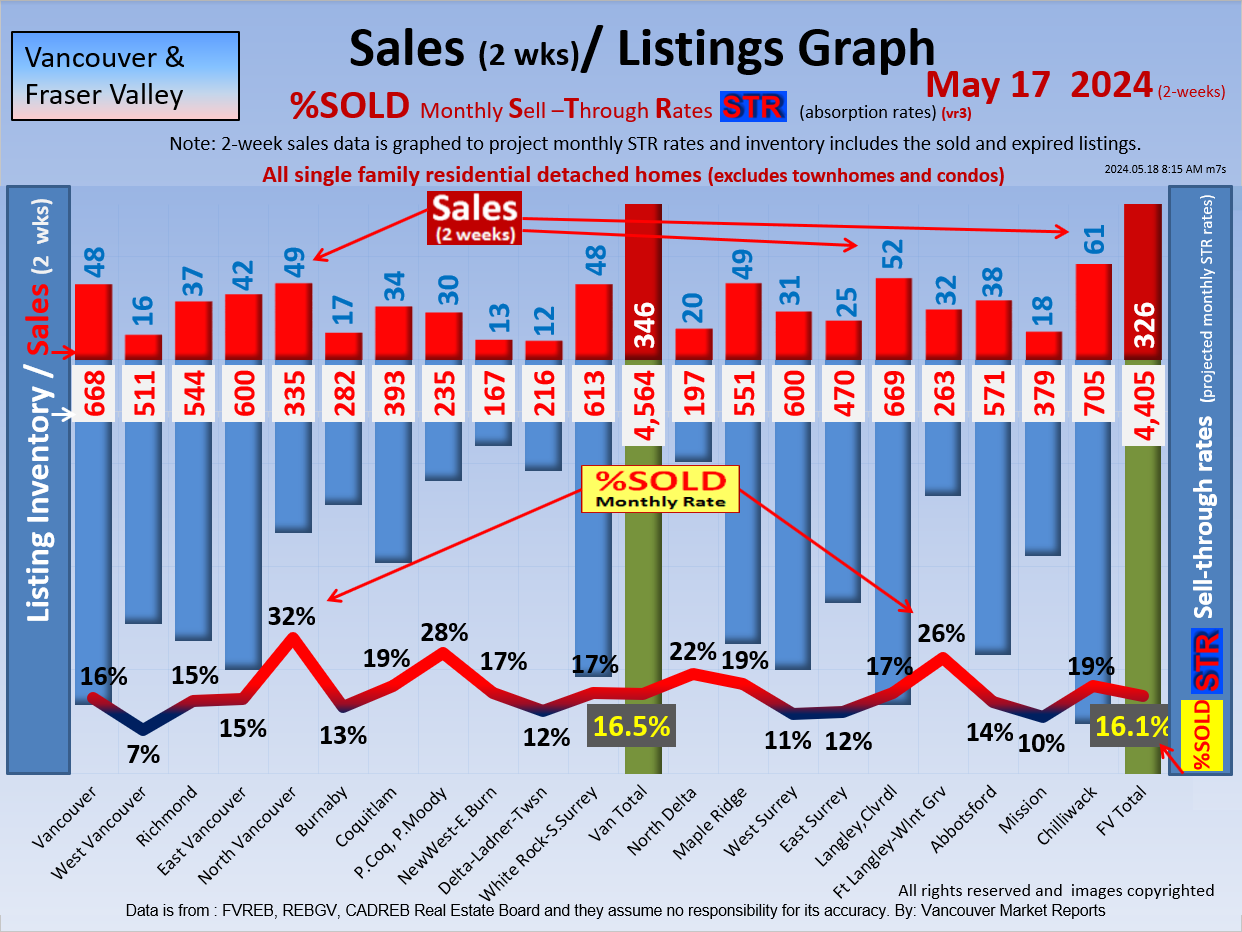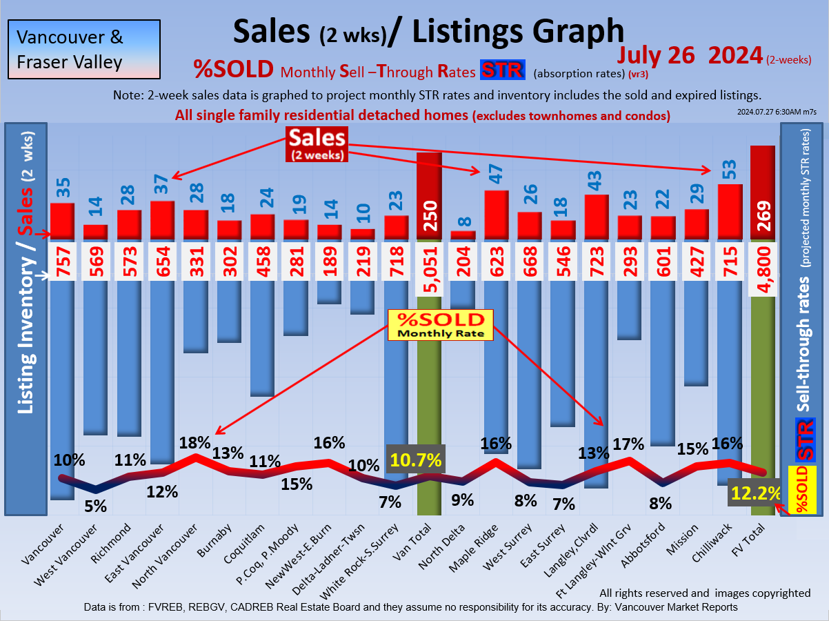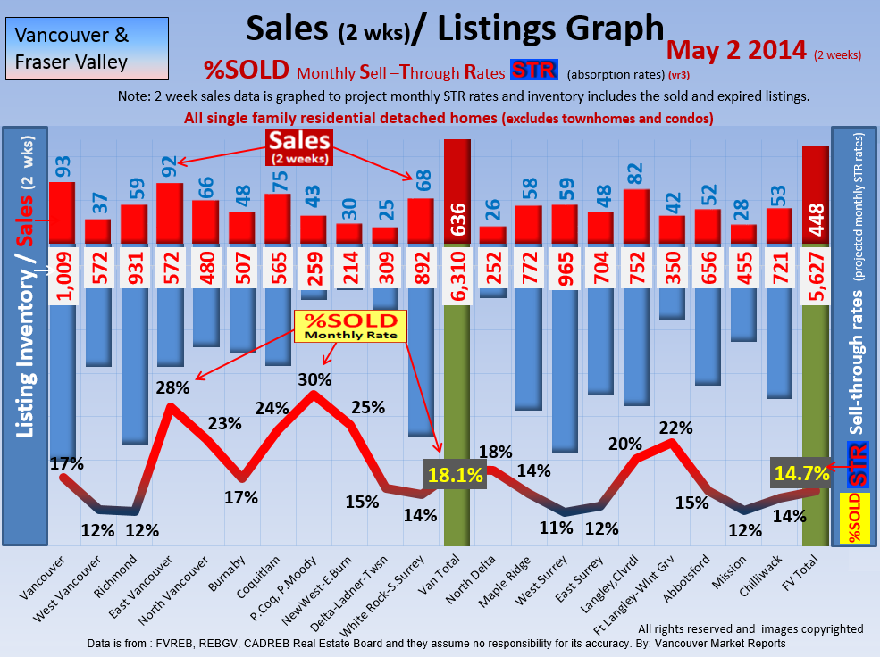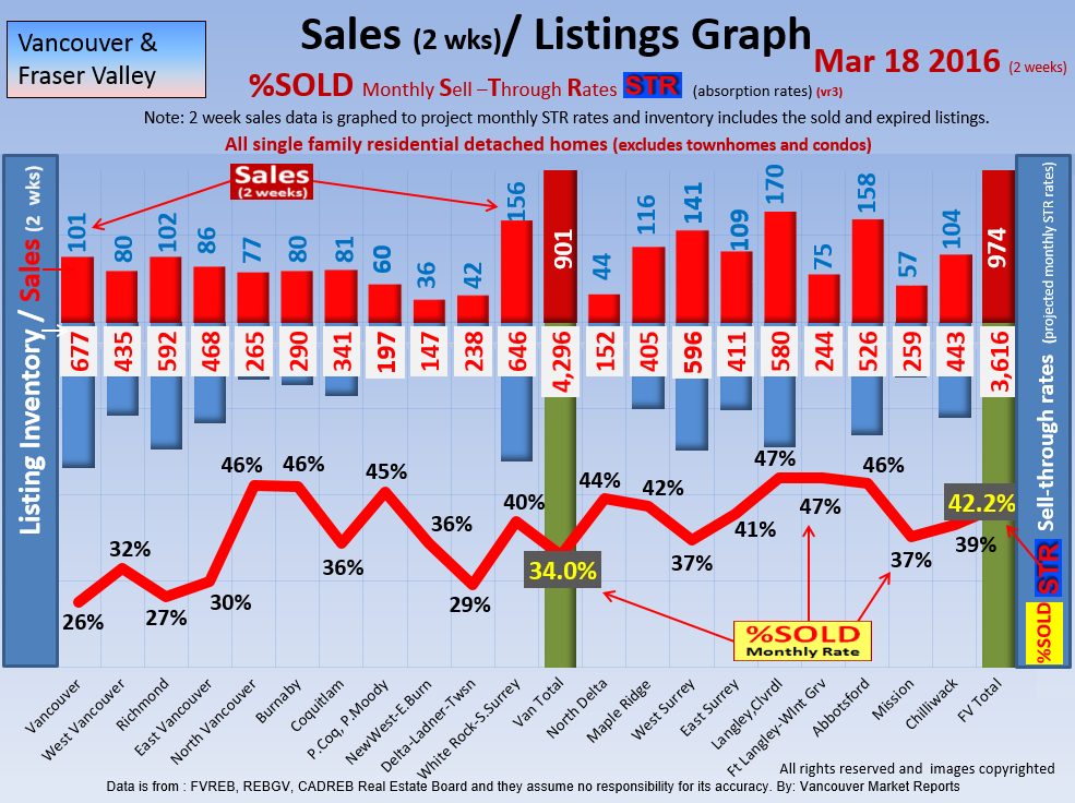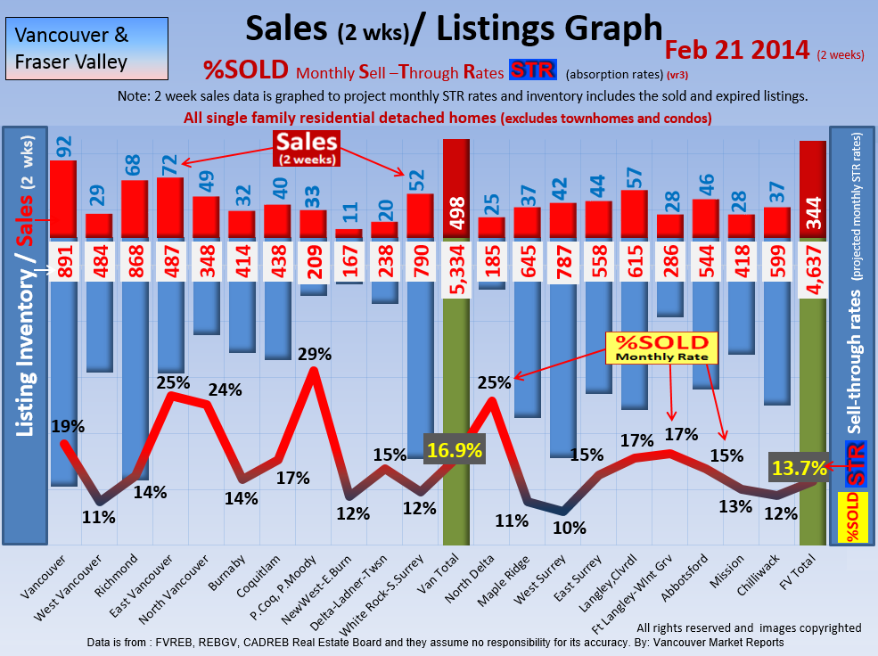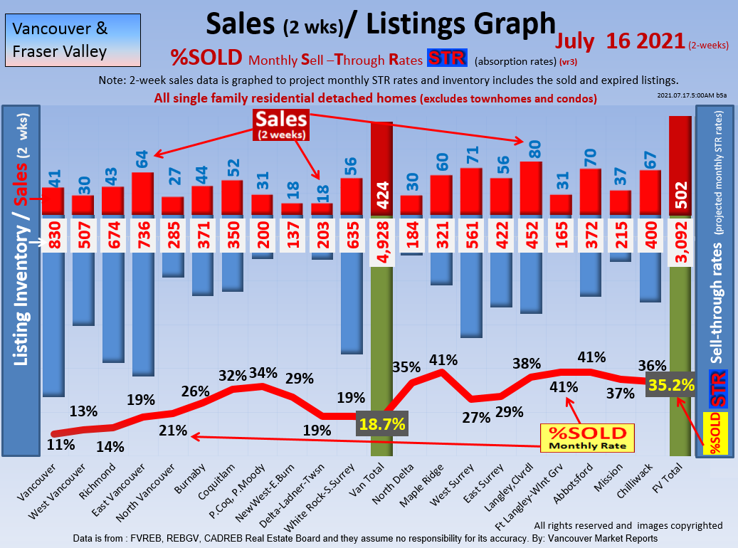 #2 The area east of it, namely of the Fraser Valley Real Estate Board: Surrey to Chilliwack. Here we see the first area has a 30% monthly listing sell-through and the area east of it is currently at a 9% monthly sell-through to read more ..click here