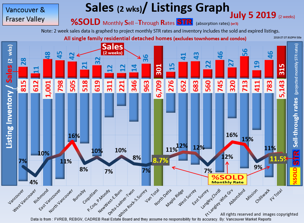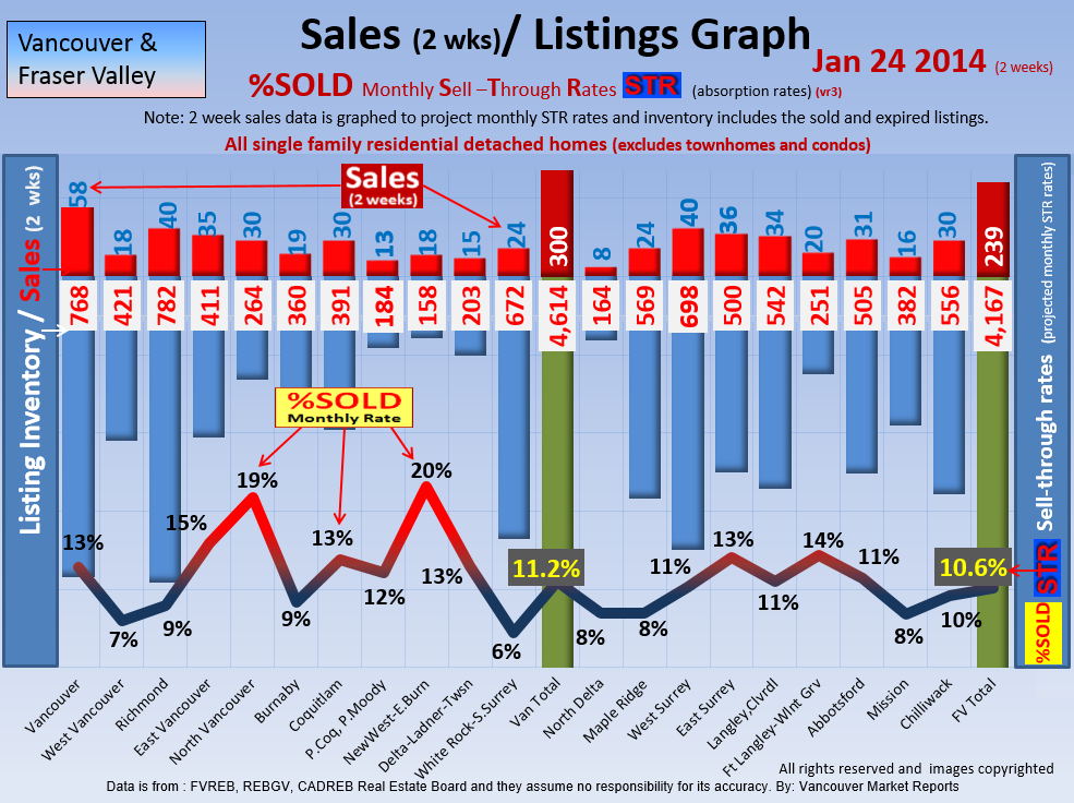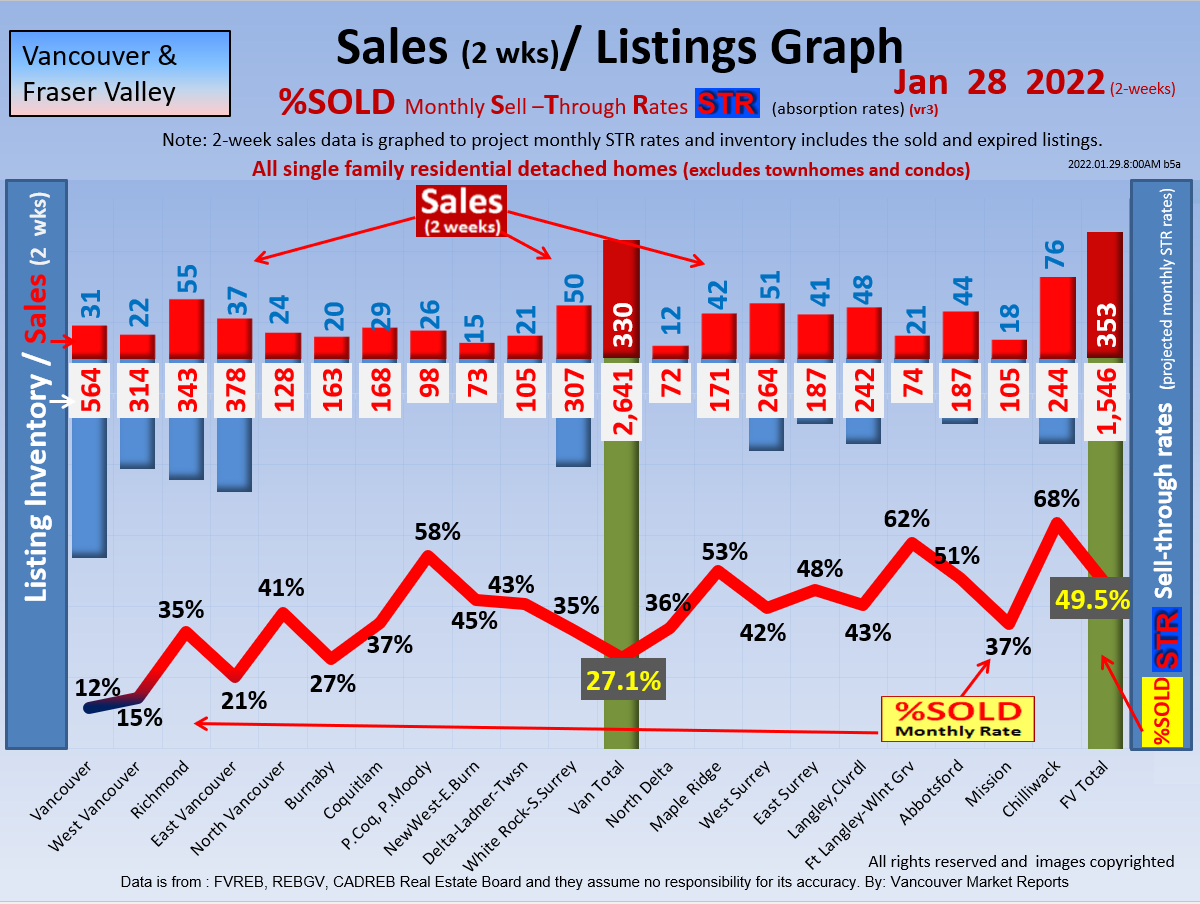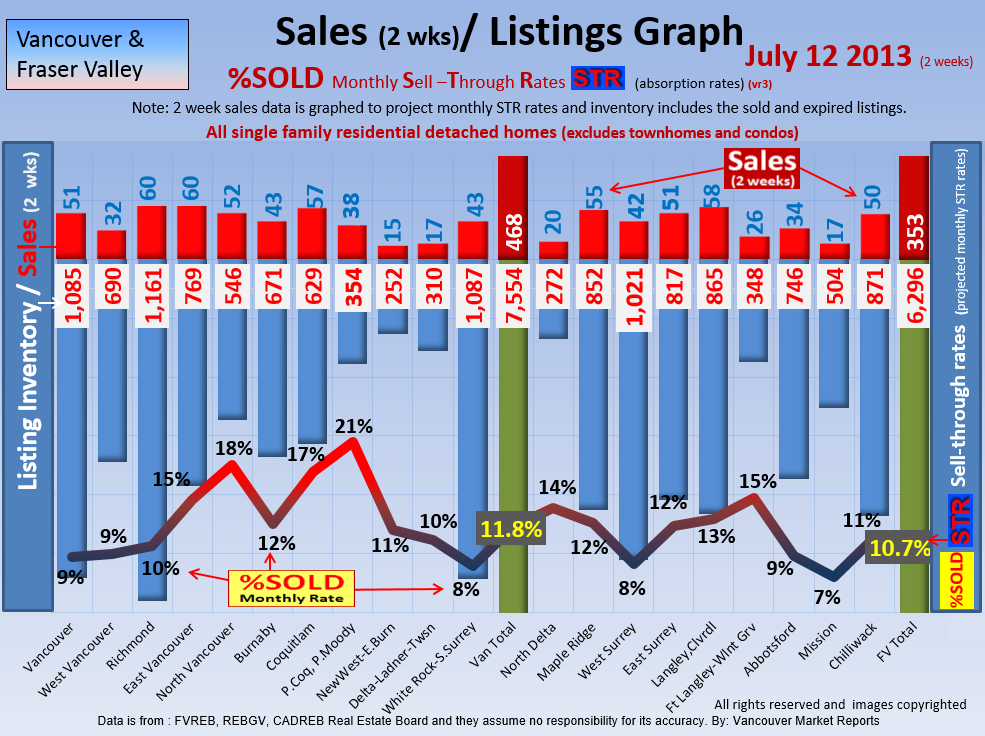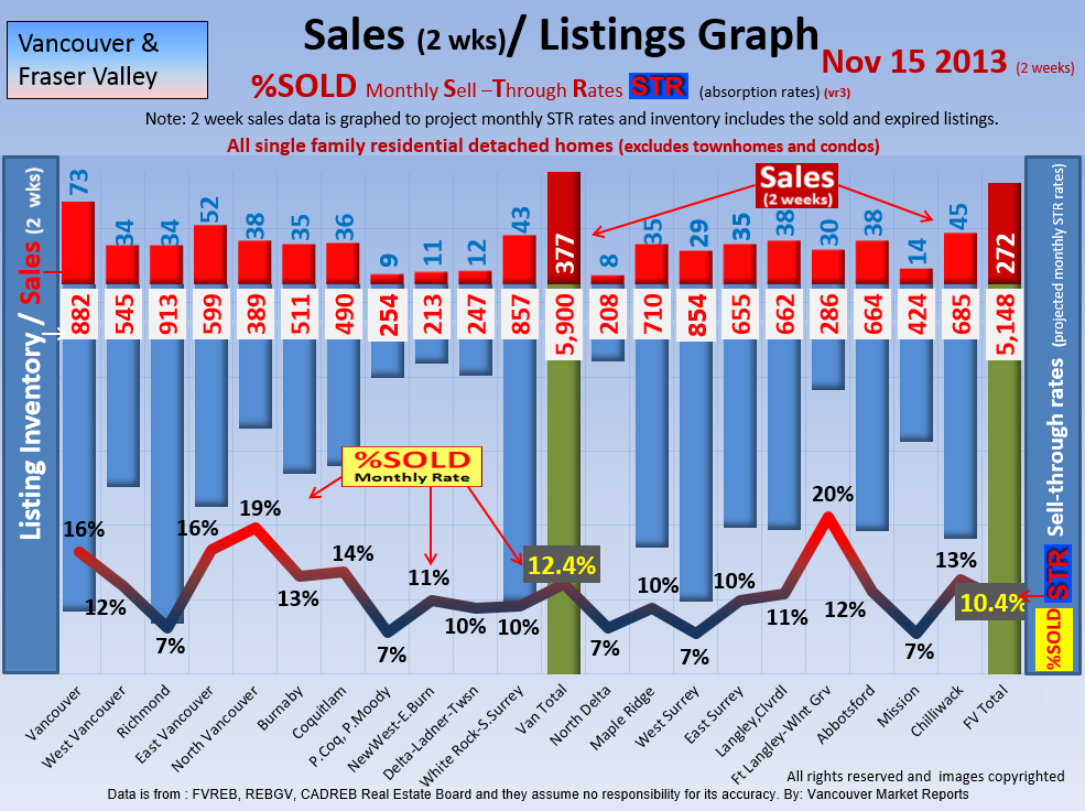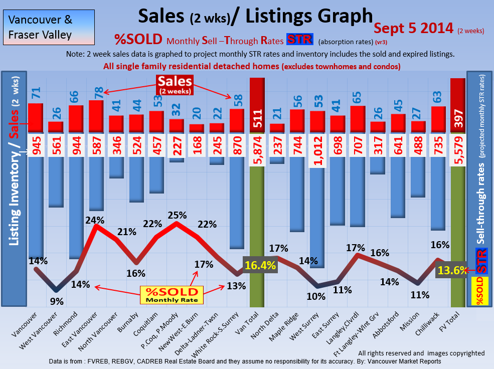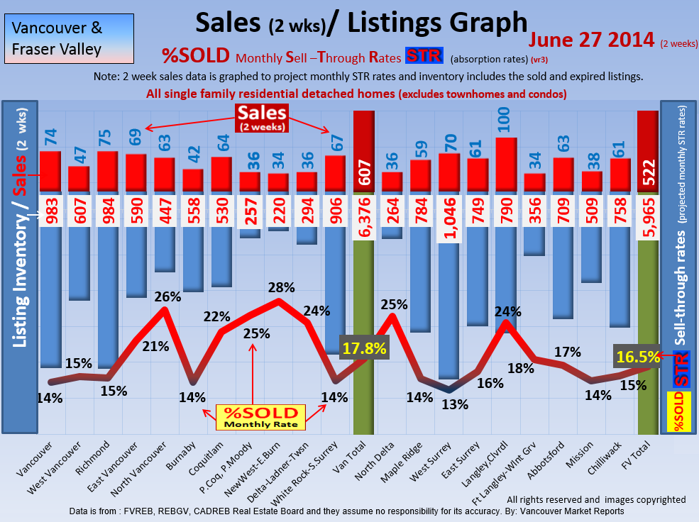 #2 The area east of it, namely of the Fraser Valley Real Estate Board: Surrey to Chilliwack. Here we see the first area has a 30% monthly listing sell-through and the area east of it is currently at a 9% monthly sell-through to read more ..click here