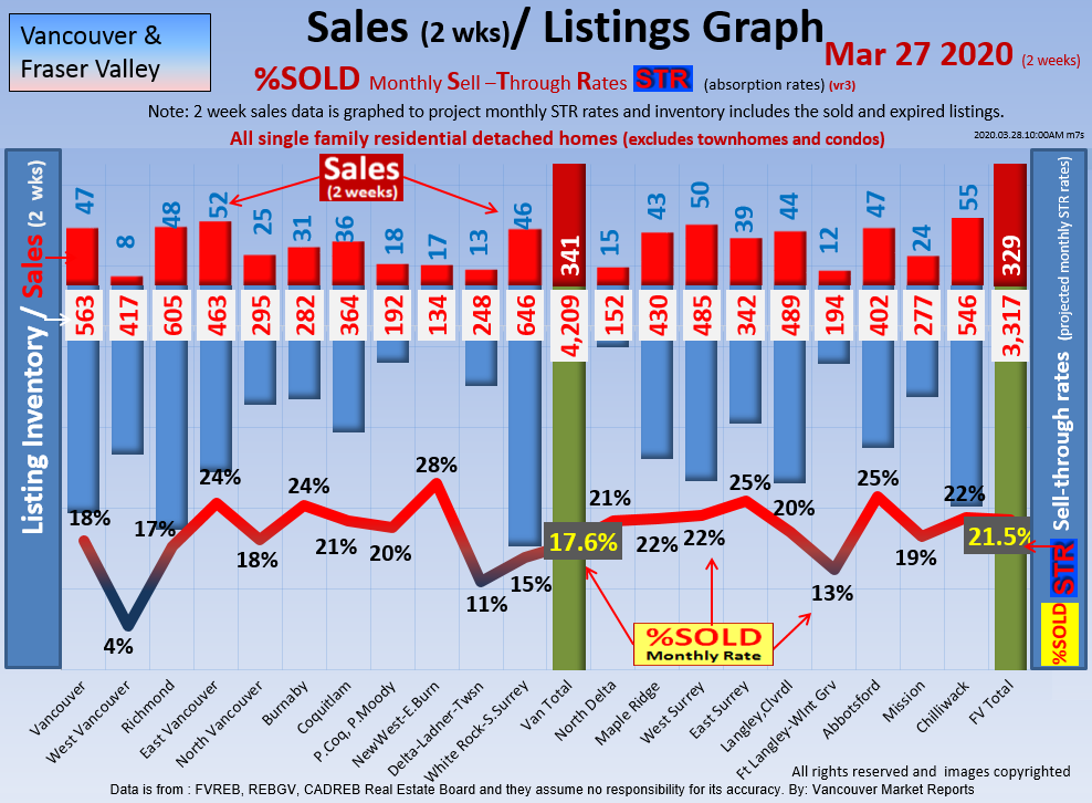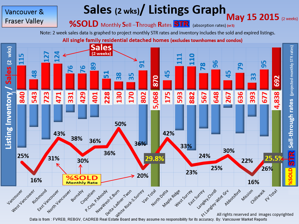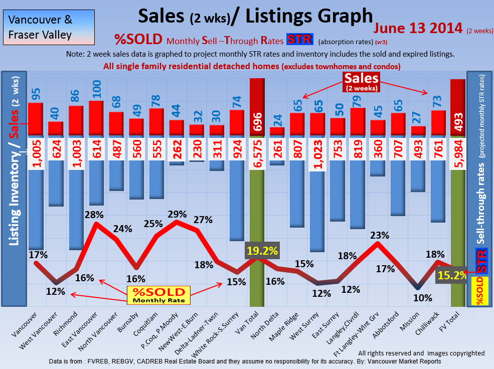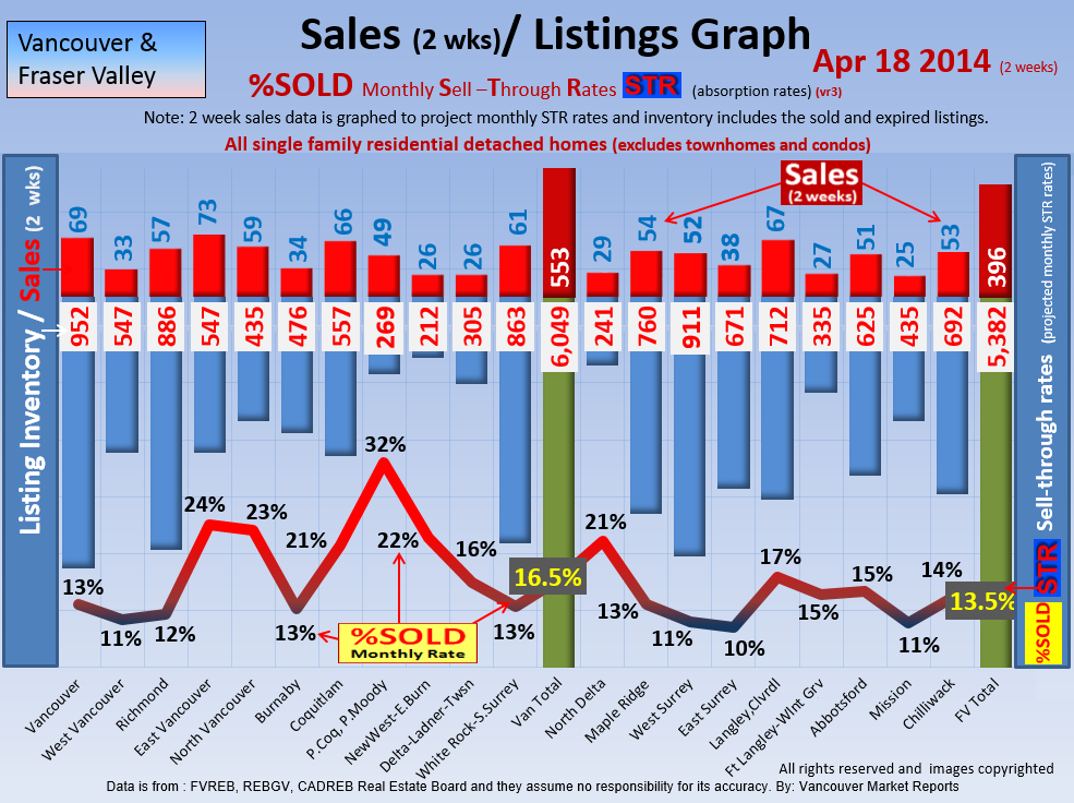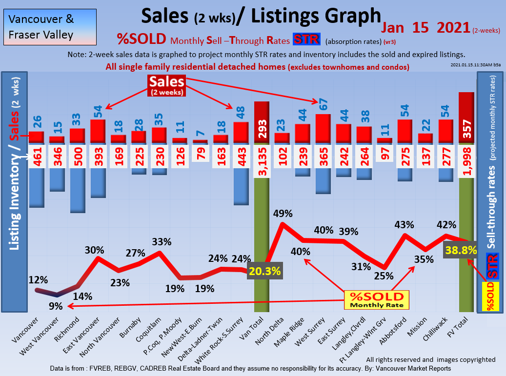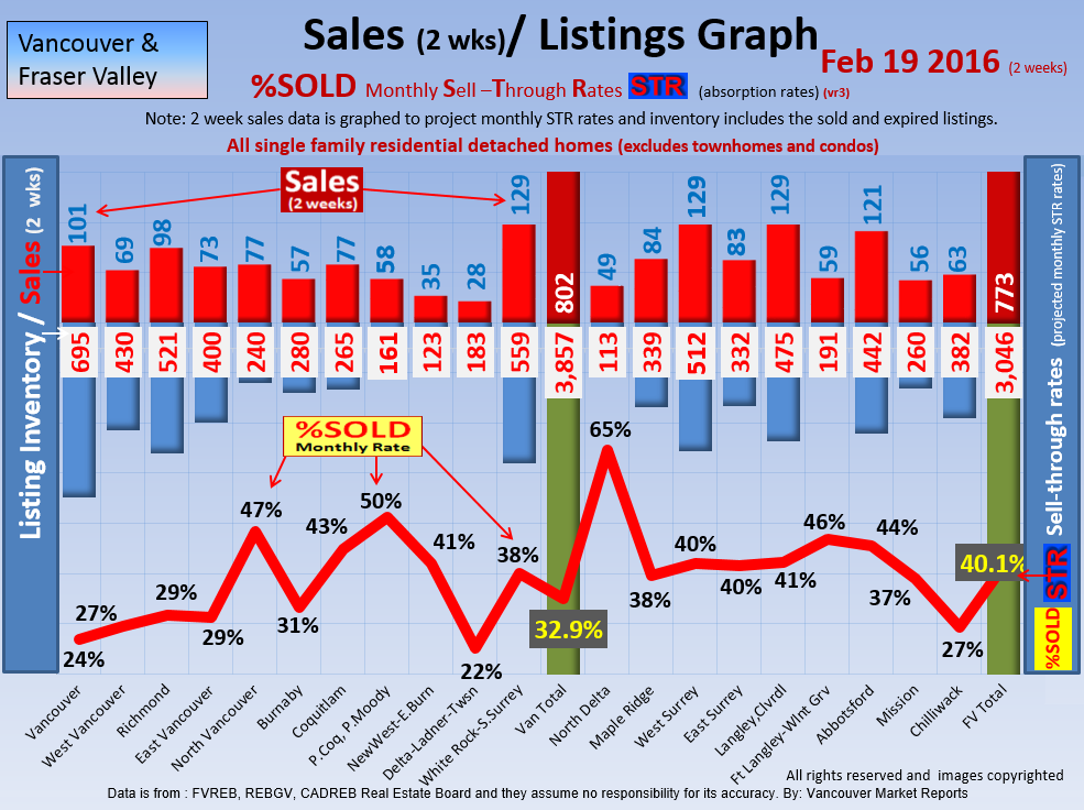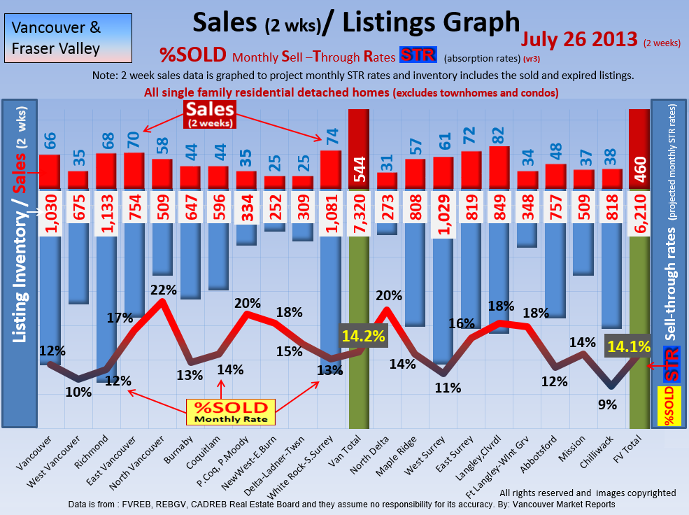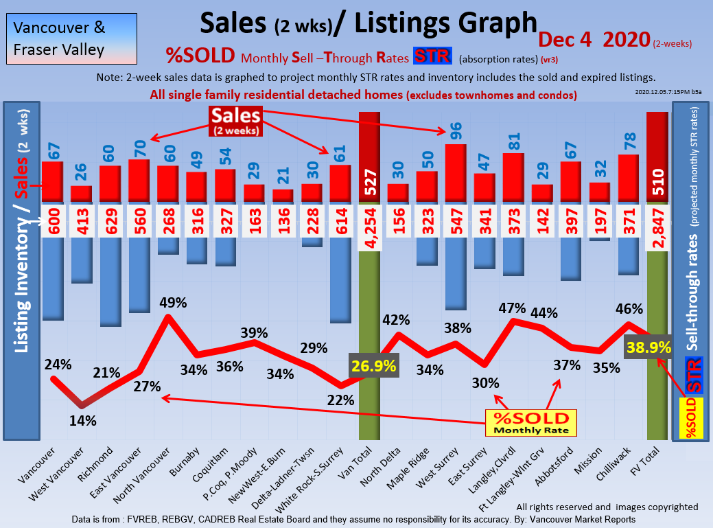#2 The area east of it, namely of the Fraser Valley Real Estate Board: Surrey to Chilliwack. Here we see the first area has a 30% monthly listing sell-through and the area east of it is currently at a 9% monthly sell-through to read more ..click here