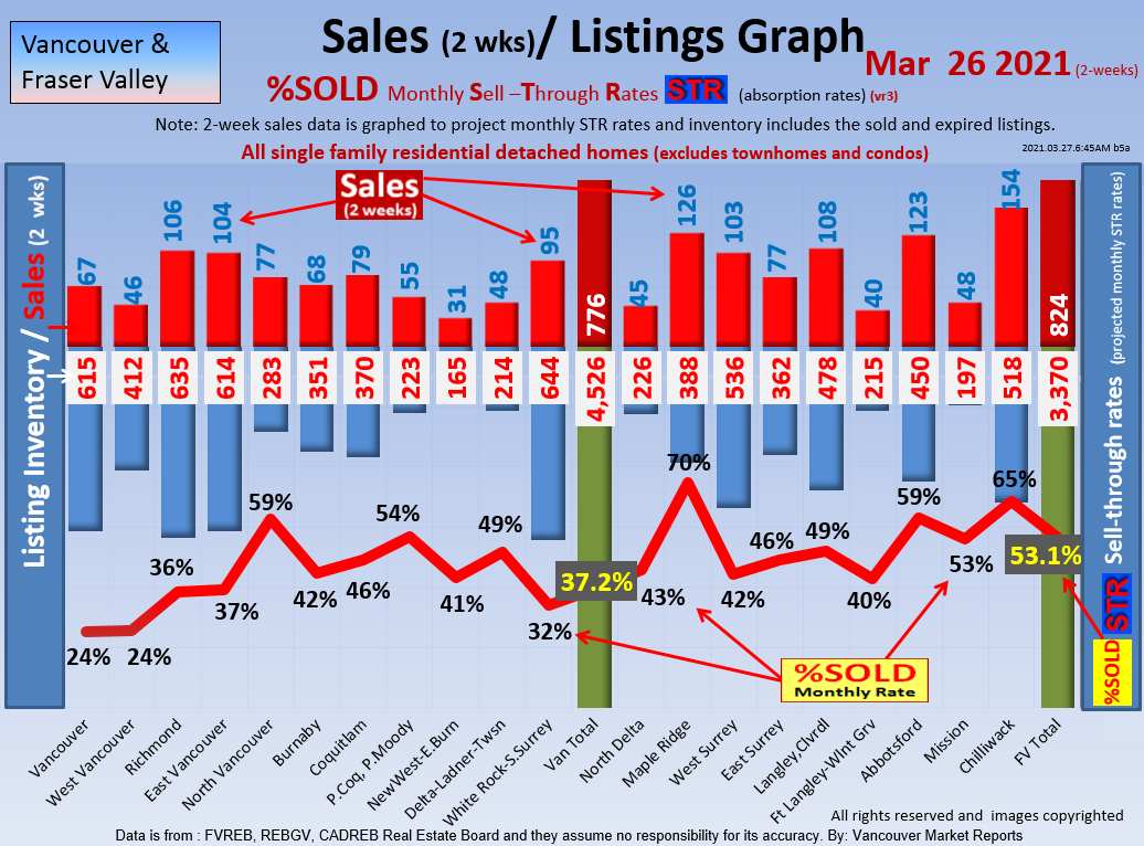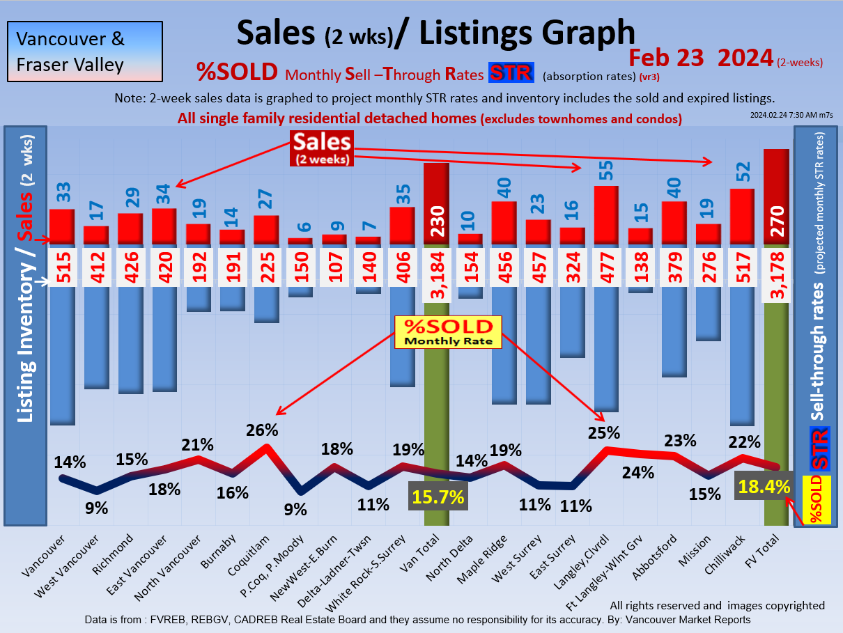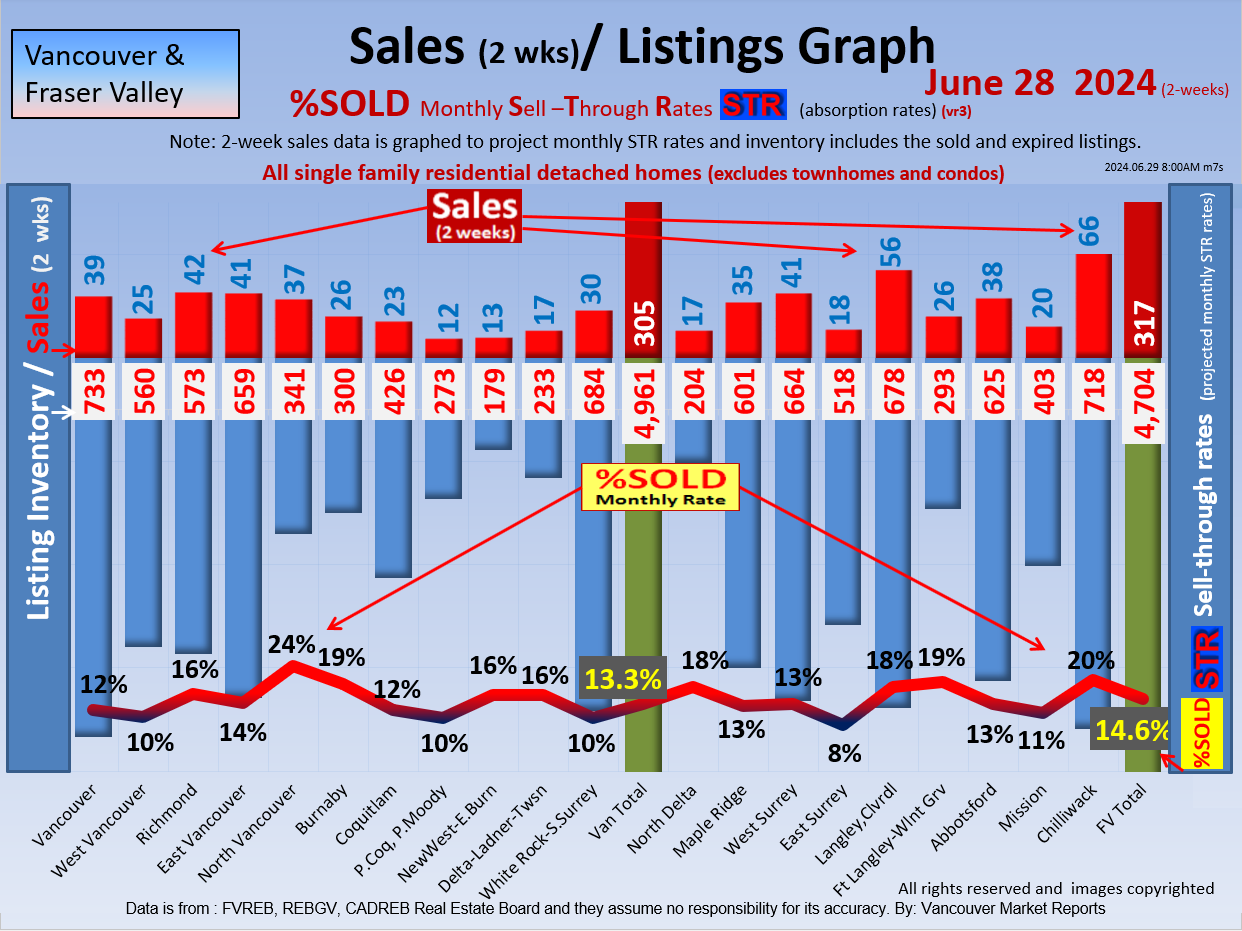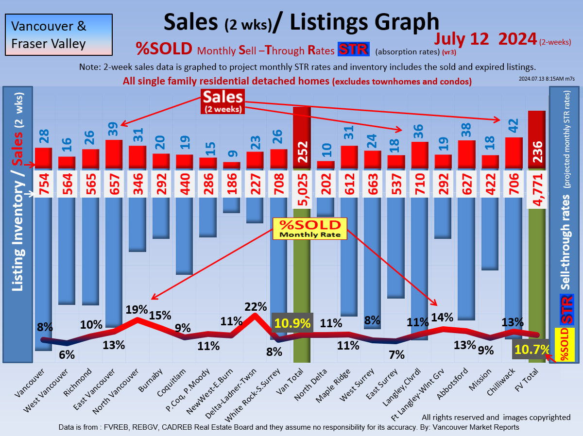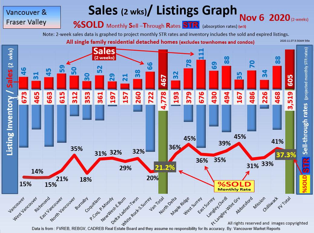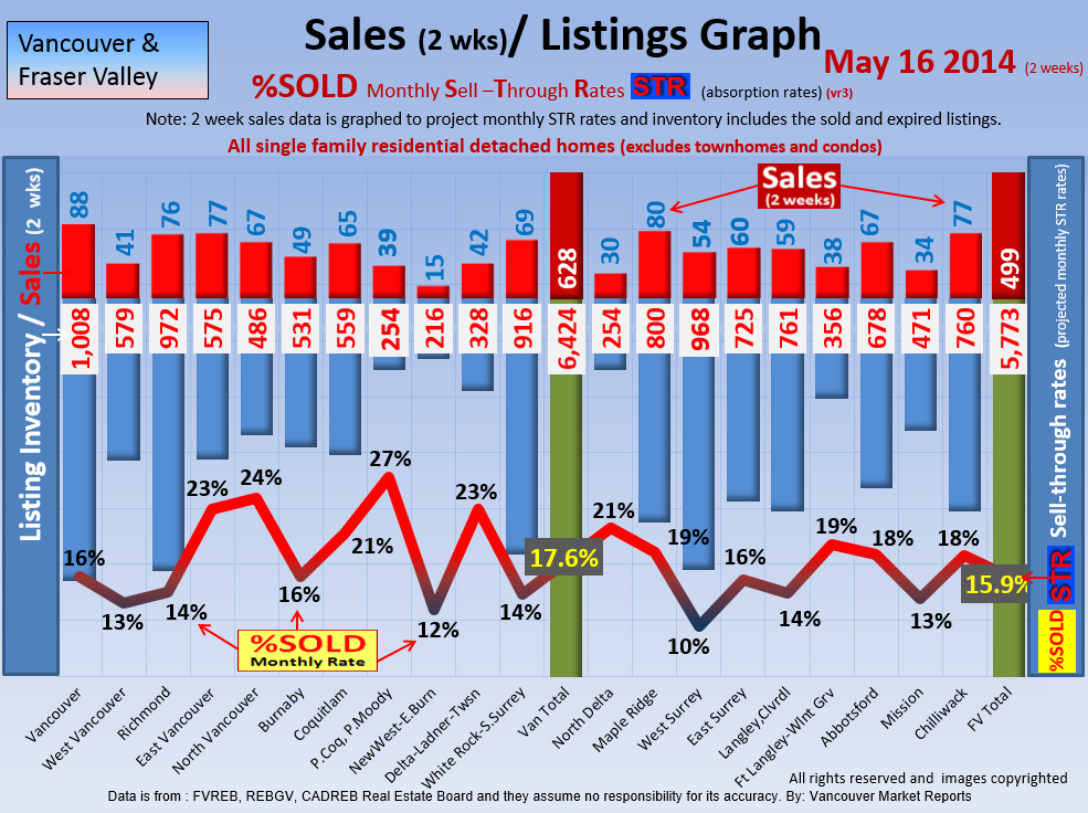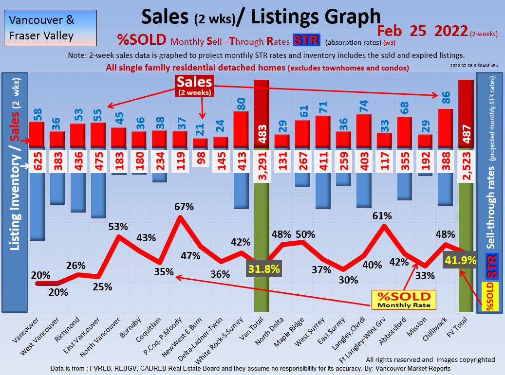 #2 The area east of it, namely of the Fraser Valley Real Estate Board: Surrey to Chilliwack. Here we see the first area has a 30% monthly listing sell-through and the area east of it is currently at a 9% monthly sell-through to read more ..click here