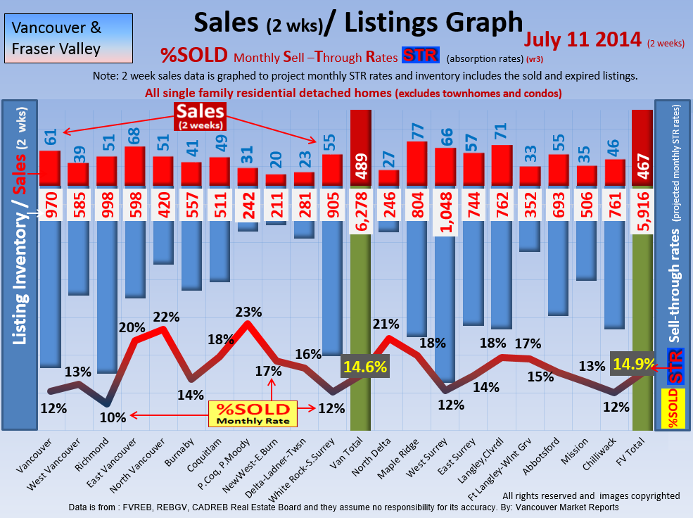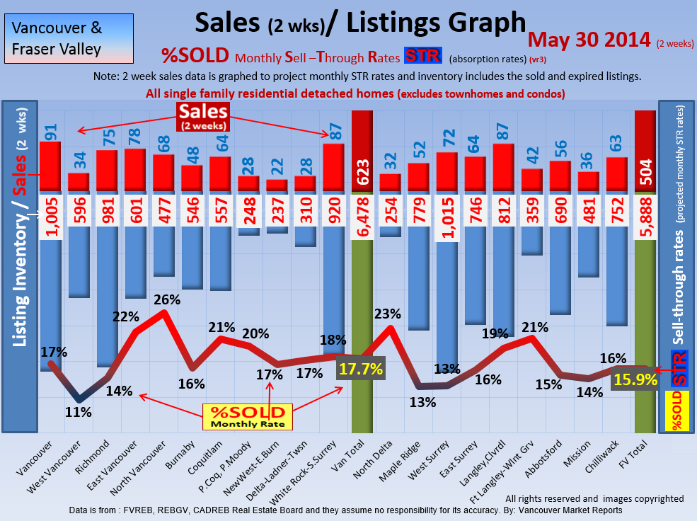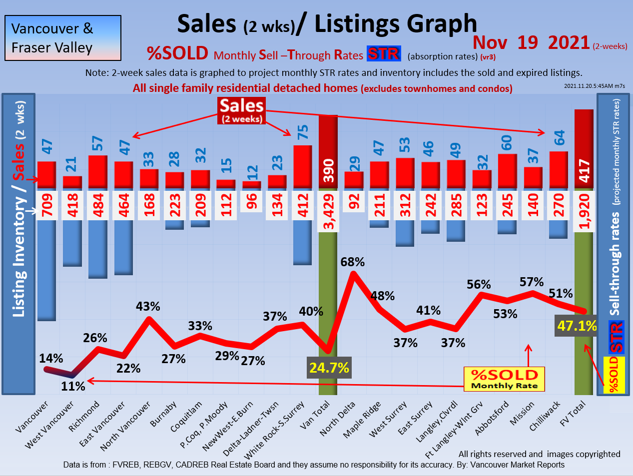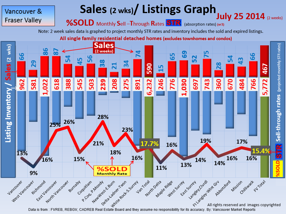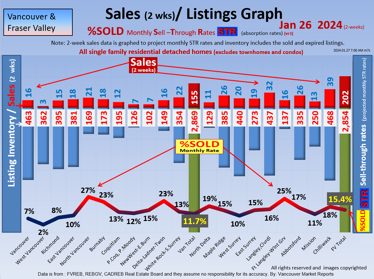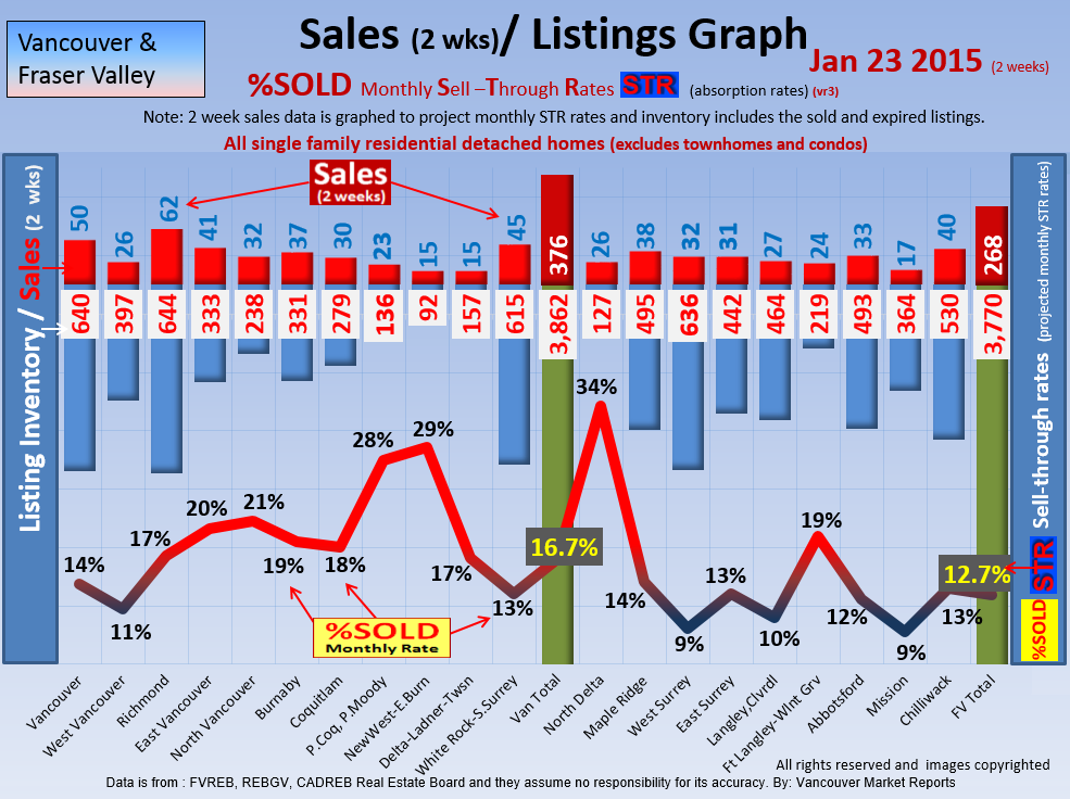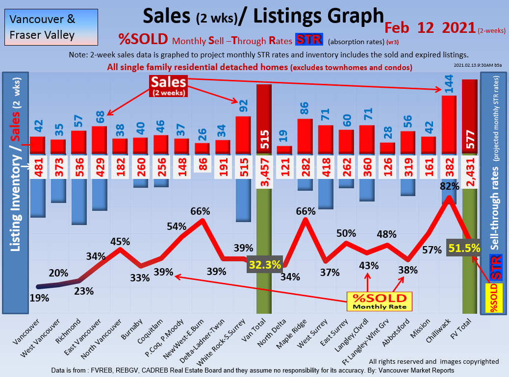 #2 The area east of it, namely of the Fraser Valley Real Estate Board: Surrey to Chilliwack. Here we see the first area has a 30% monthly listing sell-through and the area east of it is currently at a 9% monthly sell-through to read more ..click here
