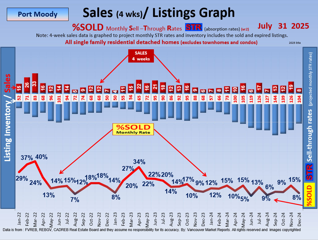 Current:  Port Moody's 11 %SOLD Rate indicates a Stable Market.