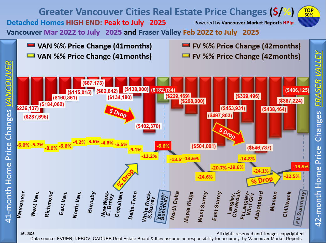 In July, 89% of single-family homes lost value, dropping prices by an average of $17,997. That’s a bigger decline compared to June, when prices fell by $4,025. With many homes still for sale and both buyers and sellers are waiting for clearer trade news, the Fraser Valley remains a buyer’s market.